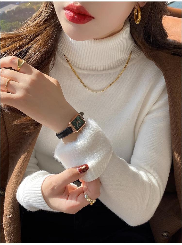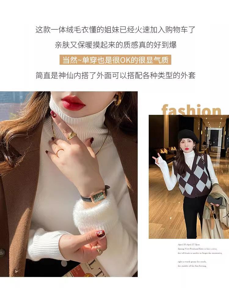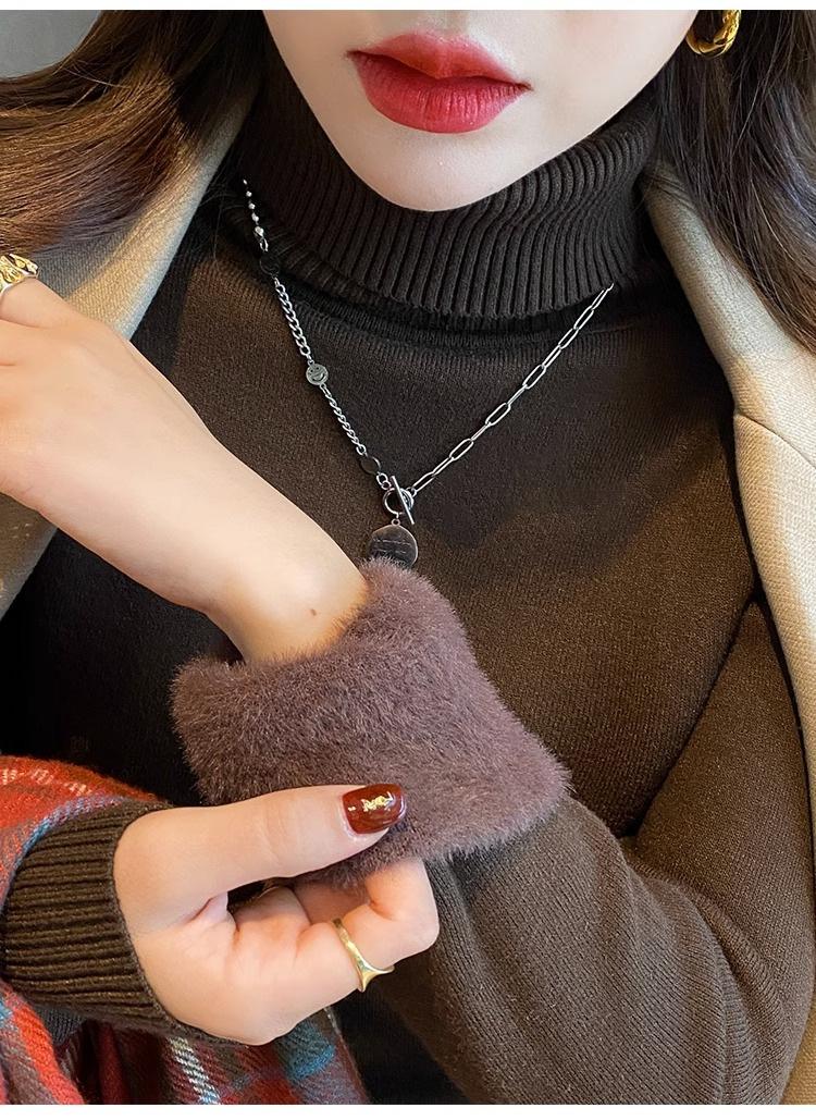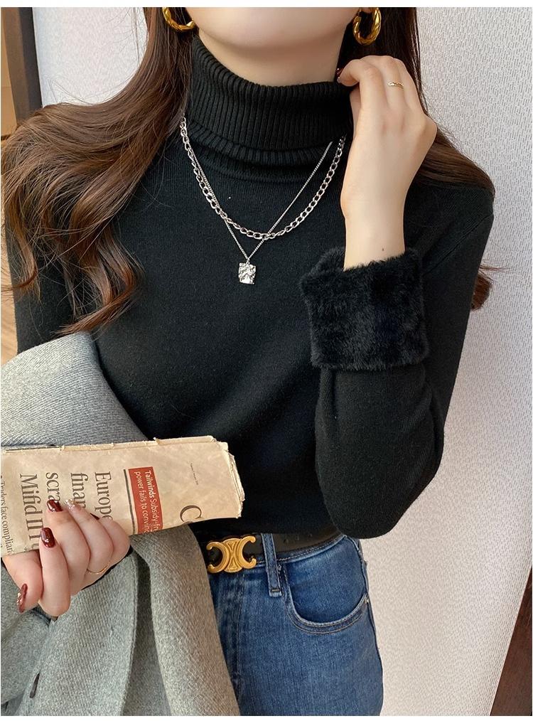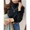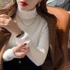 2024 primavera, otoño e invierno nuevo suéter de terciopelo de una pieza acolchado con forro polar para mujer de cuello alto con suéter básico estilo extranjero al por mayor