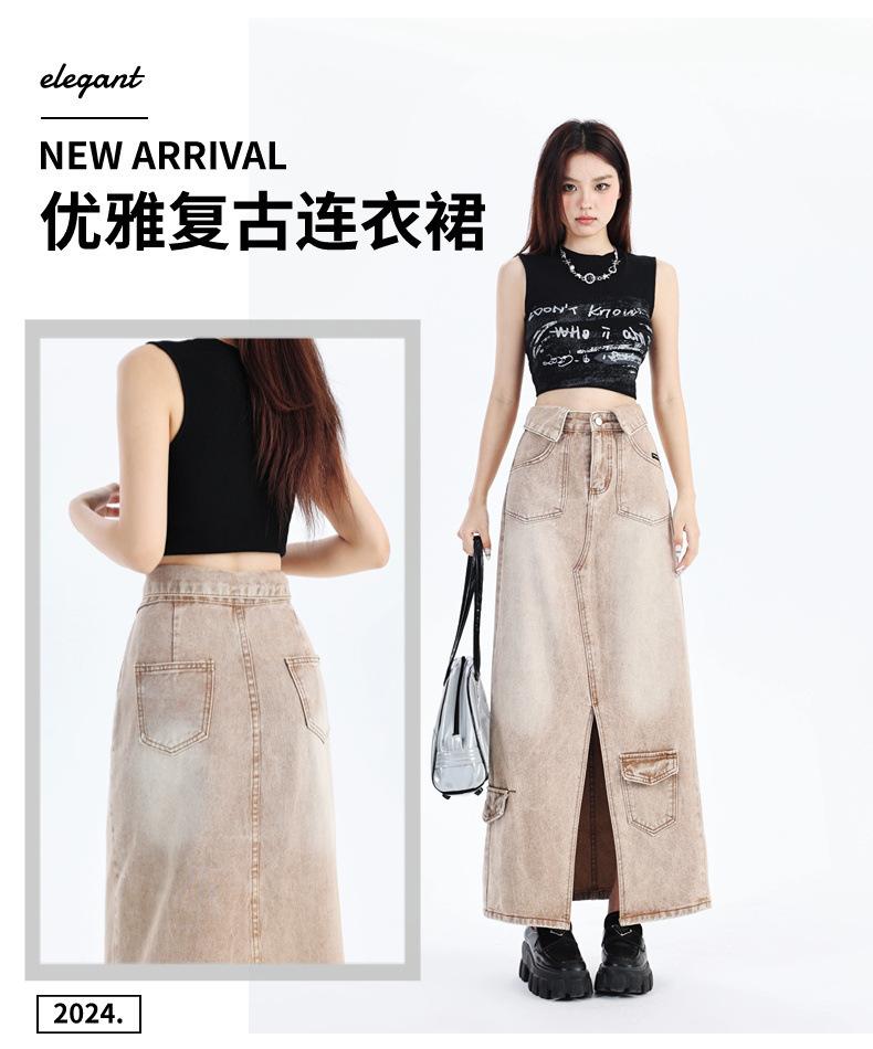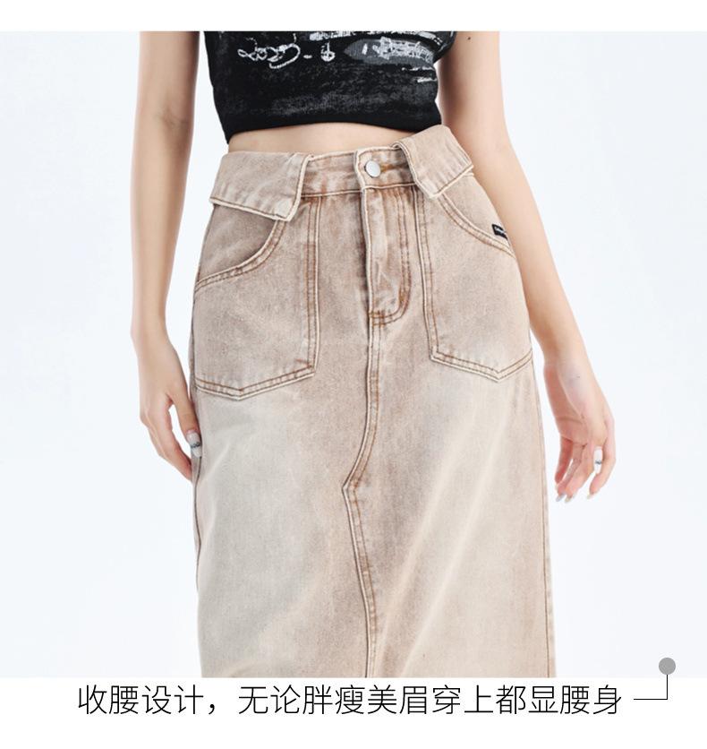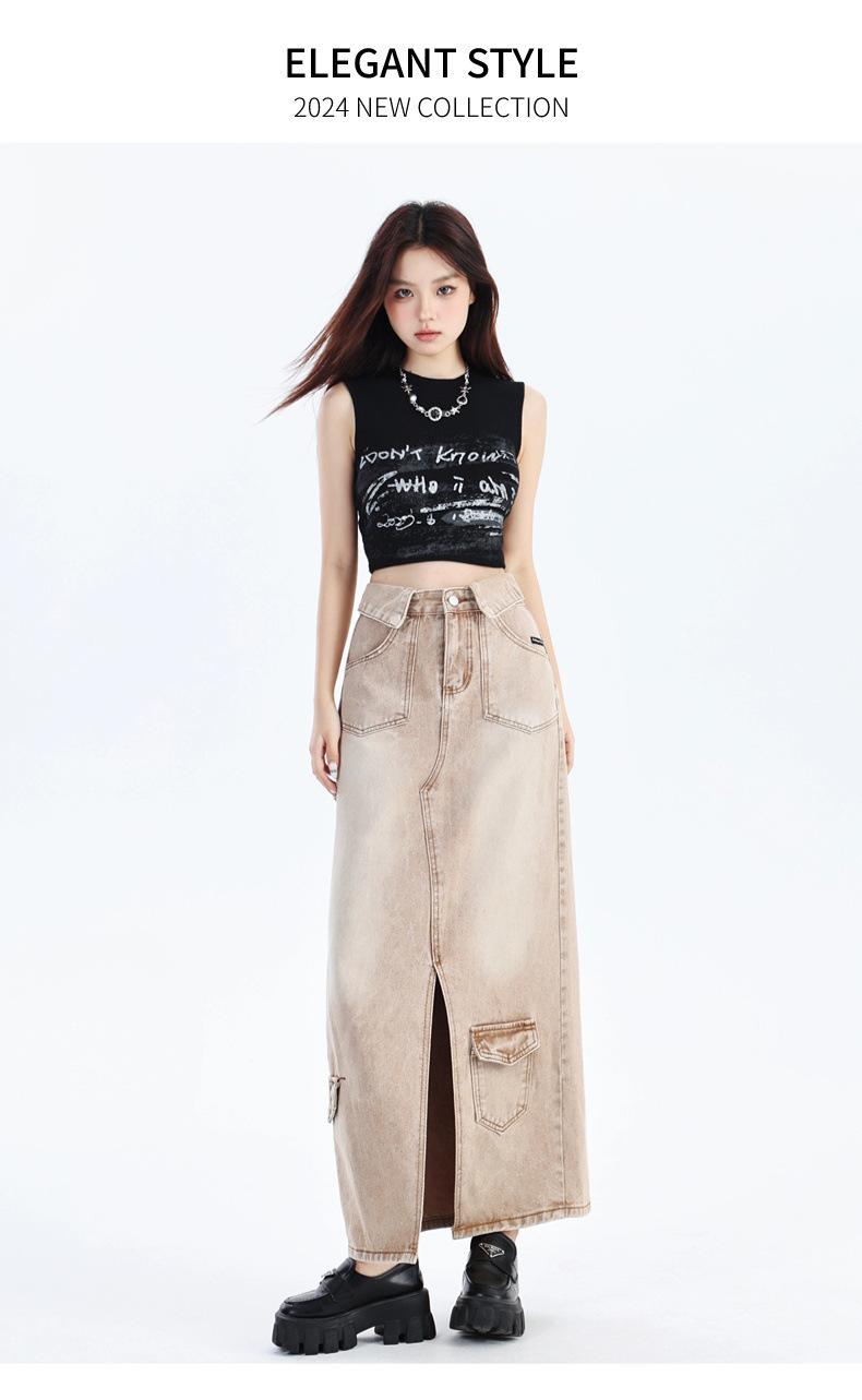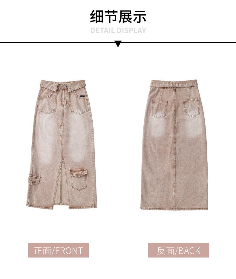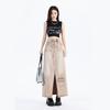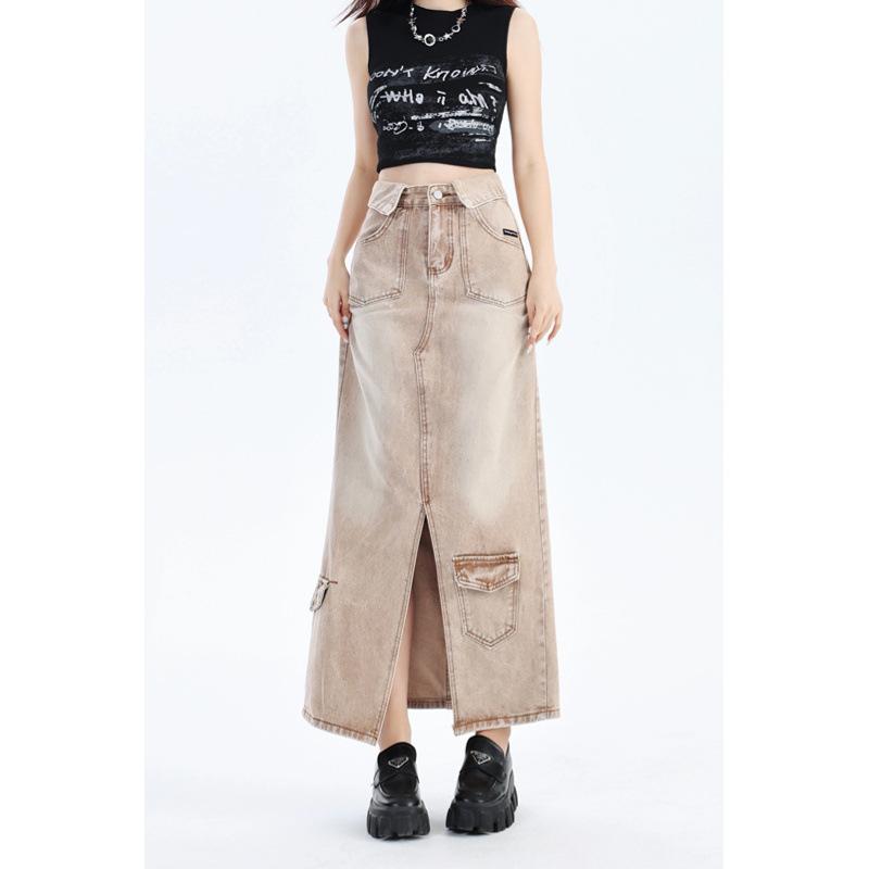 Falda caqui casual de trabajo con abertura para mujer, nuevo diseño versátil, falda de cadera para primavera y otoño 2024