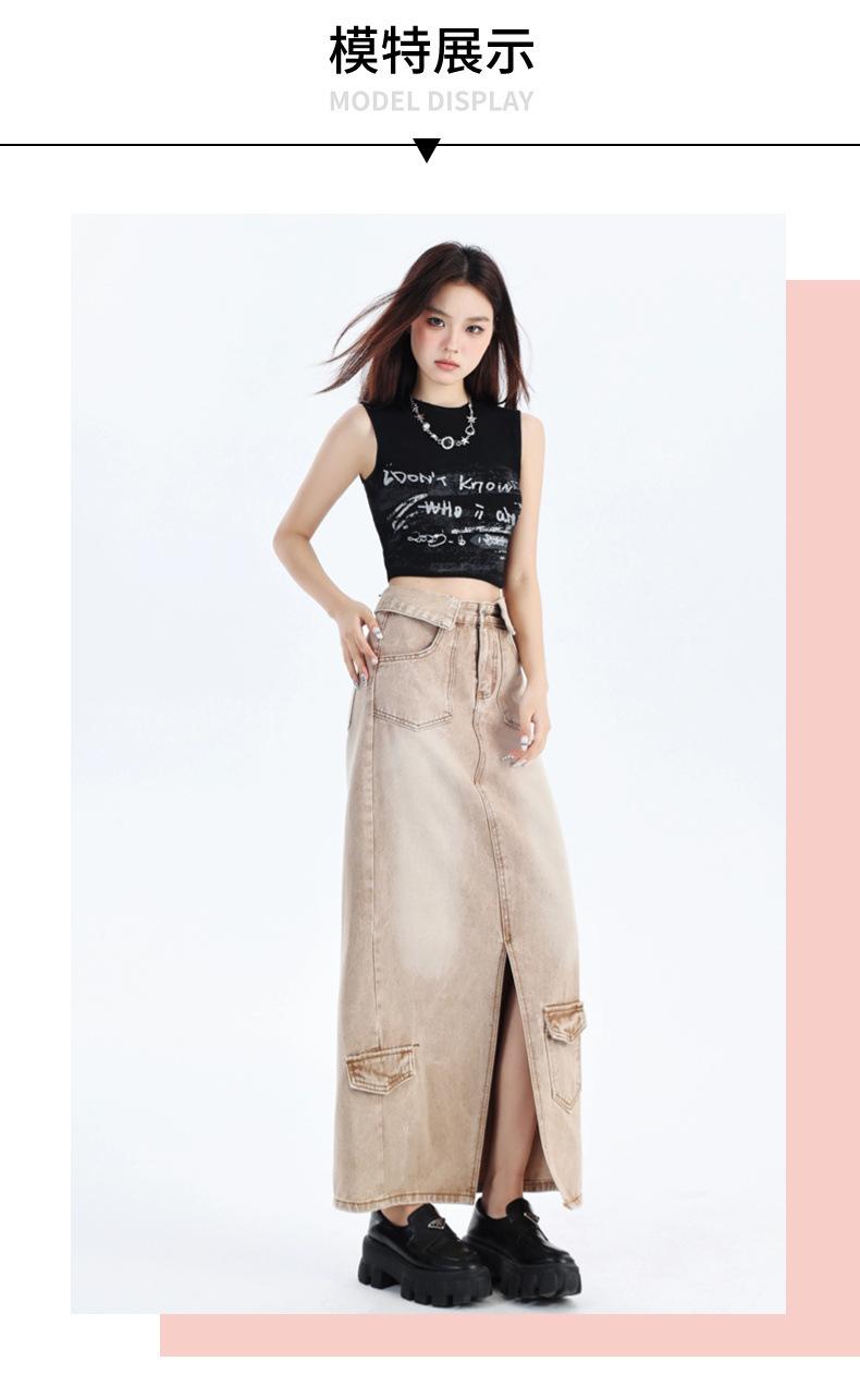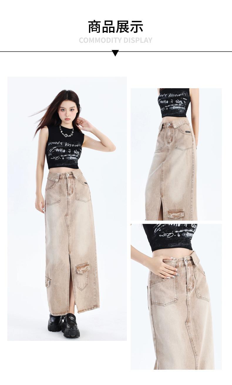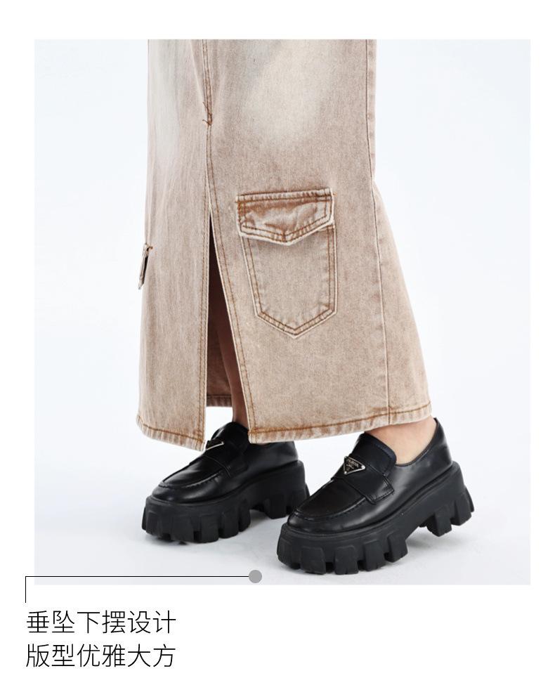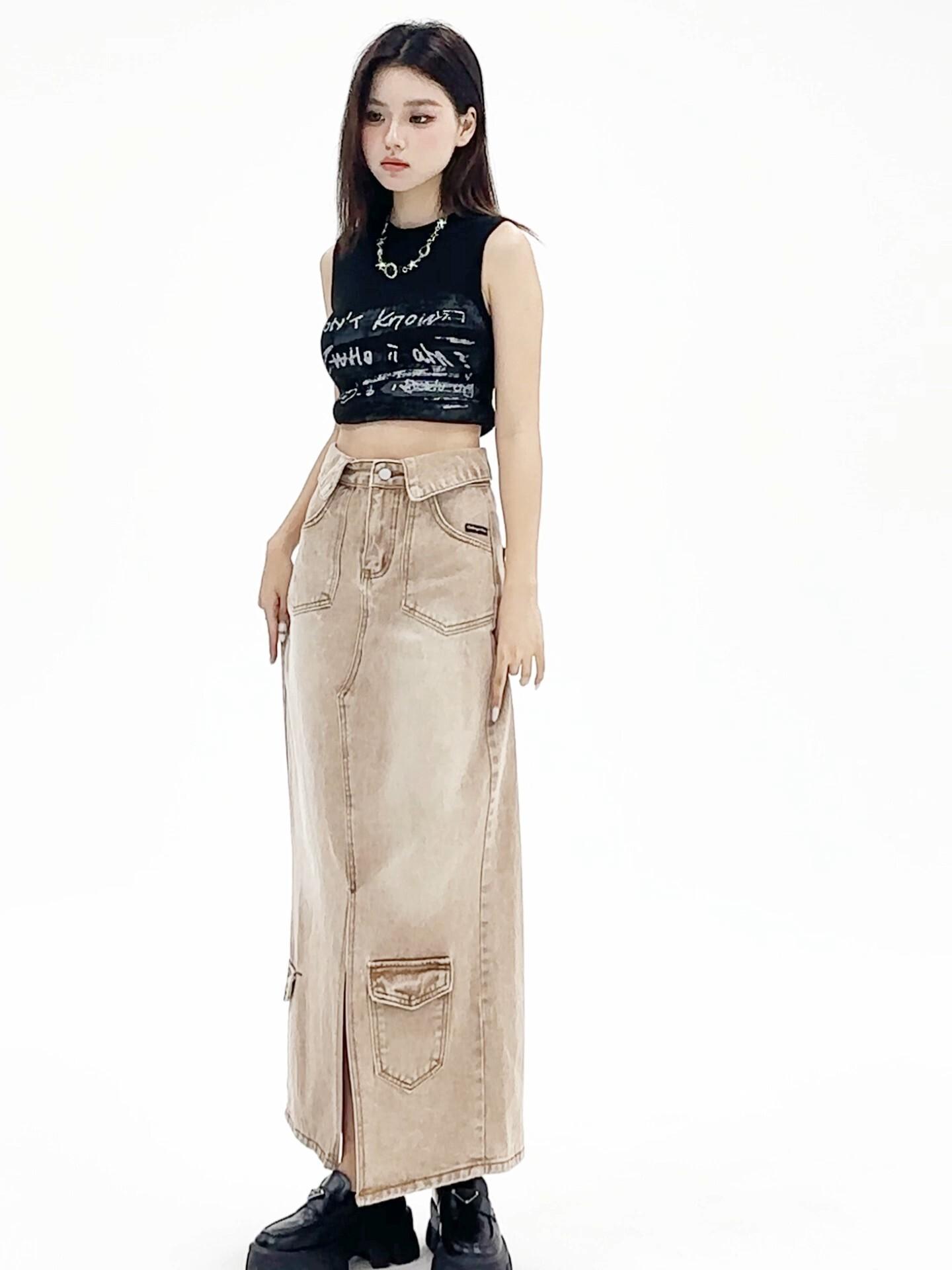 Falda caqui casual de trabajo con abertura para mujer, nuevo diseño versátil, falda de cadera para primavera y otoño 2024