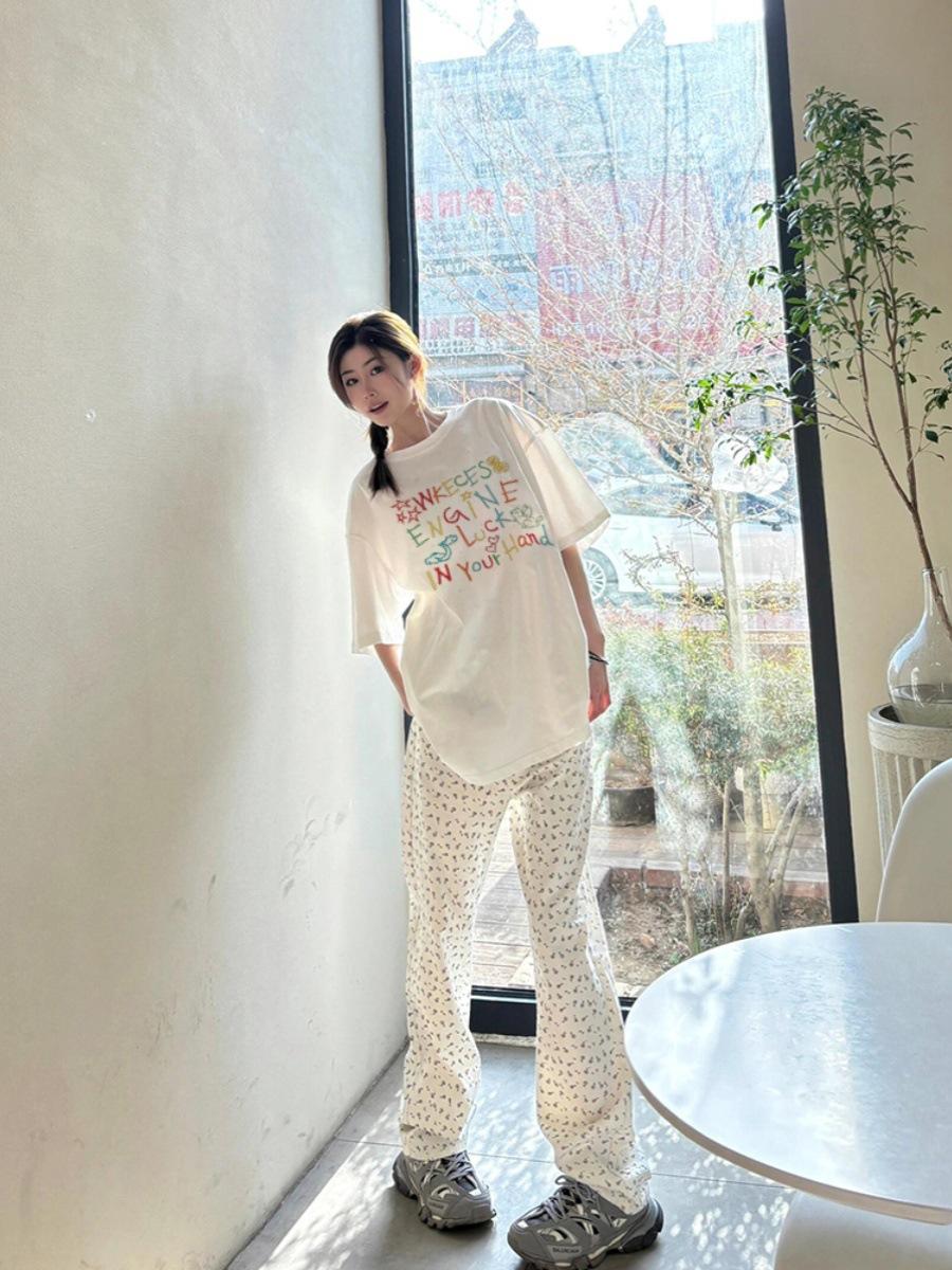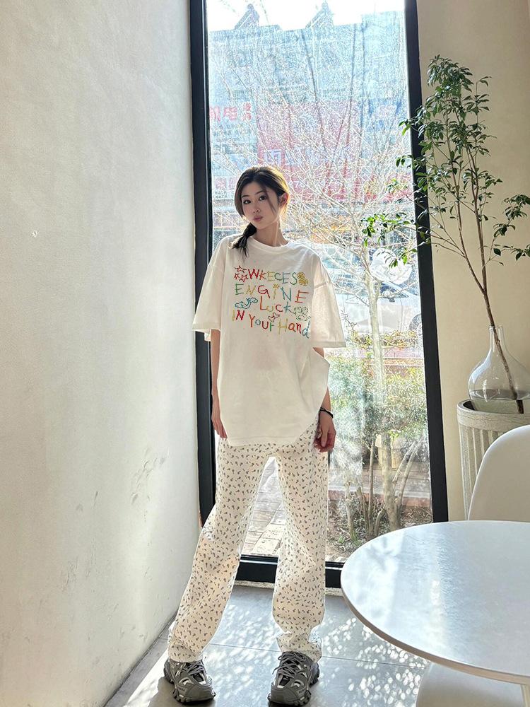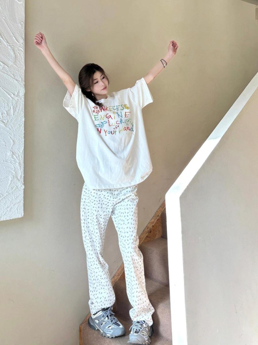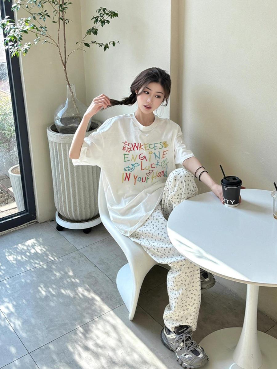 Camiseta de algodón de manga corta con estampado de letras gruesas para mujer, verano 2025, nuevo diseño de nicho, top holgado de media manga