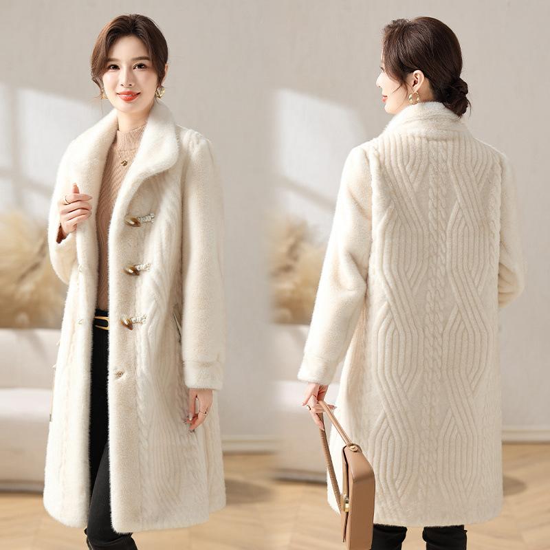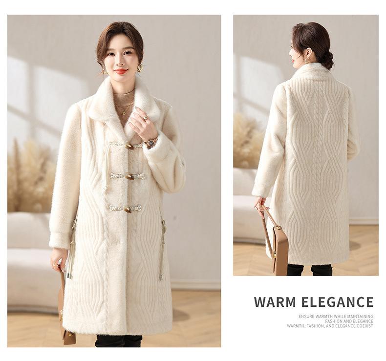 Abrigo de mamá Shanli Dadi de otoño e invierno, nuevo abrigo de cachemira de visón de imitación, piel de un solo estilo nacional, top de longitud media