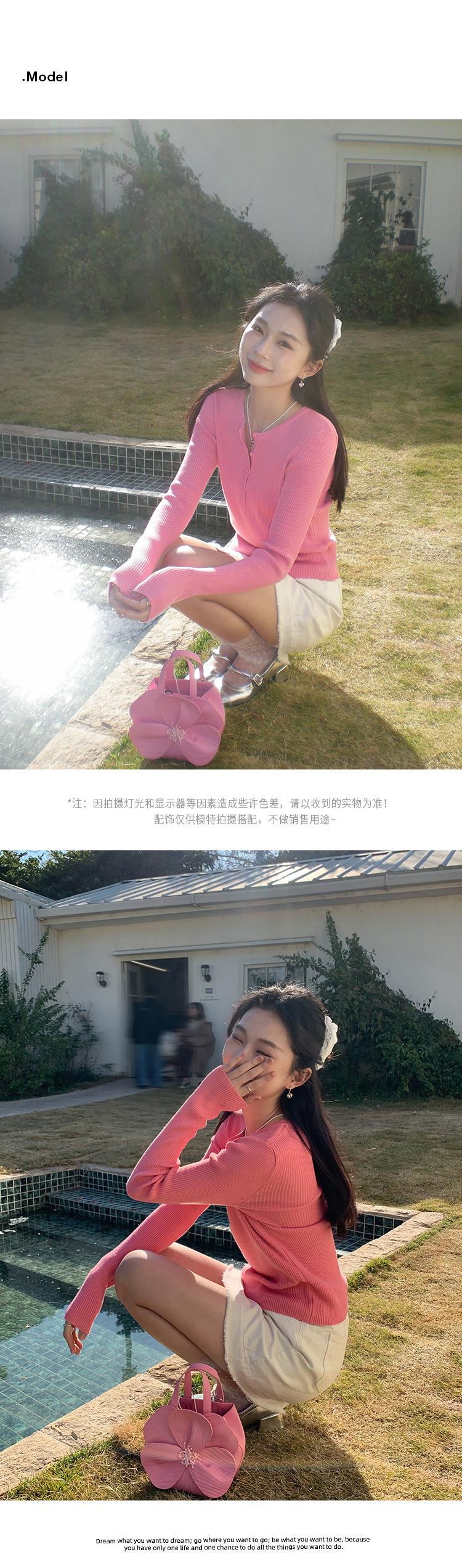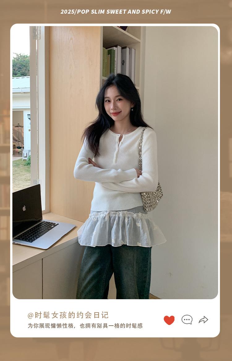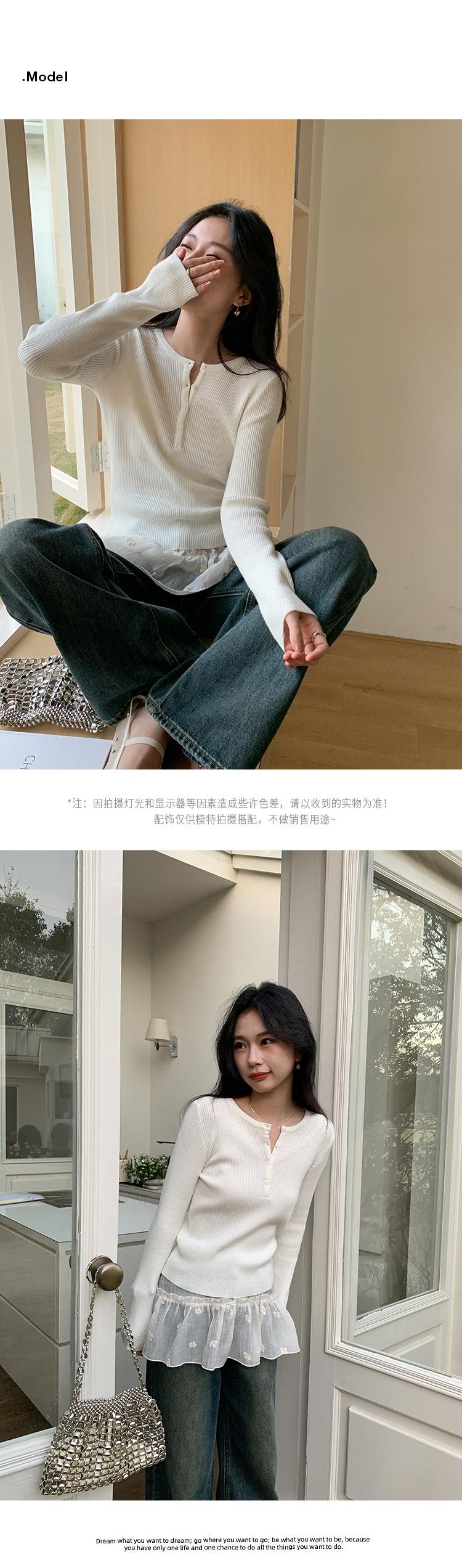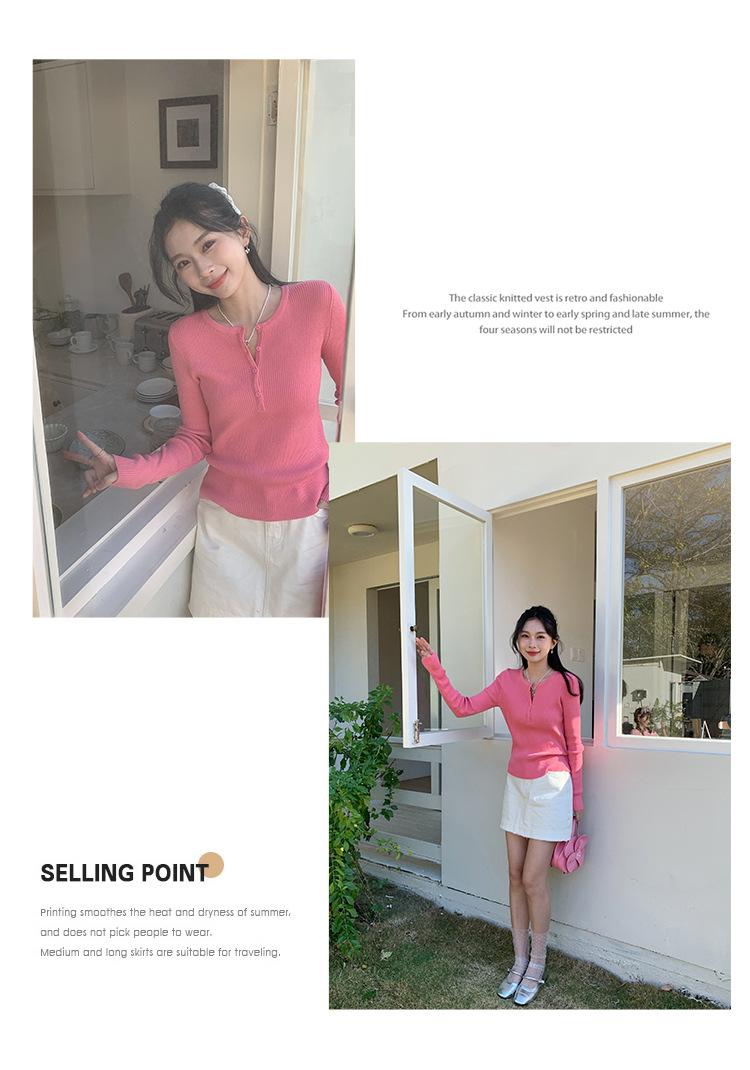 Camisa de punto de manga larga de color liso, suave y combinable con todo, estilo coreano, para mujer, de primavera, ajustada, adelgazante, con cuello medio abierto y pequeña parte superior interior.