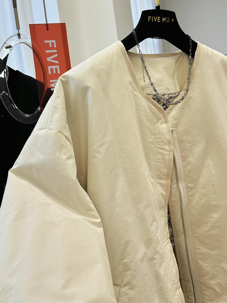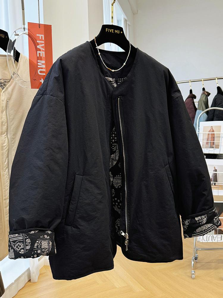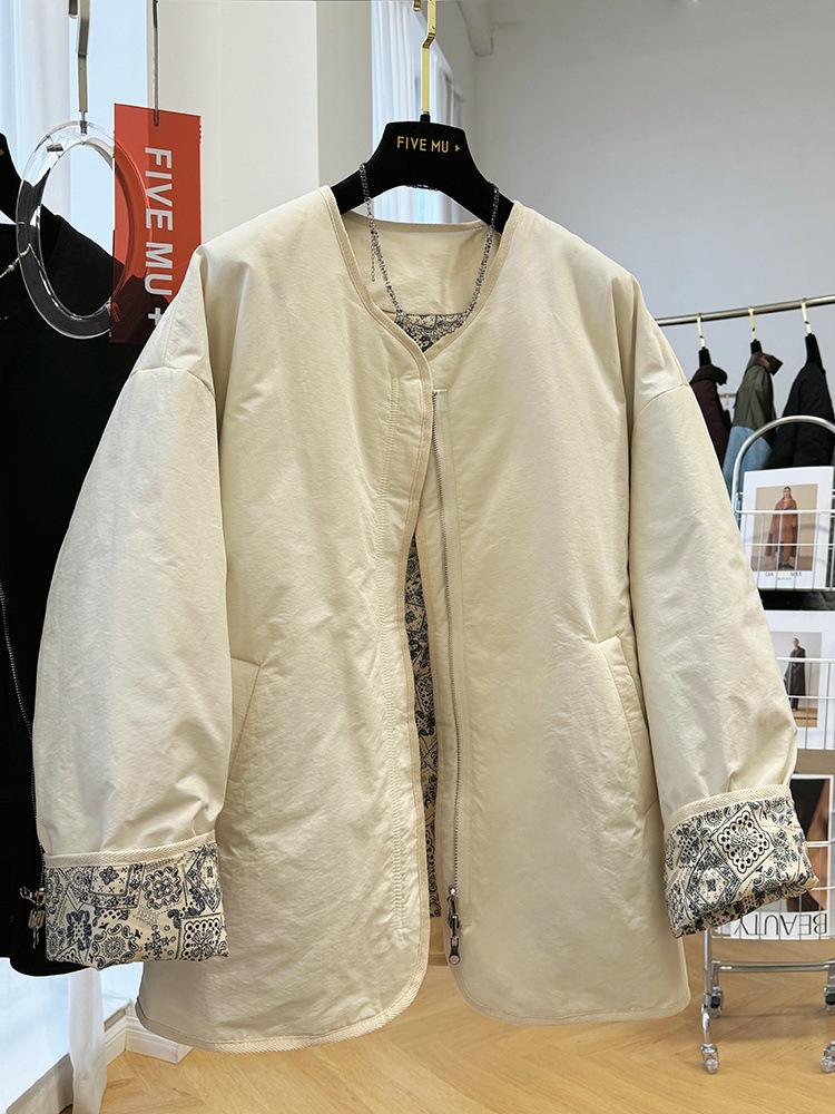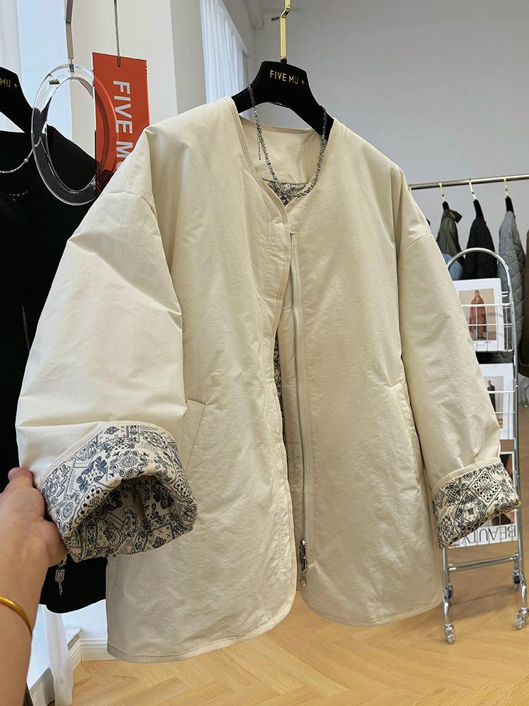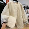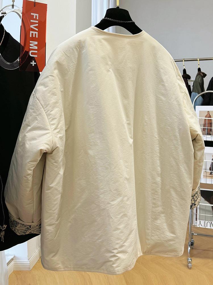 Abrigo acolchado de algodón con cuello redondo, único y atractivo, estilo retro y chic de Shanli Dadi para mujer, para otoño e invierno, informal y relajado.