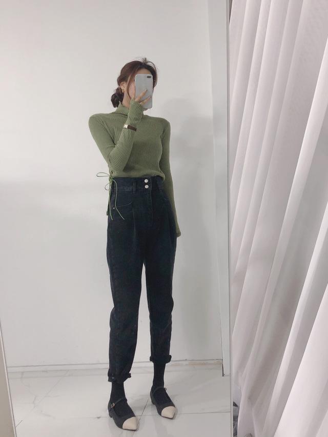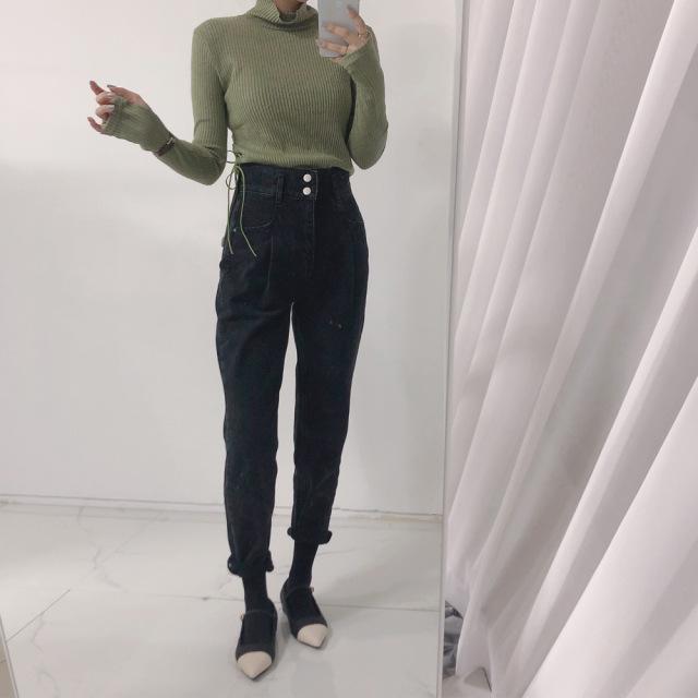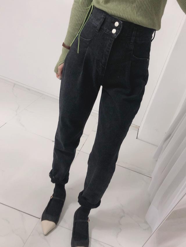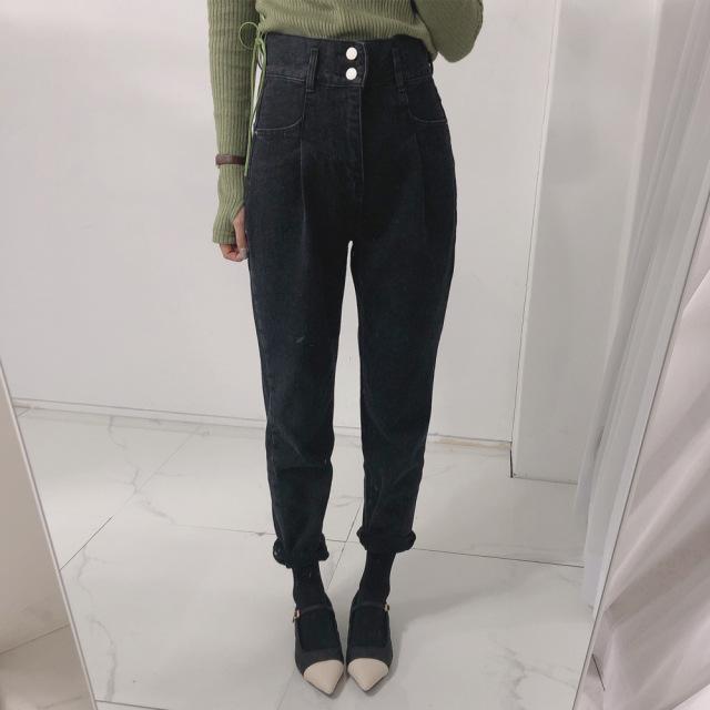 Vaqueros ajustados negros informales de dos botones de alta calidad para mujer Dongdaemun de Corea del Sur.