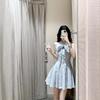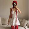 Falda corta a cuadros estilo francés para niña, vestido sexy sin espalda, estilo festivo, novedad de verano de 2025