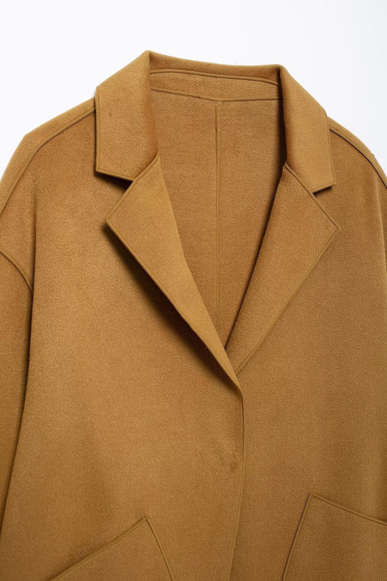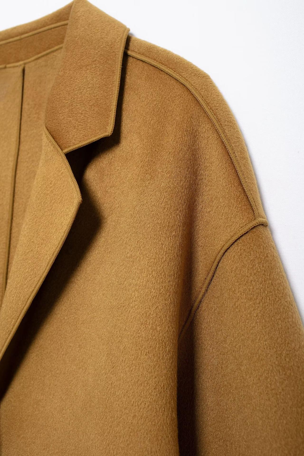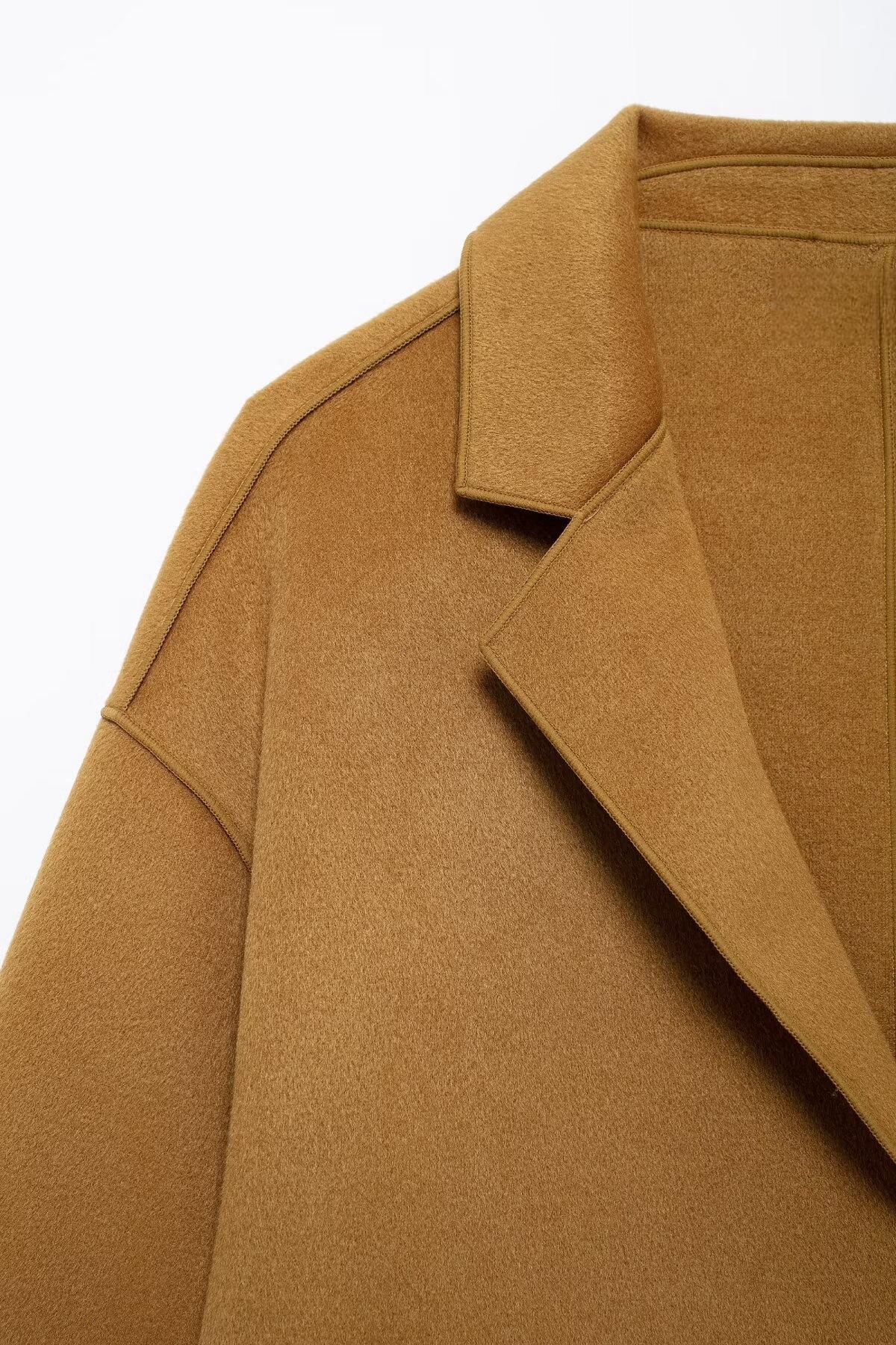 Chaqueta de Lana de Doble Cara para Mujer Europea y Americana Transfronteriza Primavera 2025 Holgada con Solapas y Bolsillo Grande Color Sólido Largo Medio