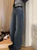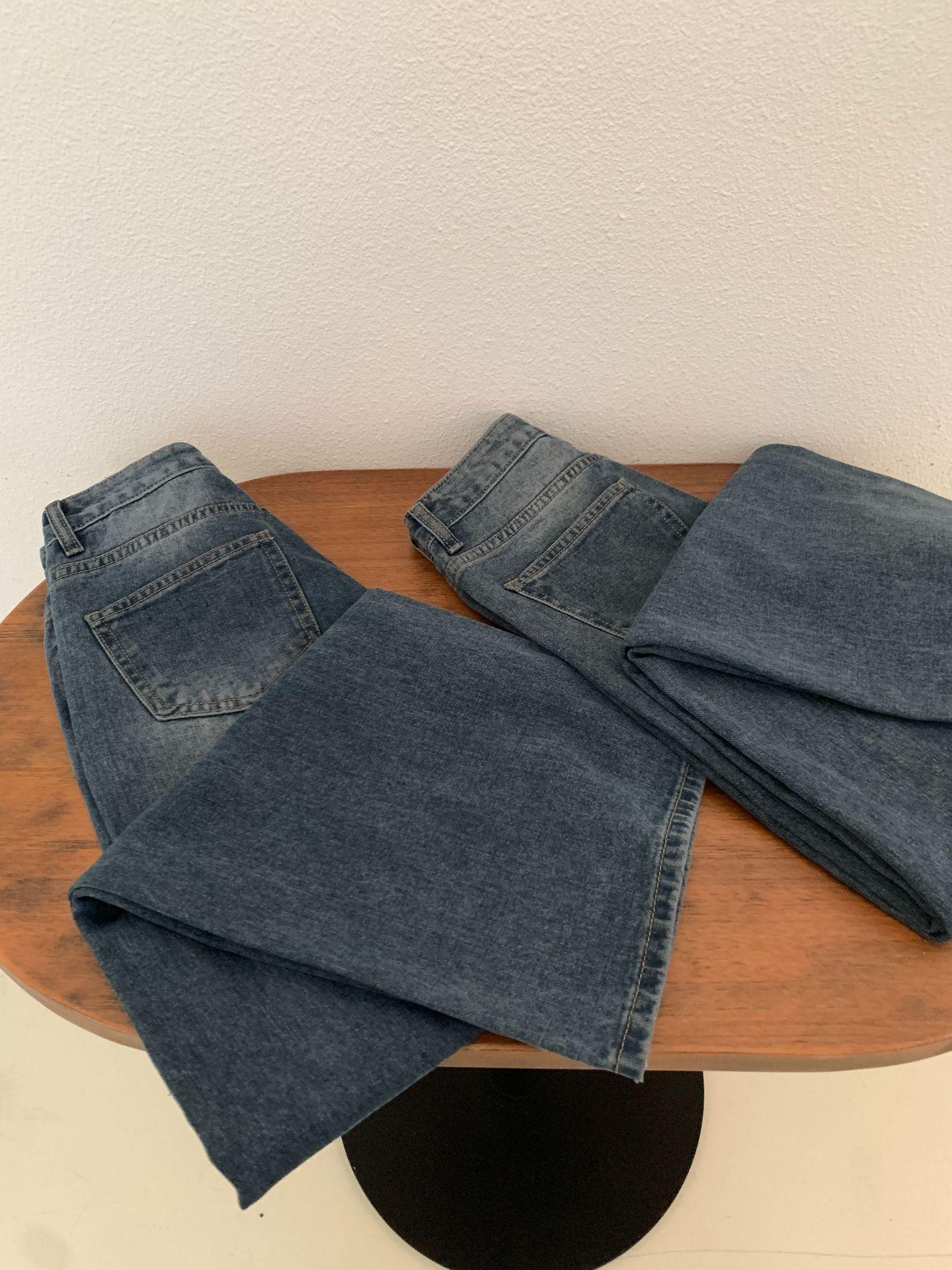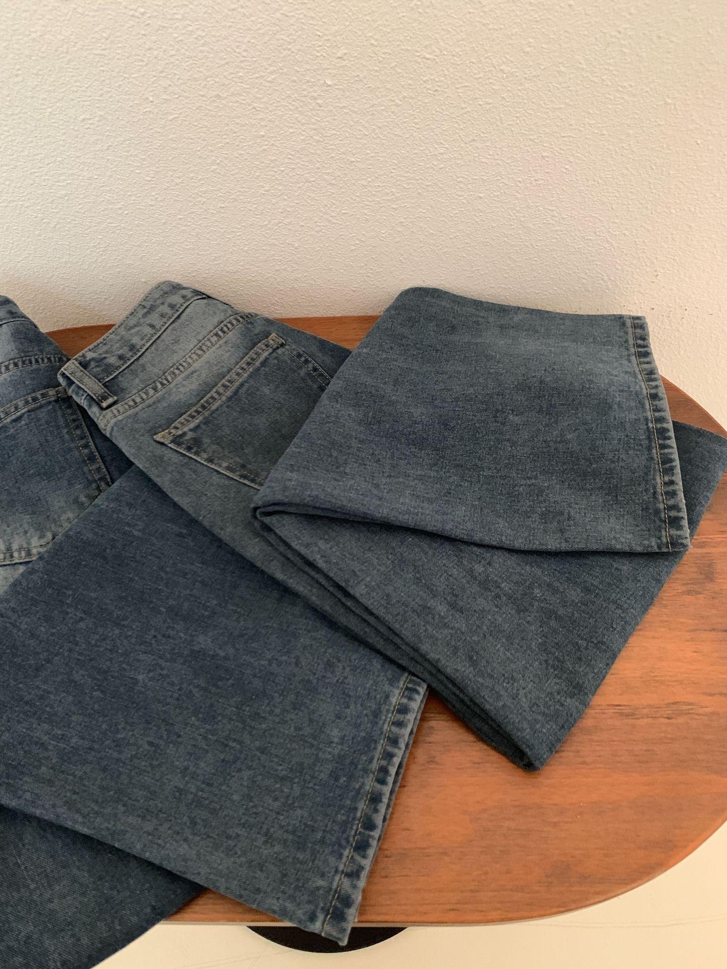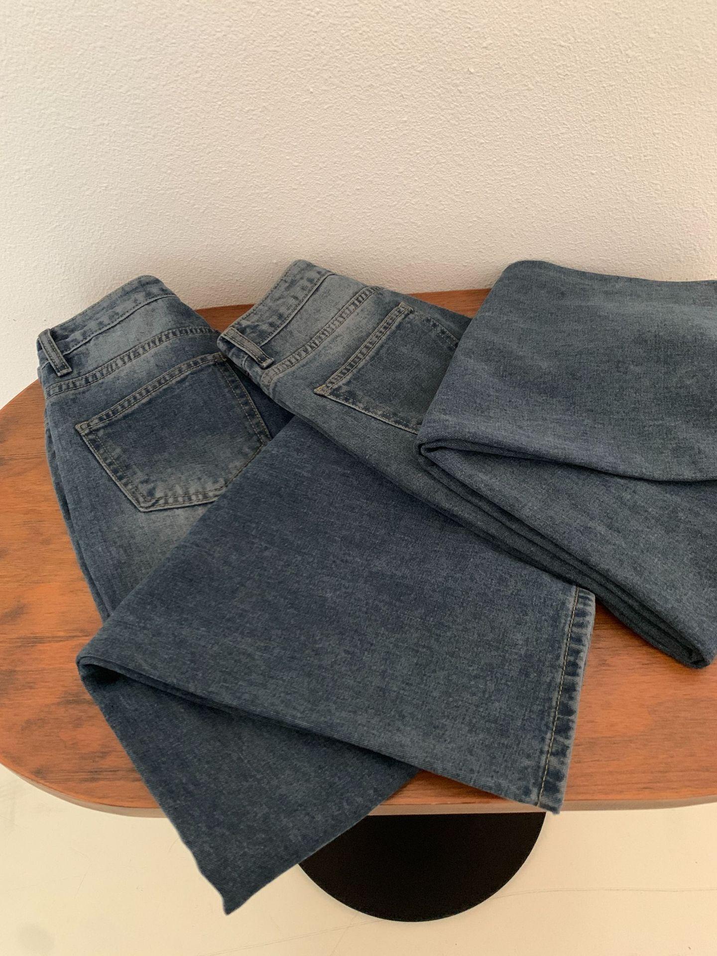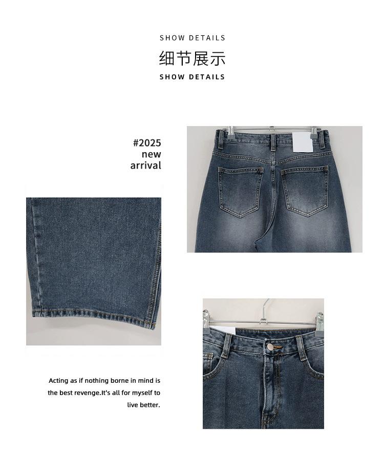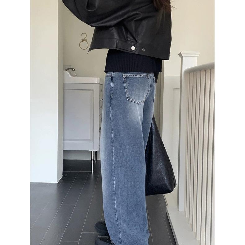 Spot 2025 Otoño Nuevo Coreano Dongdaemun Elegante Retro Slim Casual Cintura Alta Rectos Pantalones de Mezclilla para Mujer