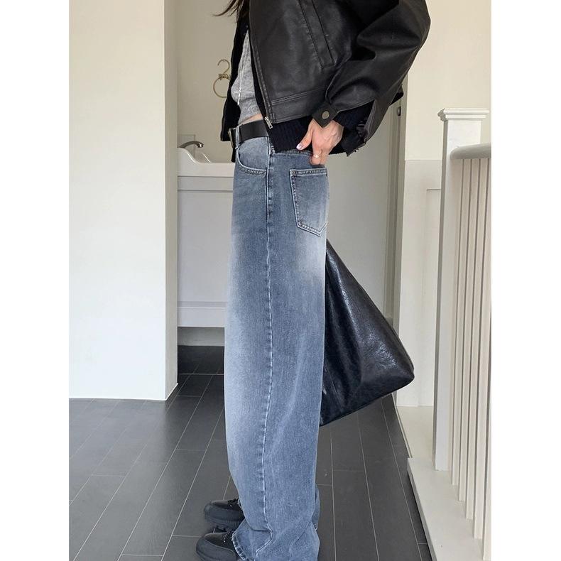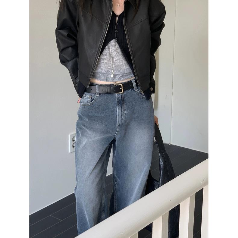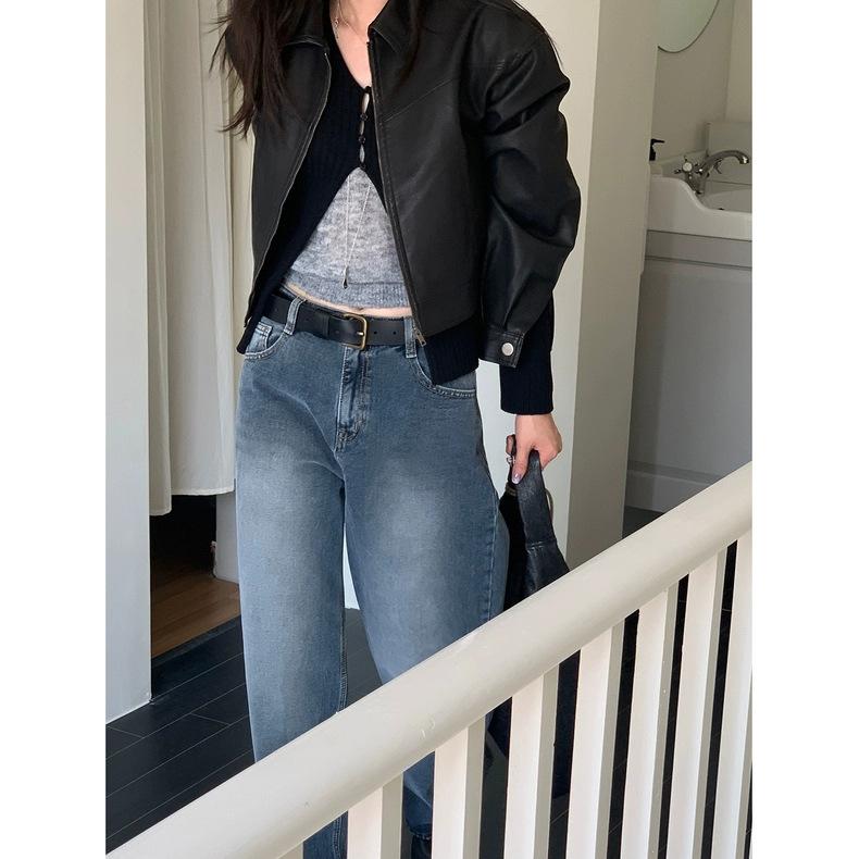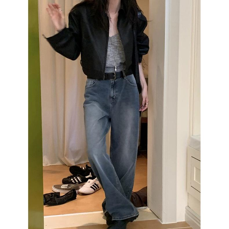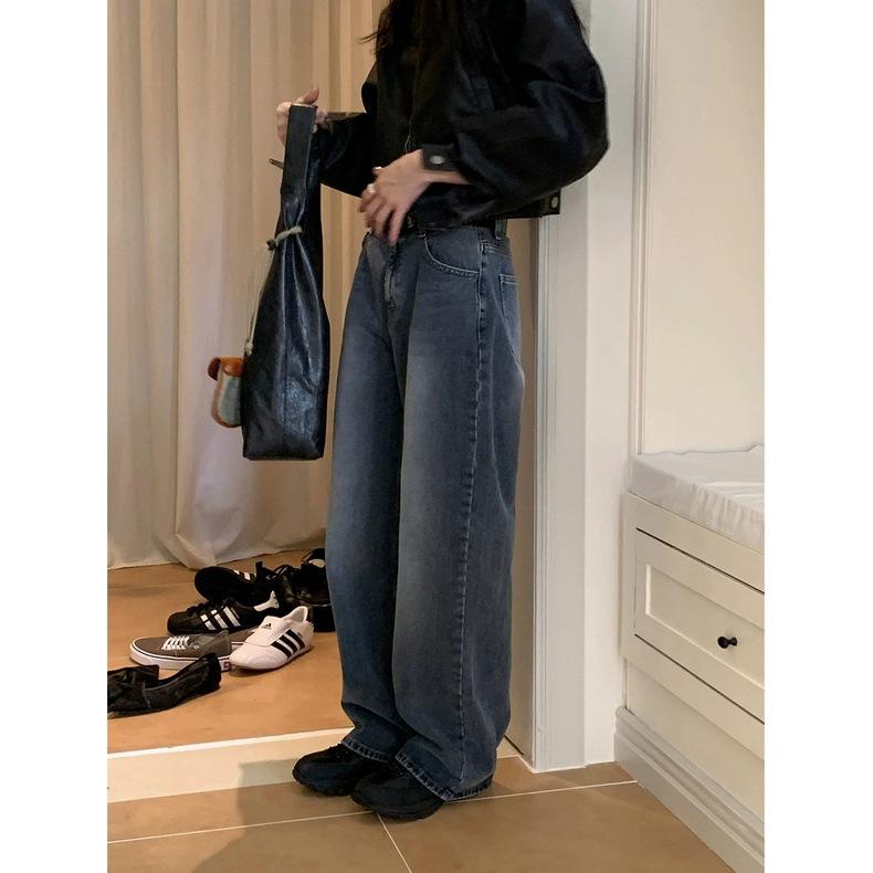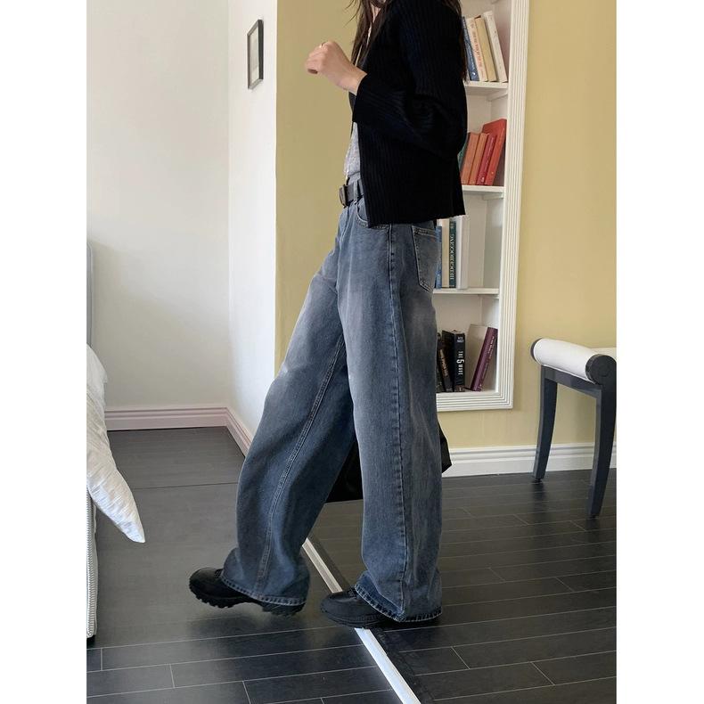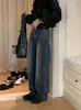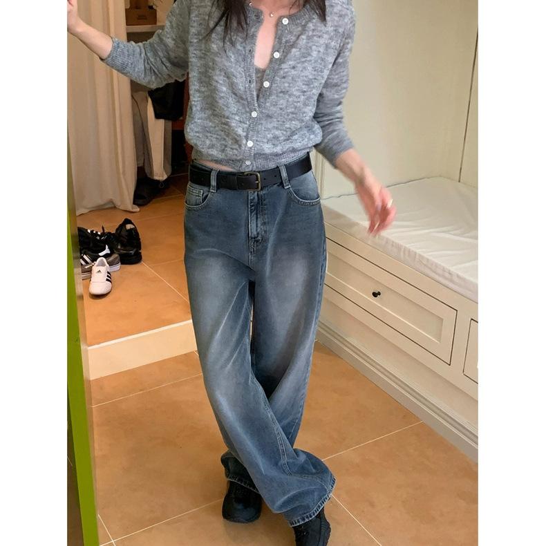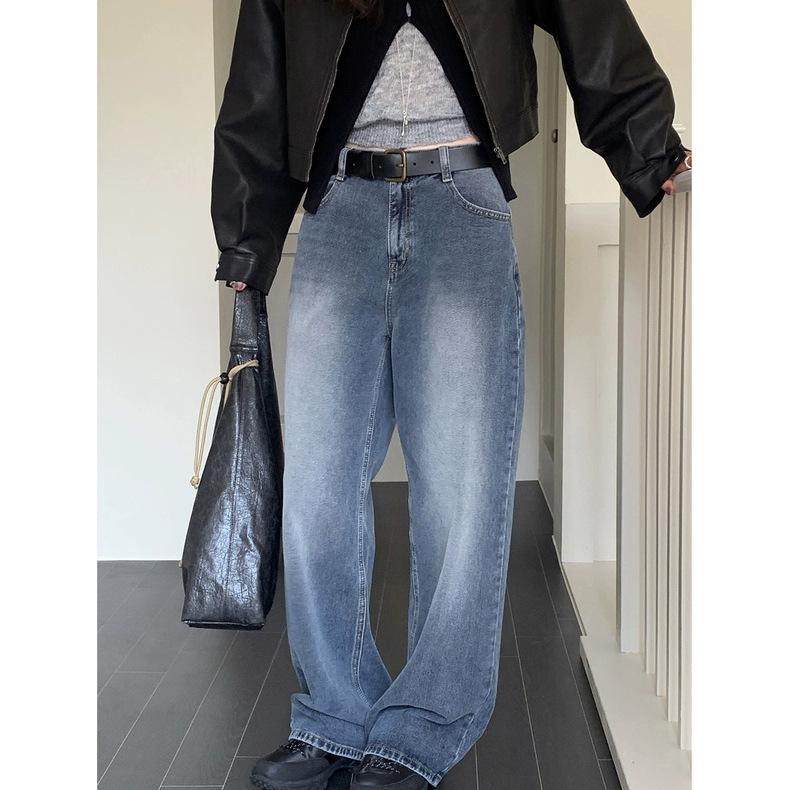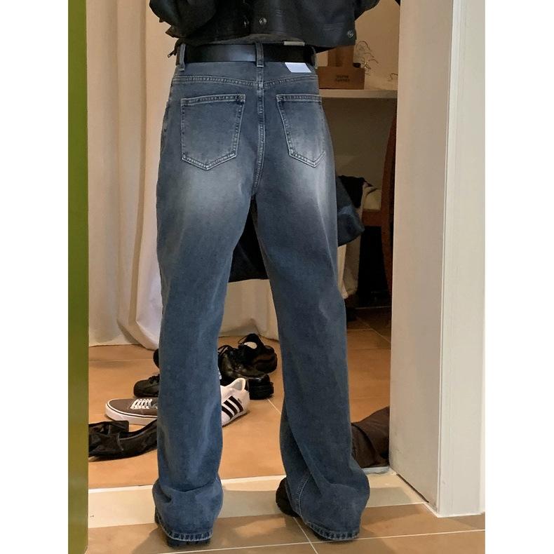 Spot 2025 Otoño Nuevo Coreano Dongdaemun Elegante Retro Slim Casual Cintura Alta Rectos Pantalones de Mezclilla para Mujer