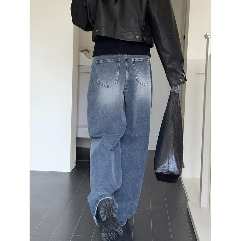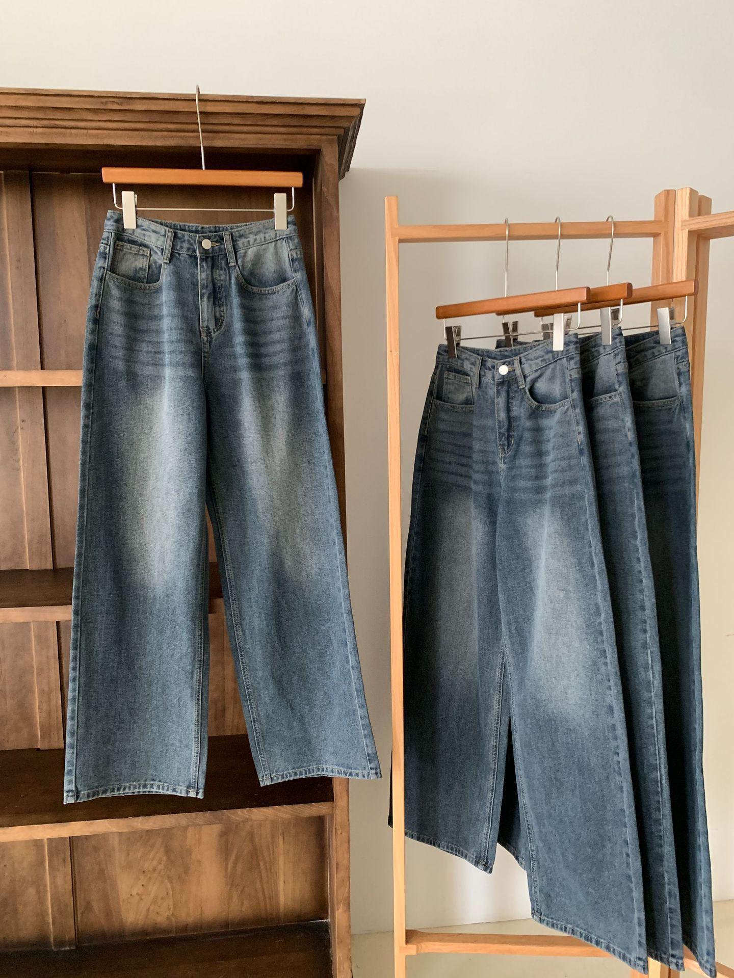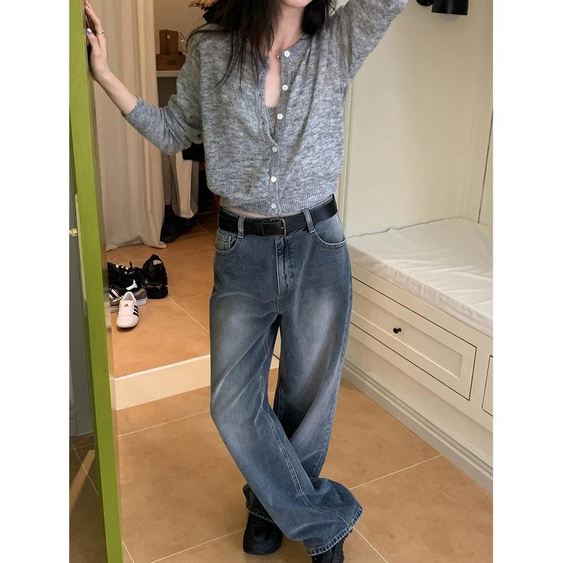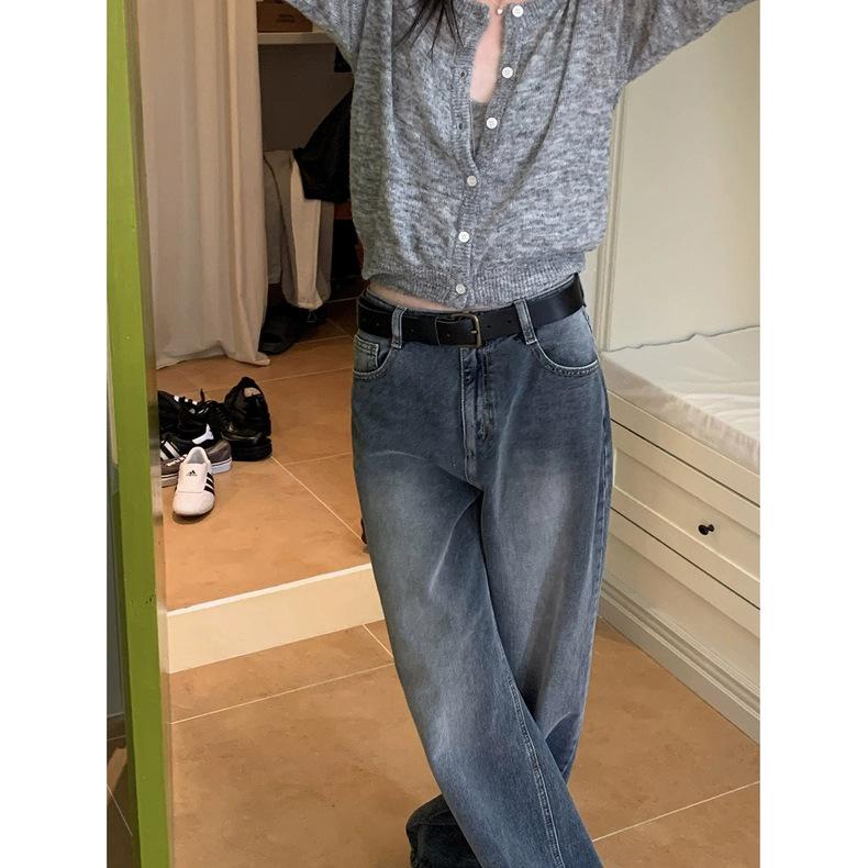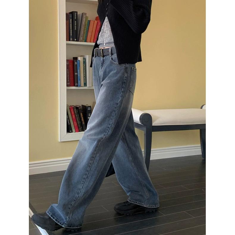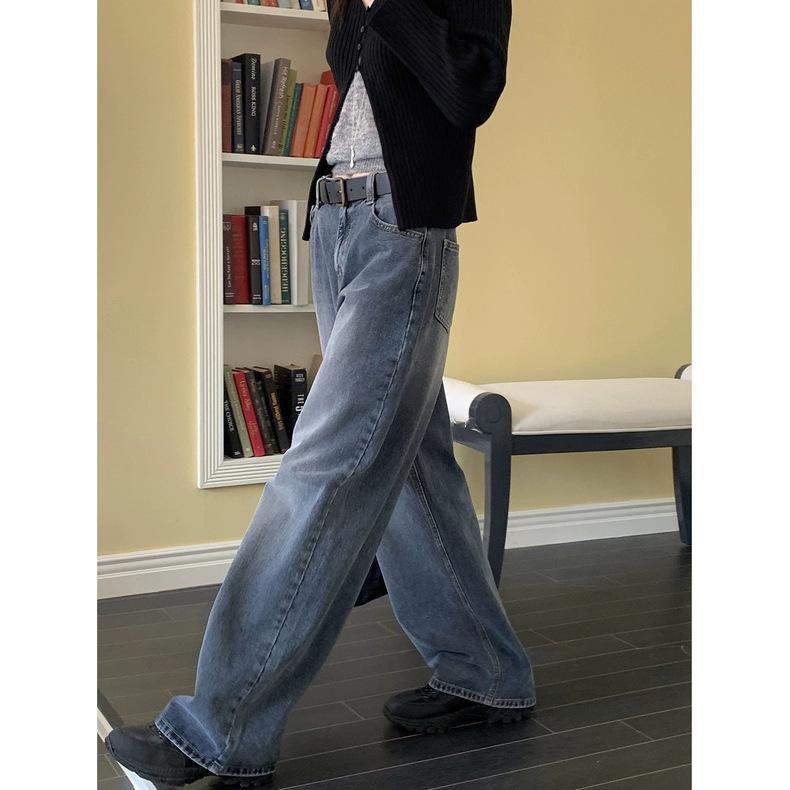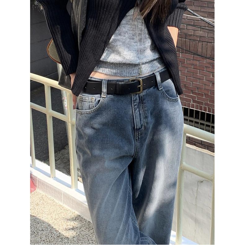Spot 2025 Otoño Nuevo Coreano Dongdaemun Elegante Retro Slim Casual Cintura Alta Rectos Pantalones de Mezclilla para Mujer