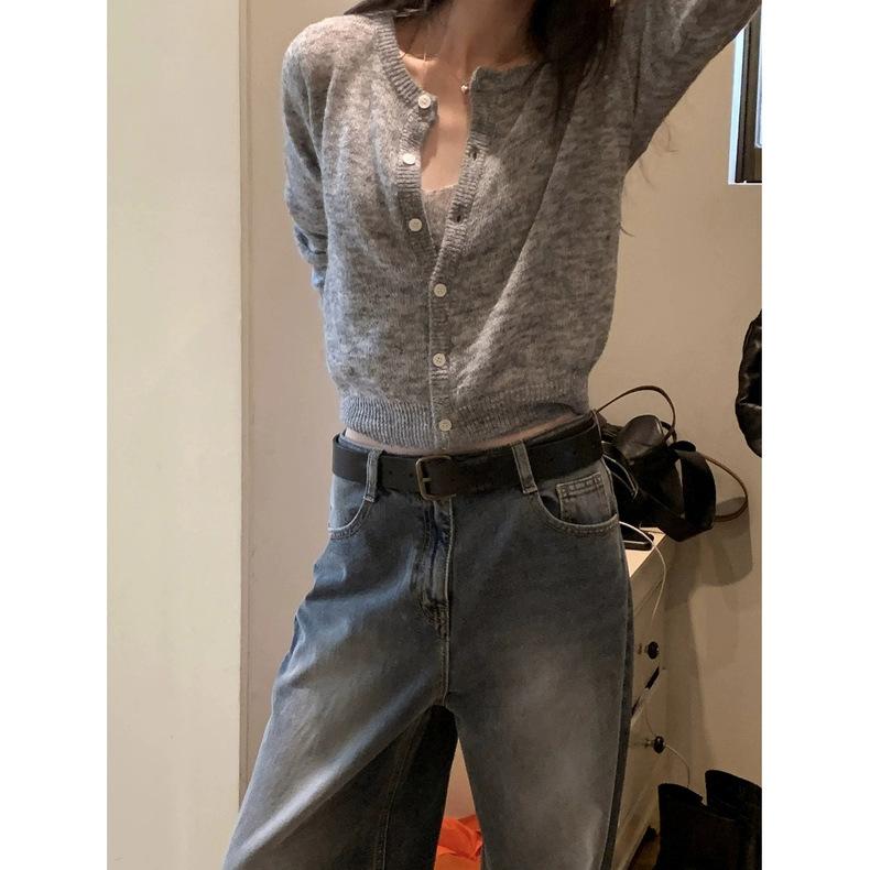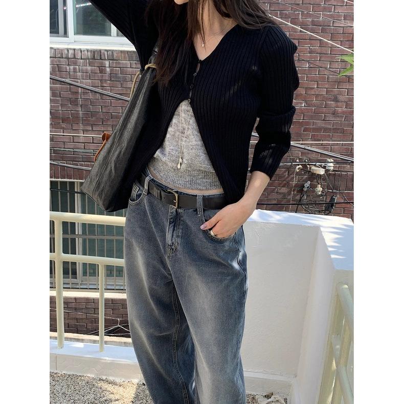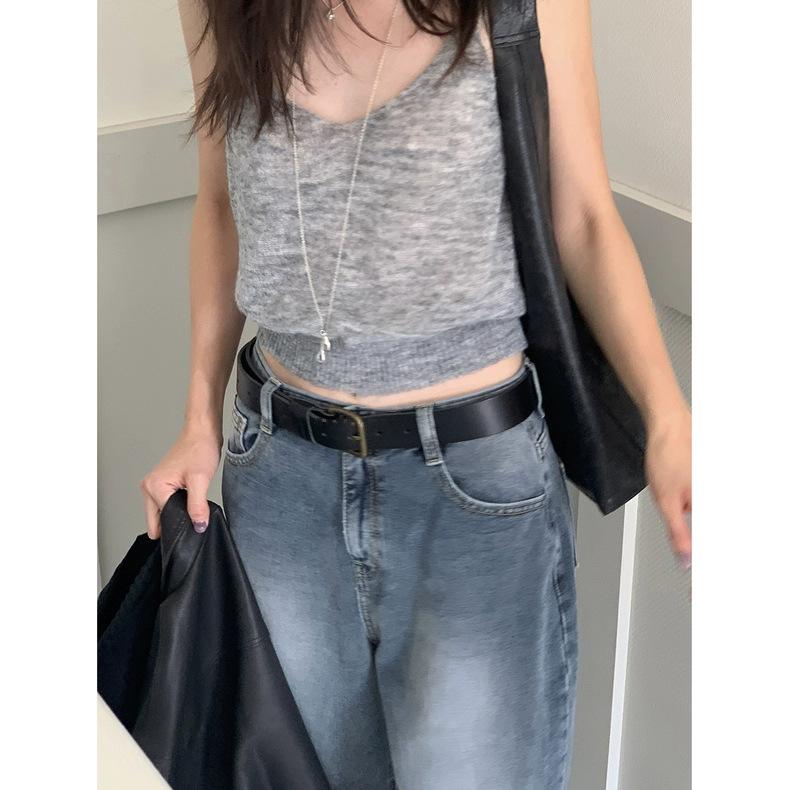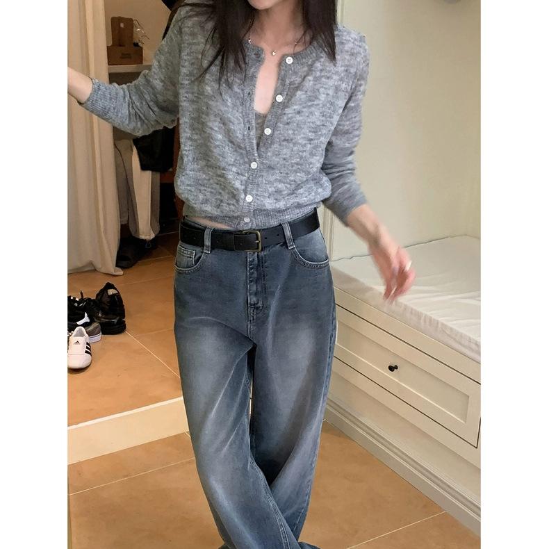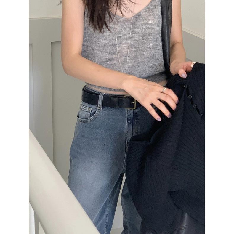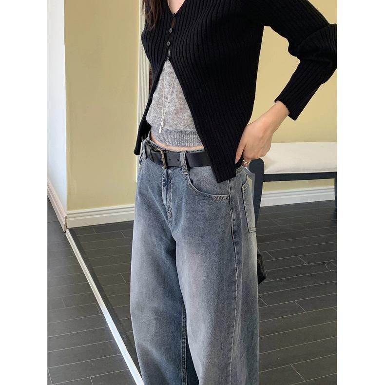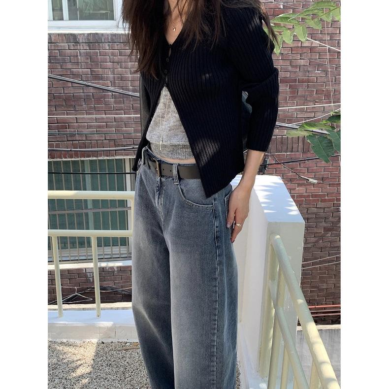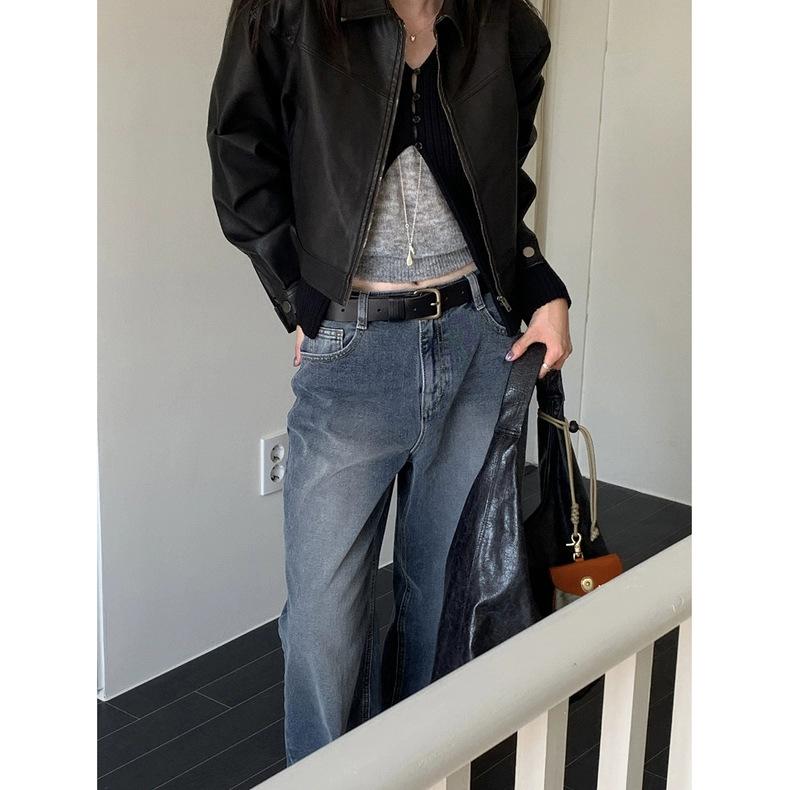Spot 2025 Otoño Nuevo Coreano Dongdaemun Elegante Retro Slim Casual Cintura Alta Rectos Pantalones de Mezclilla para Mujer