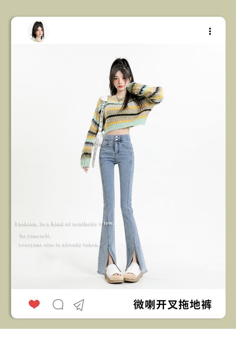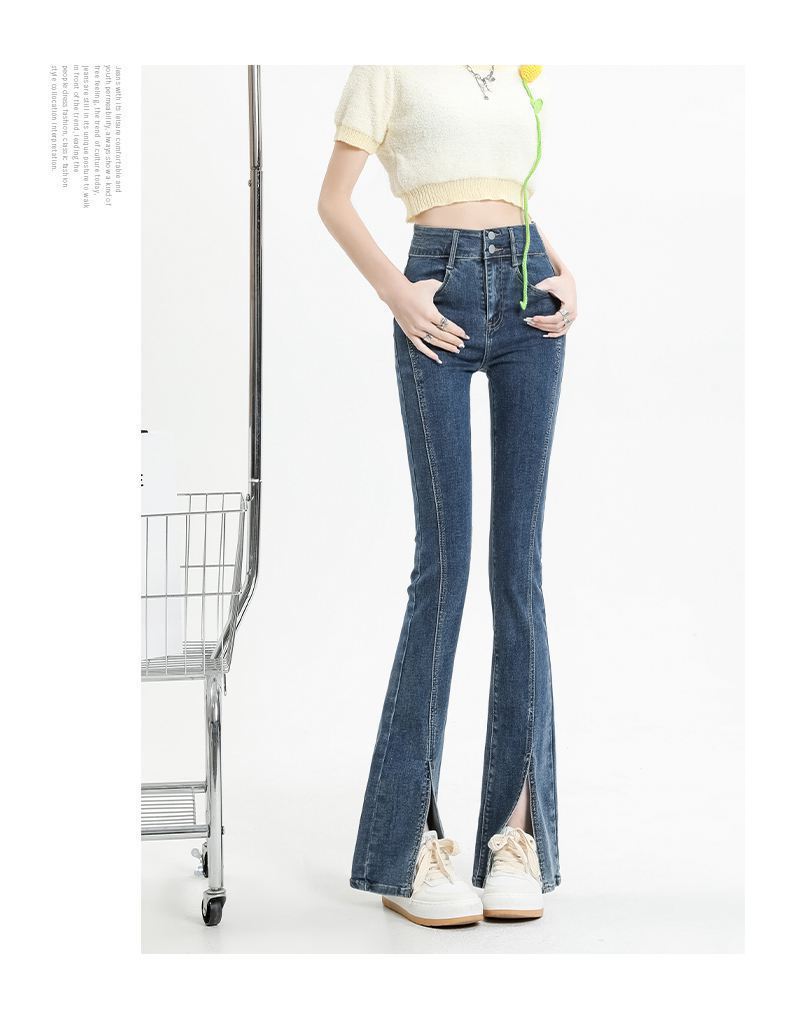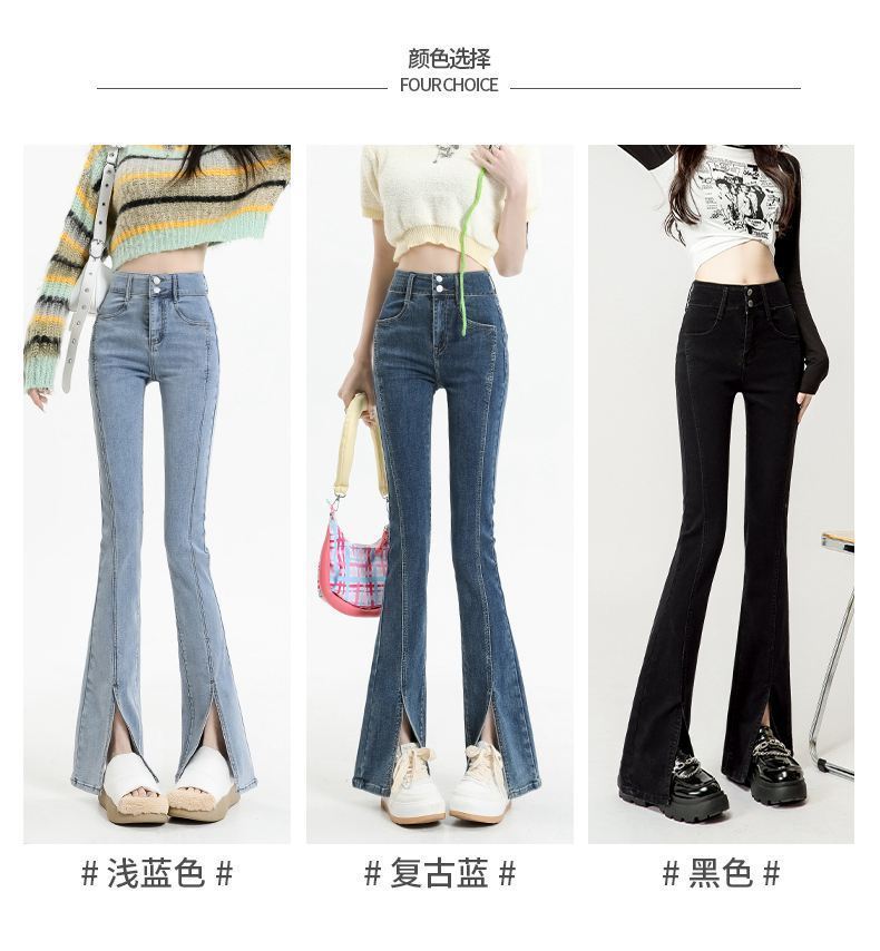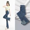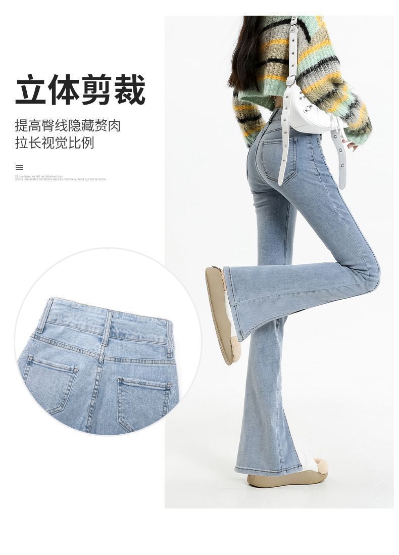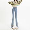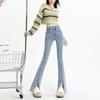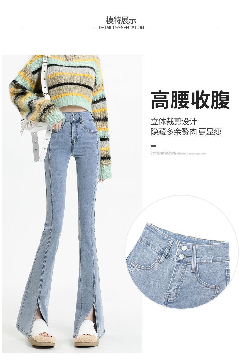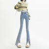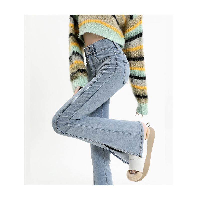 Pantalones acampanados azul claro para mujer, primavera, otoño e invierno, cintura alta, adelgazantes, nuevos vaqueros de corte microelástico con abertura que combinan con todo.