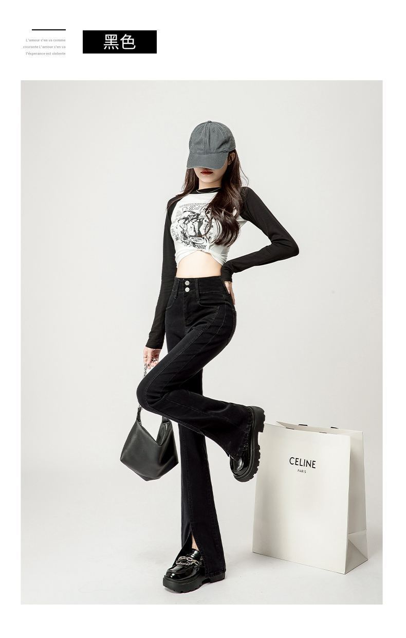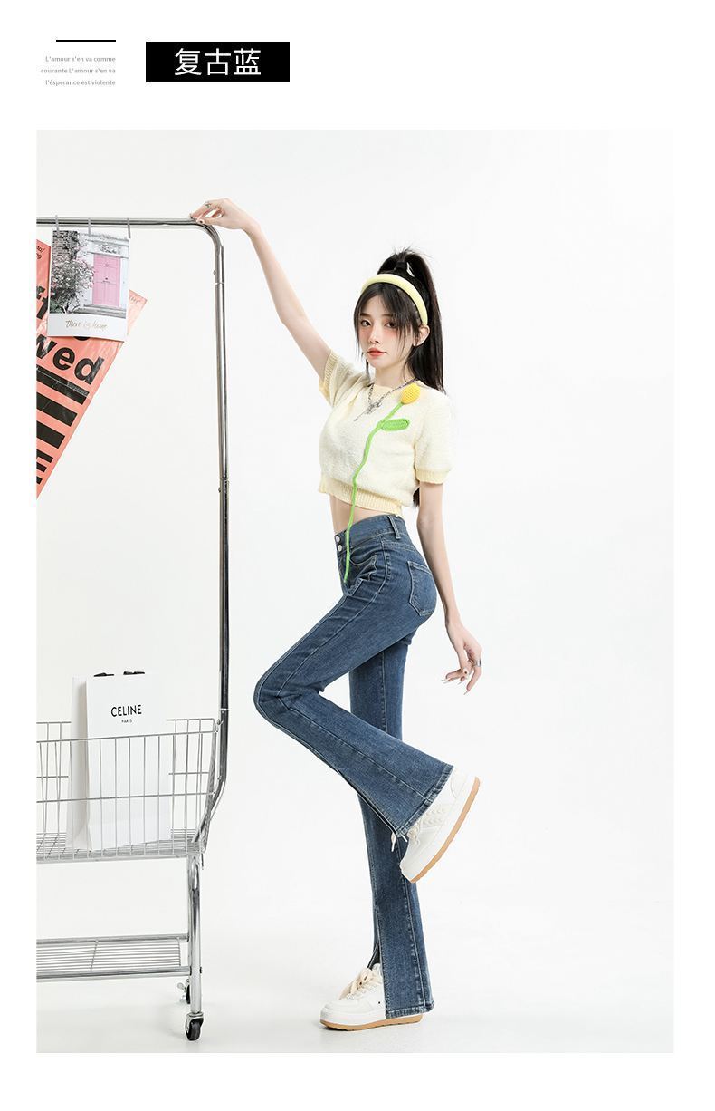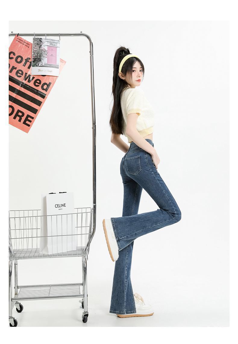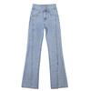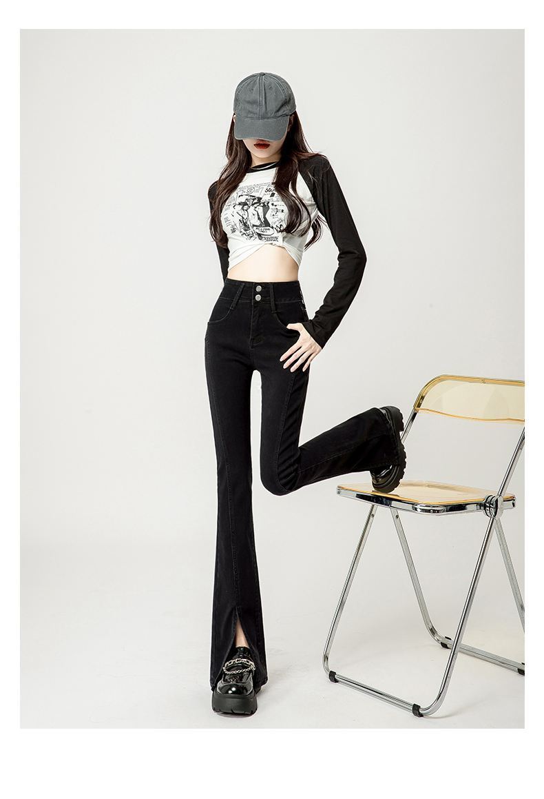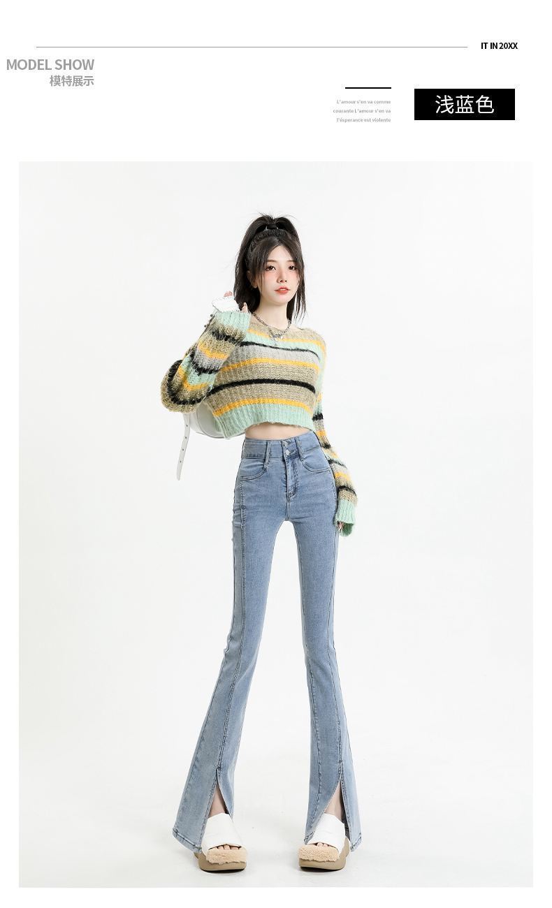 Pantalones acampanados azul claro para mujer, primavera, otoño e invierno, cintura alta, adelgazantes, nuevos vaqueros de corte microelástico con abertura que combinan con todo.