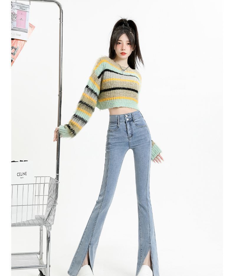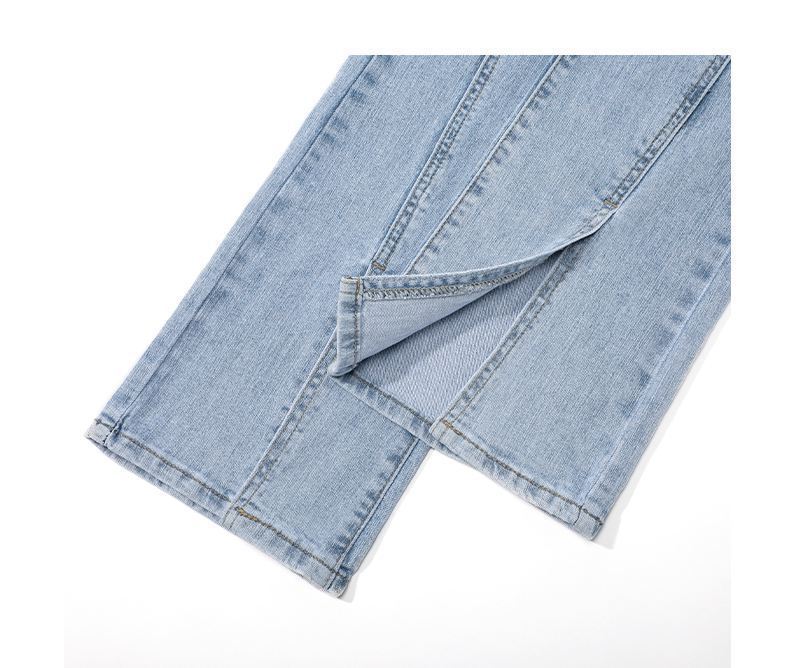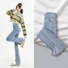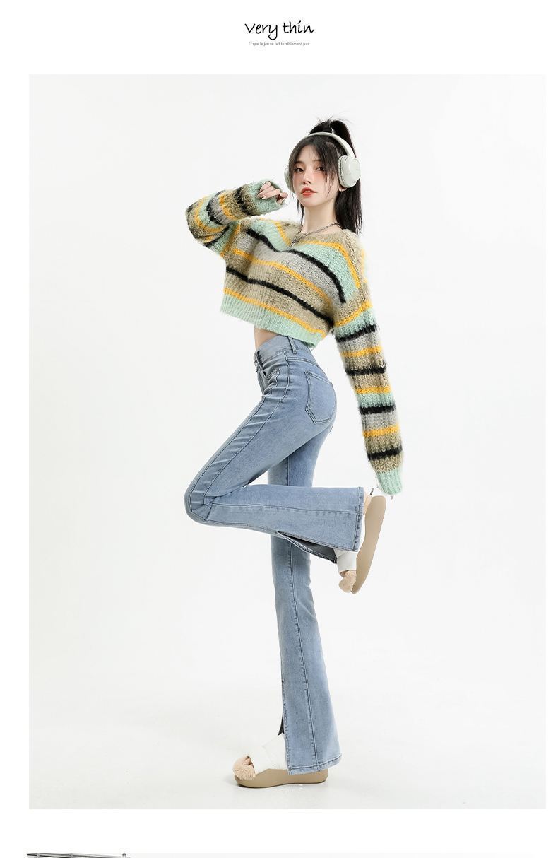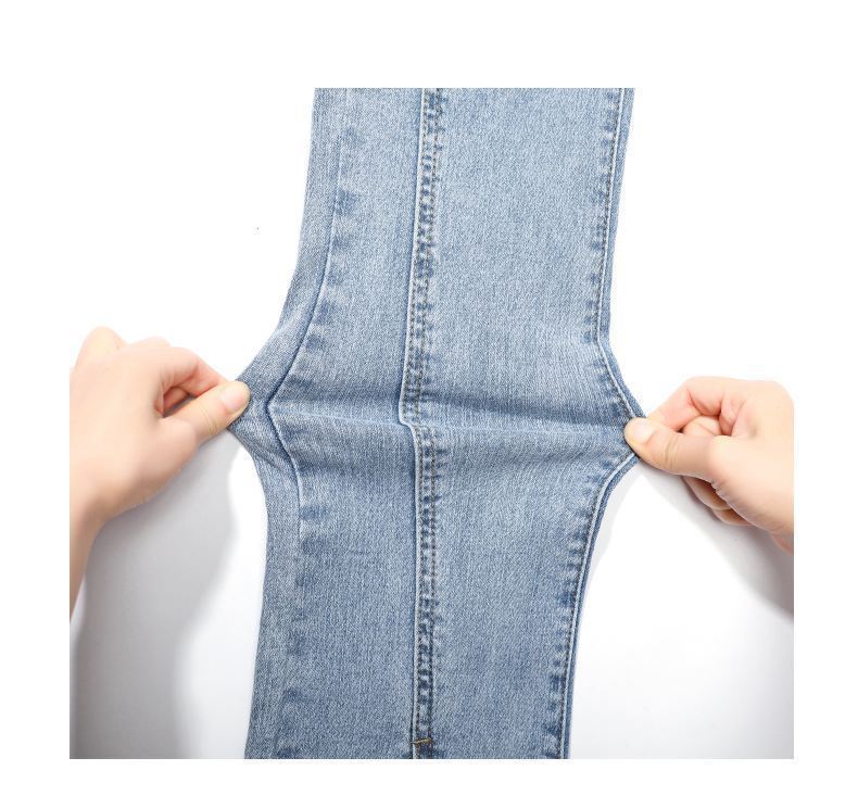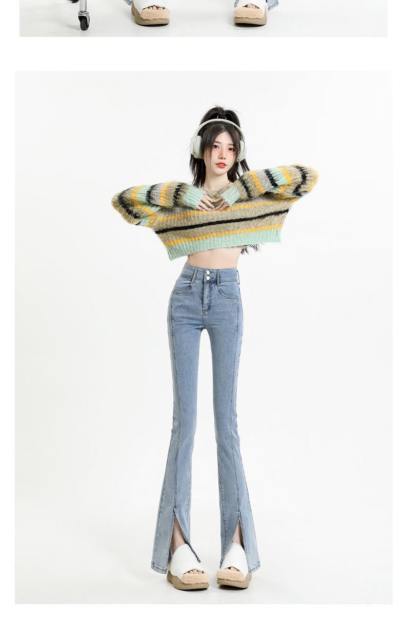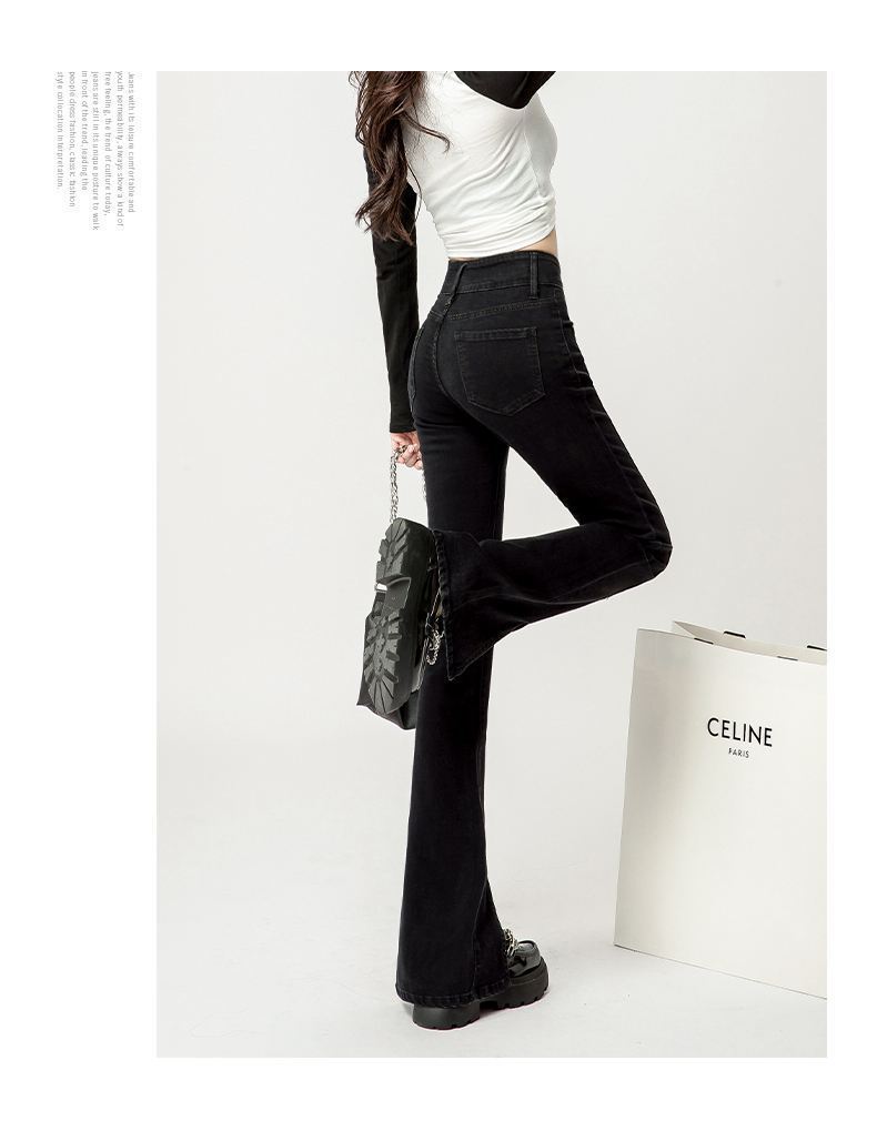 Pantalones acampanados azul claro para mujer, primavera, otoño e invierno, cintura alta, adelgazantes, nuevos vaqueros de corte microelástico con abertura que combinan con todo.