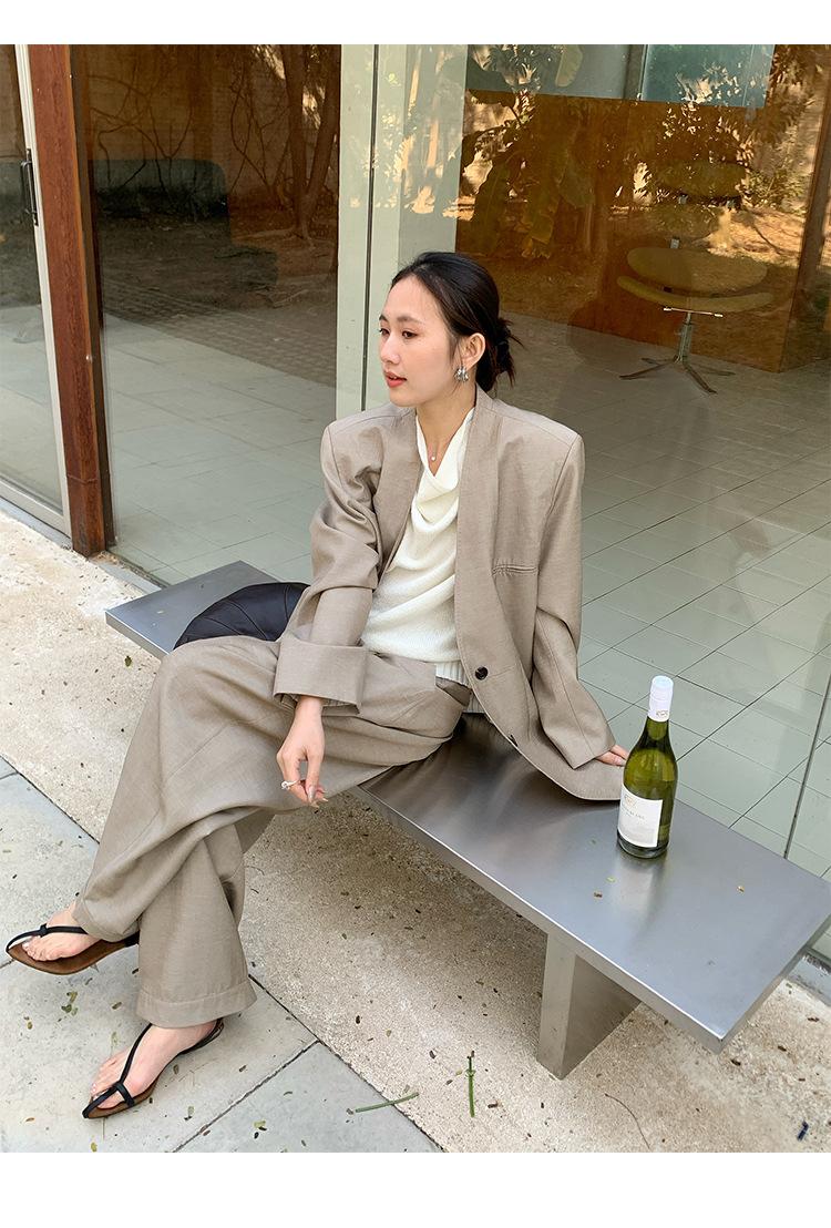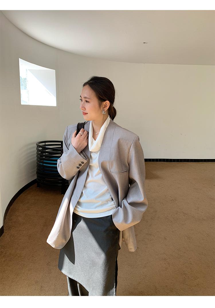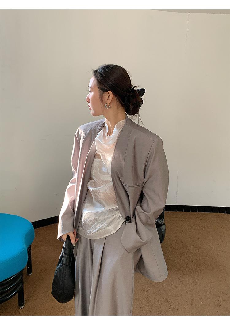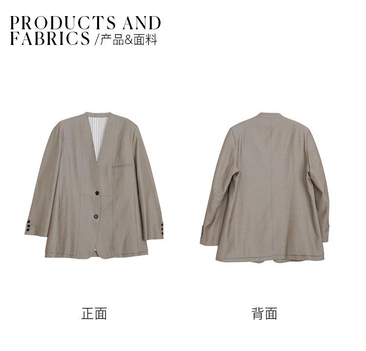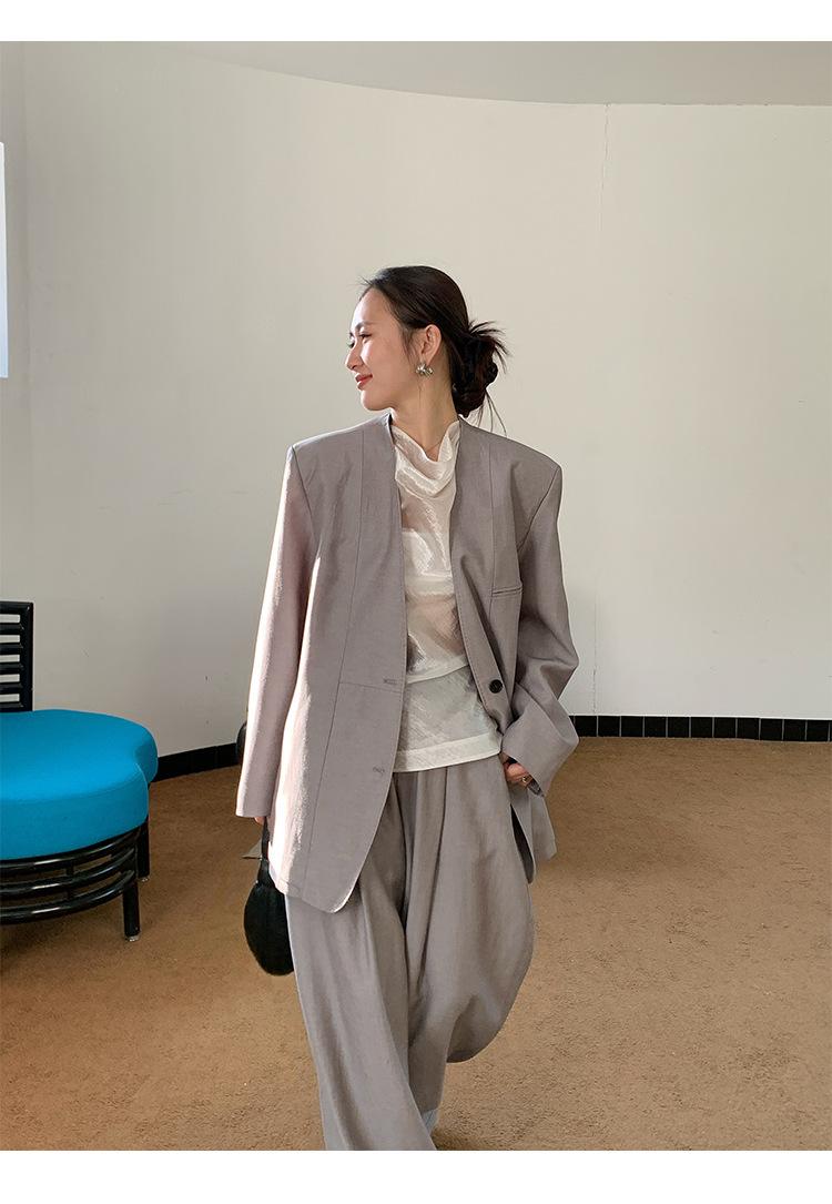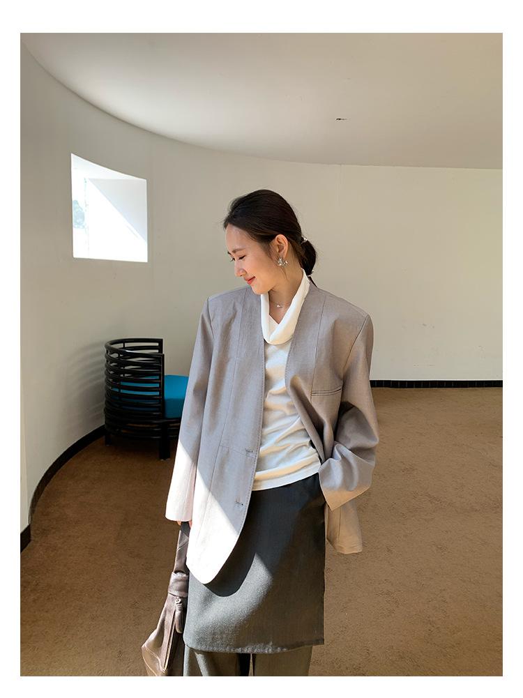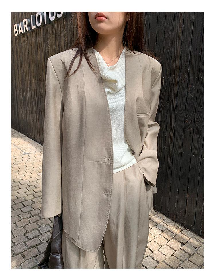 Traje Wanwei con Cuello en V y Hombreras para Mujer 2025 Primavera Nuevo Estilo Diseño sin Cuello Elegante Traje de Oficina Chaqueta 2768