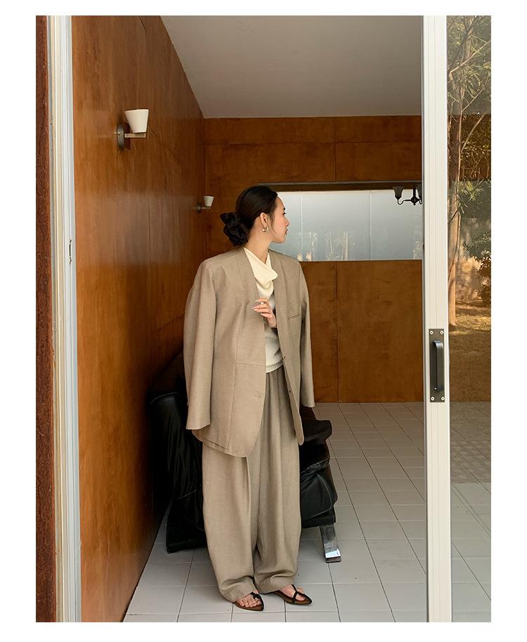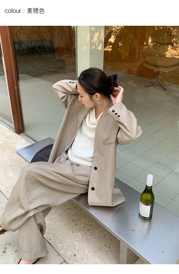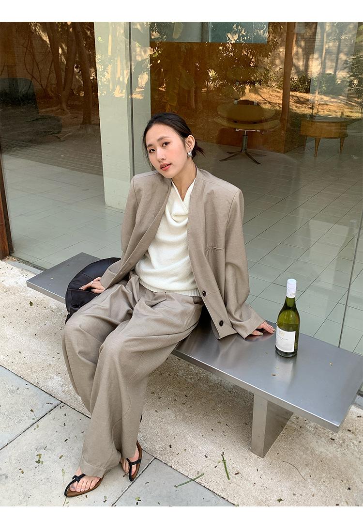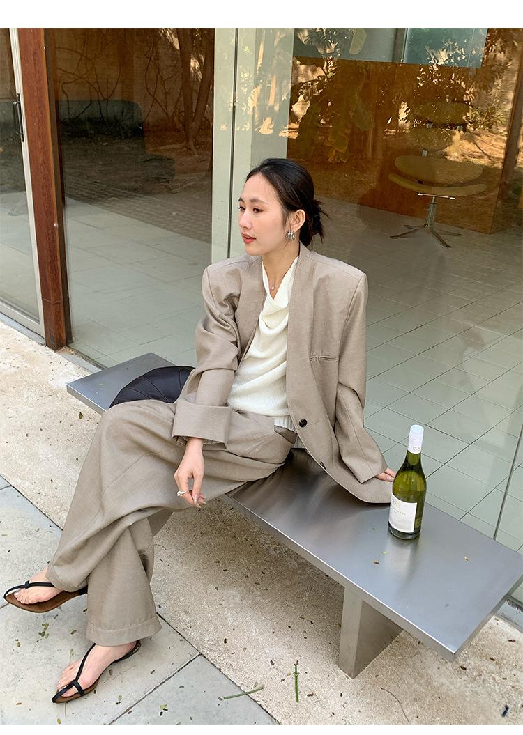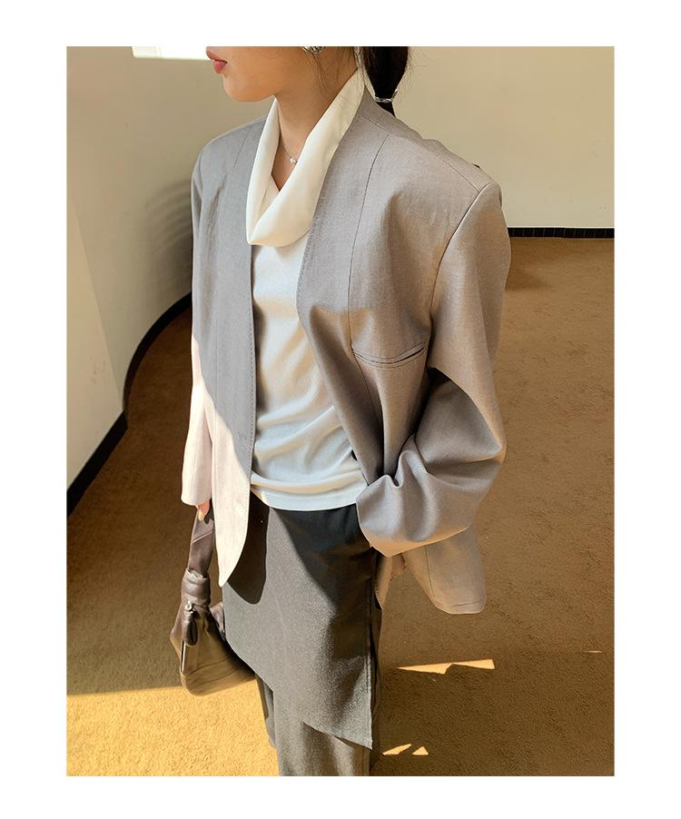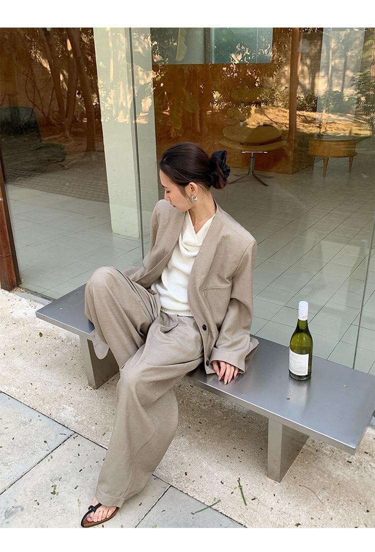 Traje Wanwei con Cuello en V y Hombreras para Mujer 2025 Primavera Nuevo Estilo Diseño sin Cuello Elegante Traje de Oficina Chaqueta 2768