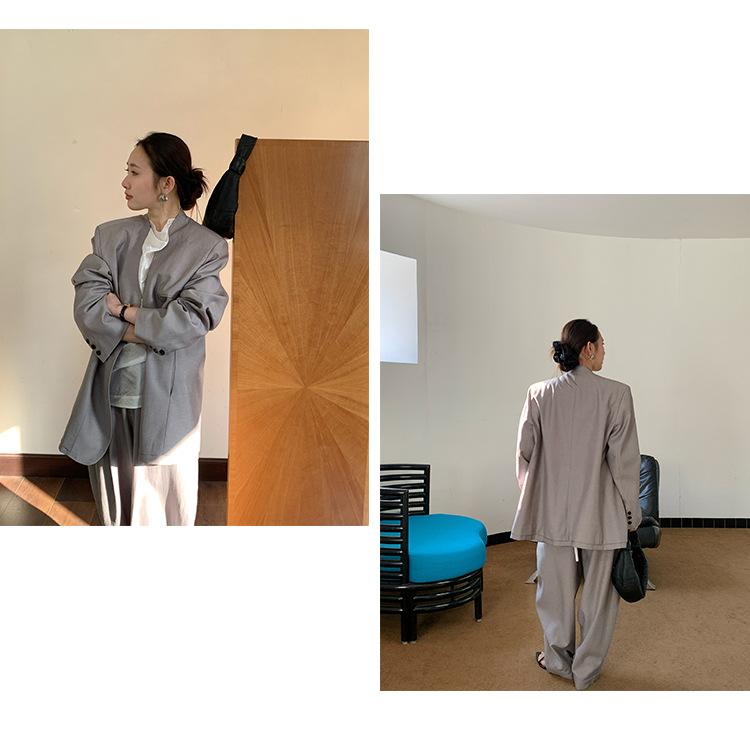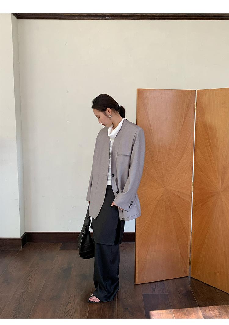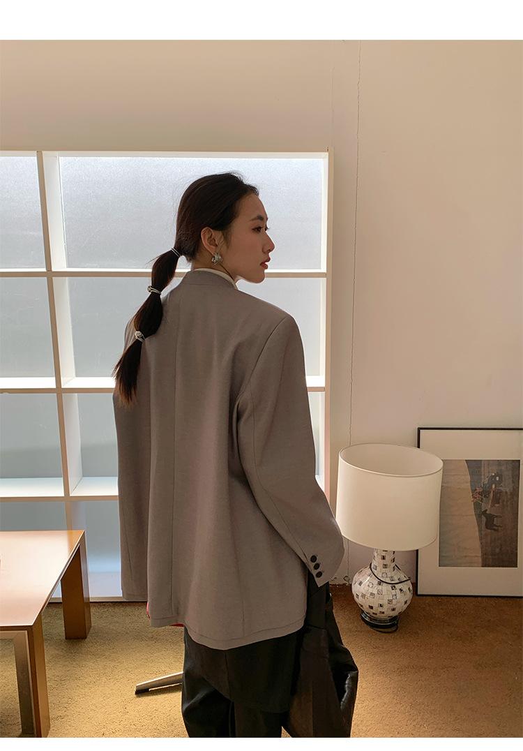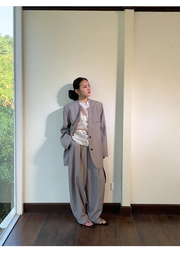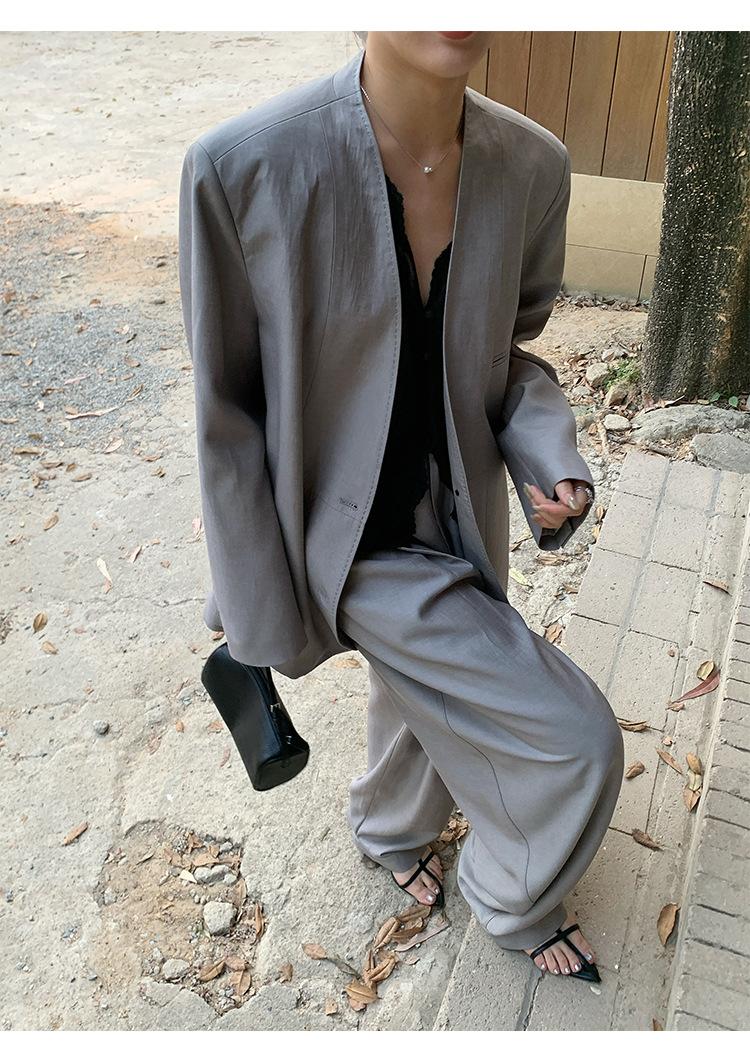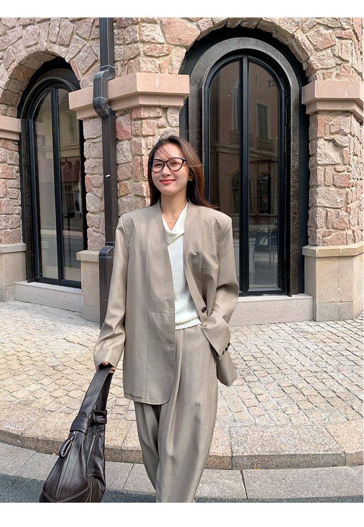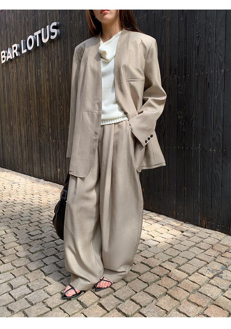 Traje Wanwei con Cuello en V y Hombreras para Mujer 2025 Primavera Nuevo Estilo Diseño sin Cuello Elegante Traje de Oficina Chaqueta 2768