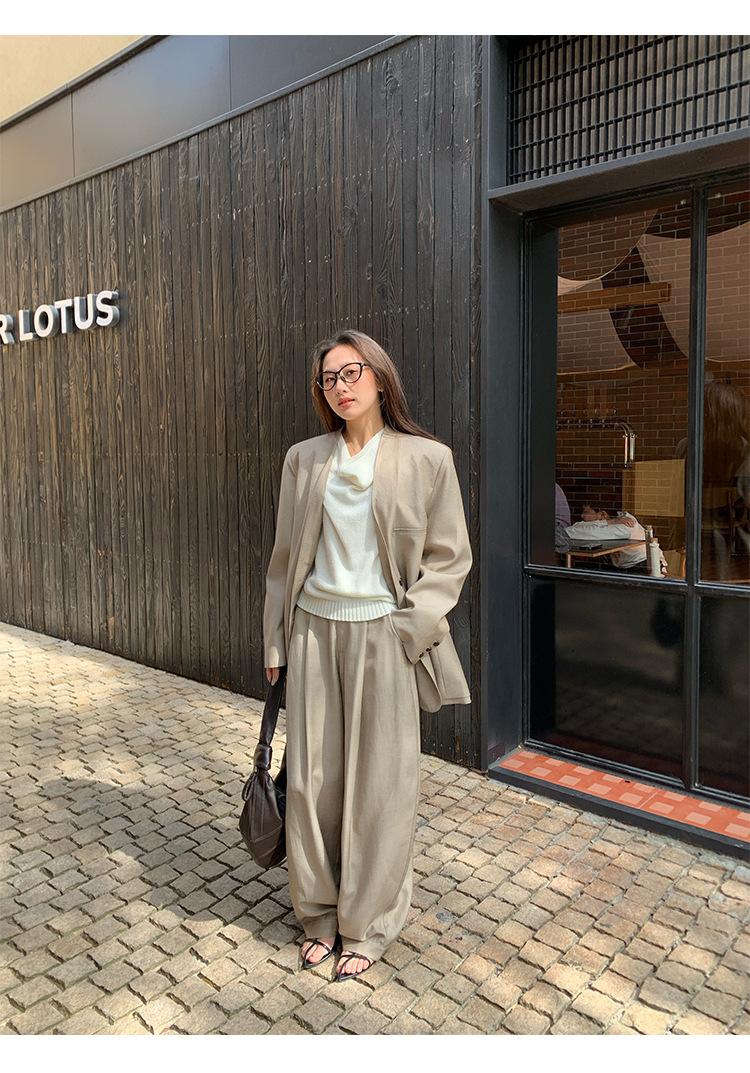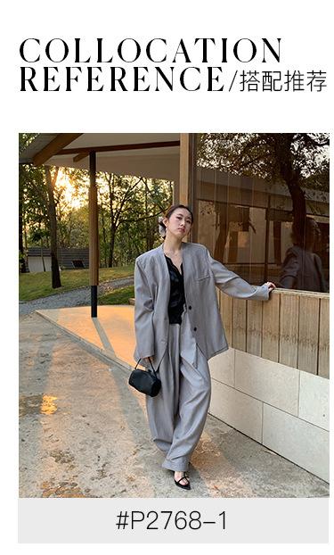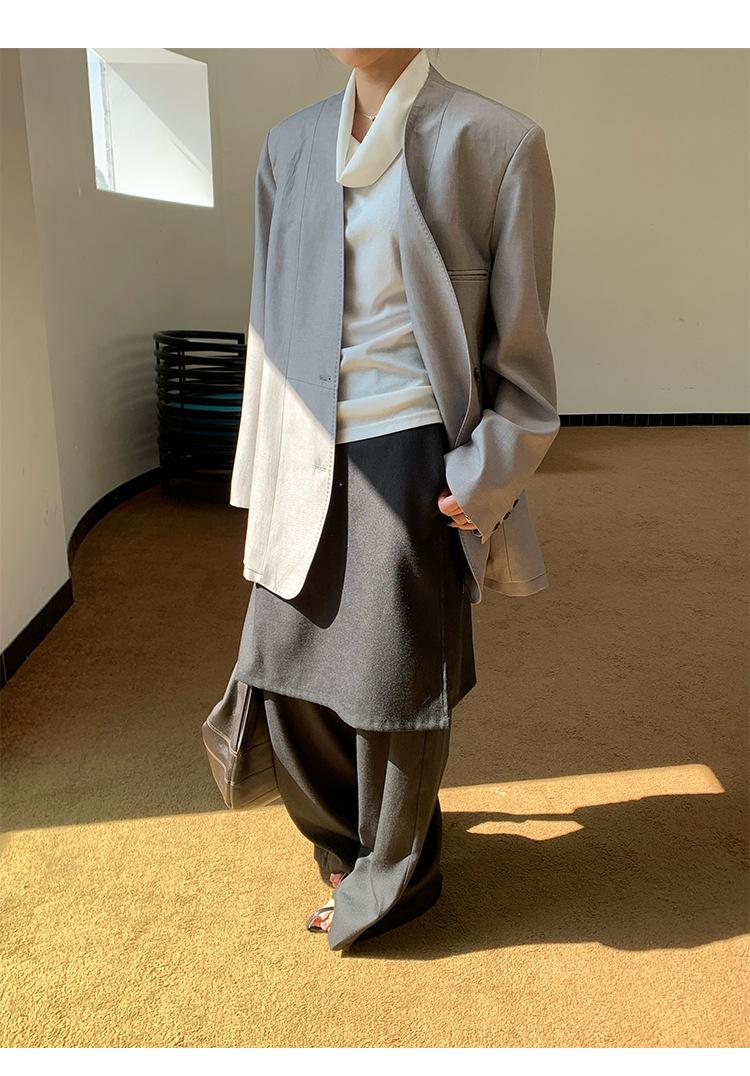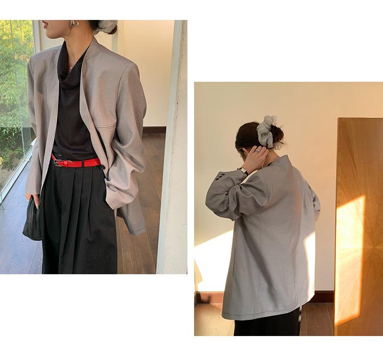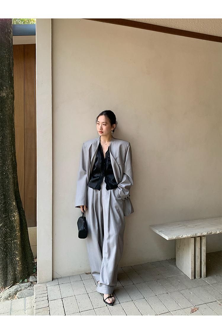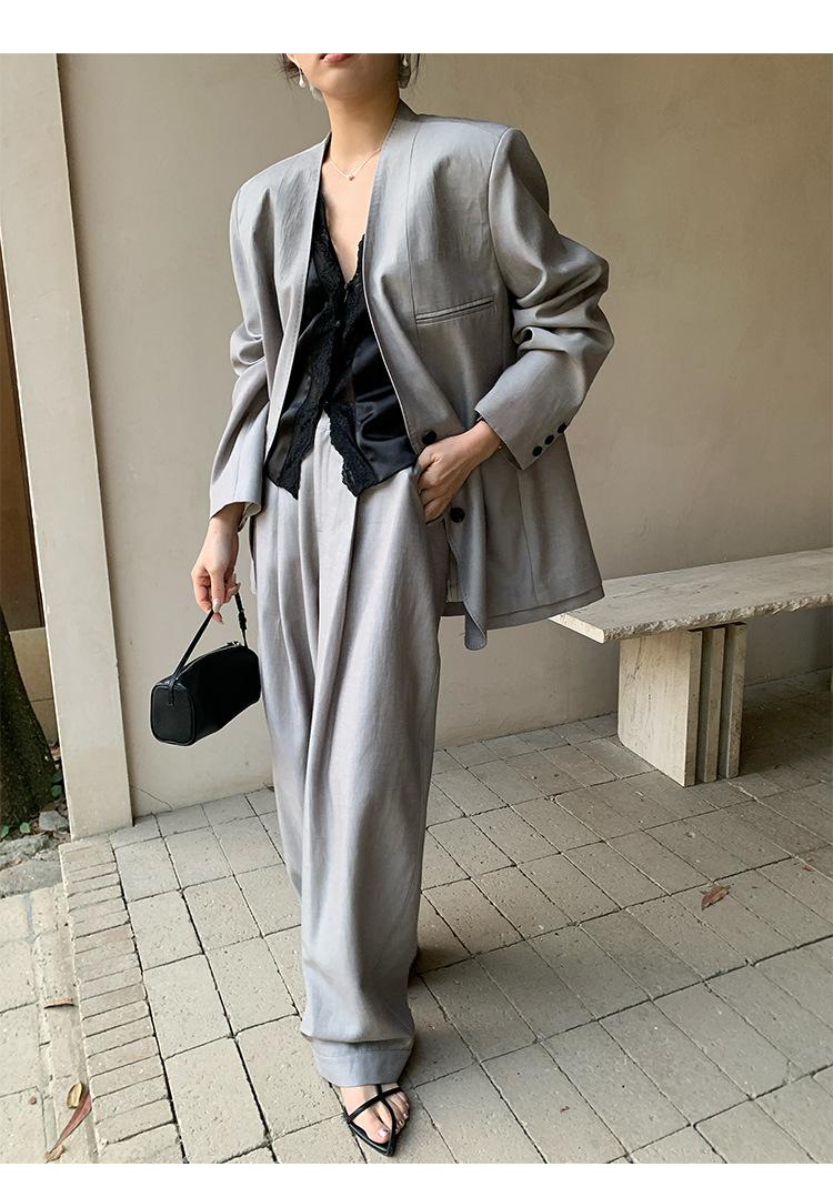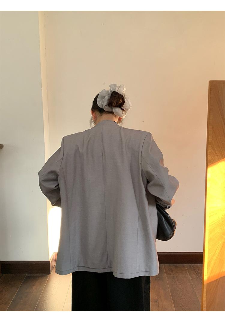 Traje Wanwei con Cuello en V y Hombreras para Mujer 2025 Primavera Nuevo Estilo Diseño sin Cuello Elegante Traje de Oficina Chaqueta 2768