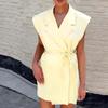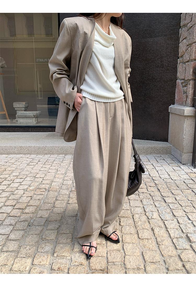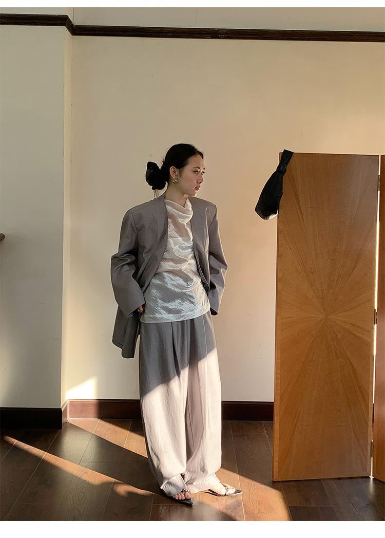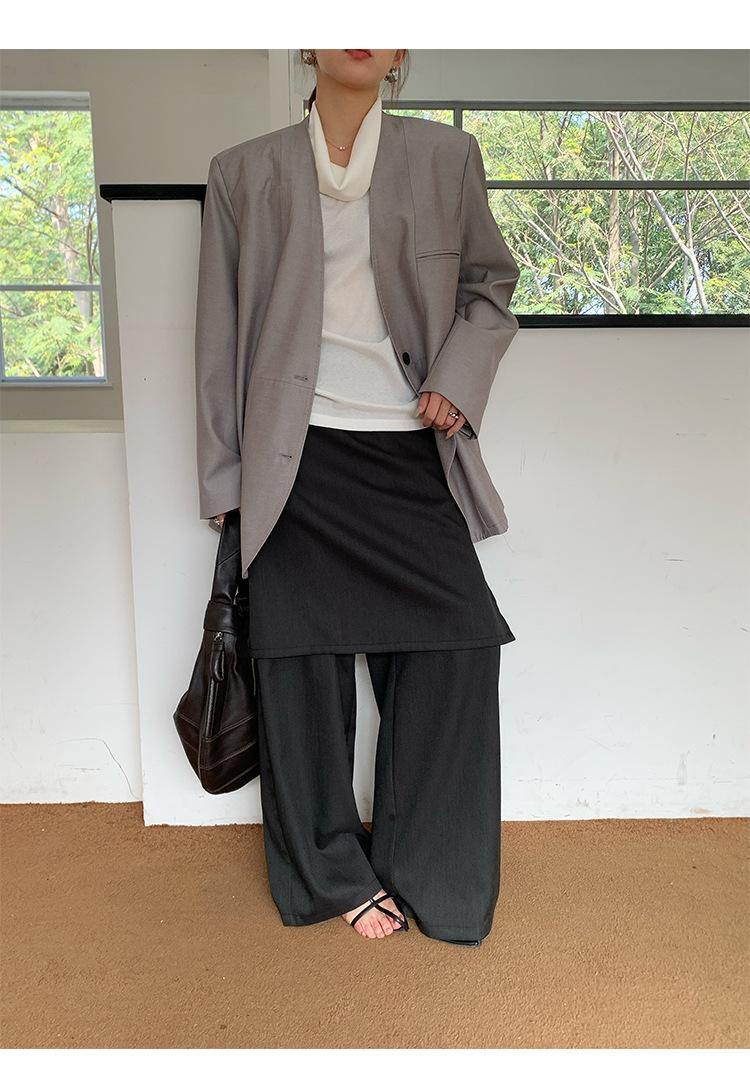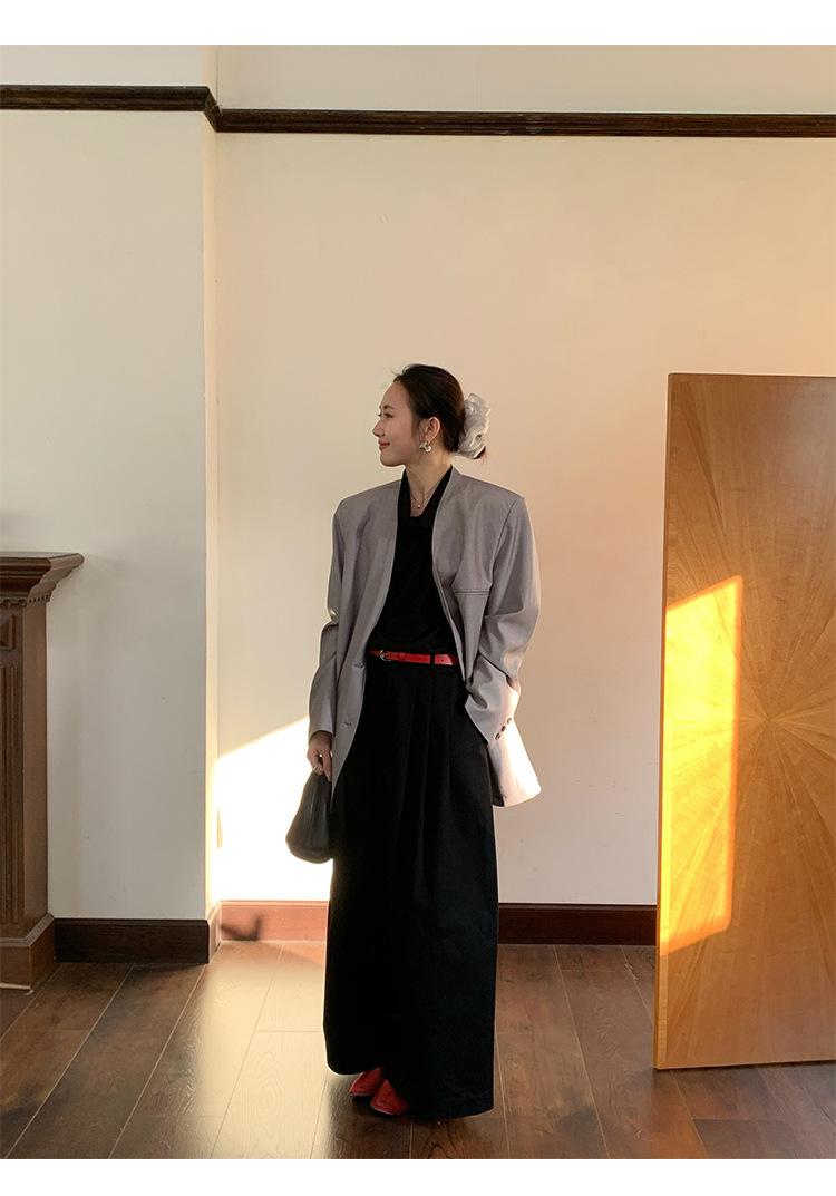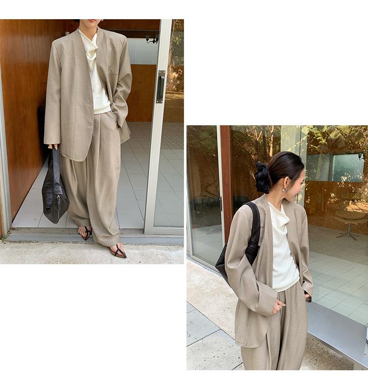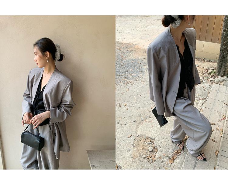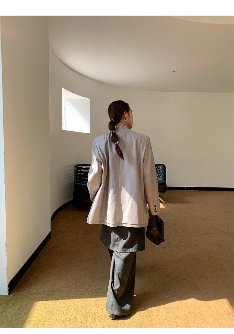 Traje Wanwei con Cuello en V y Hombreras para Mujer 2025 Primavera Nuevo Estilo Diseño sin Cuello Elegante Traje de Oficina Chaqueta 2768