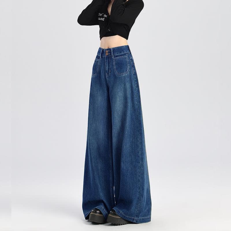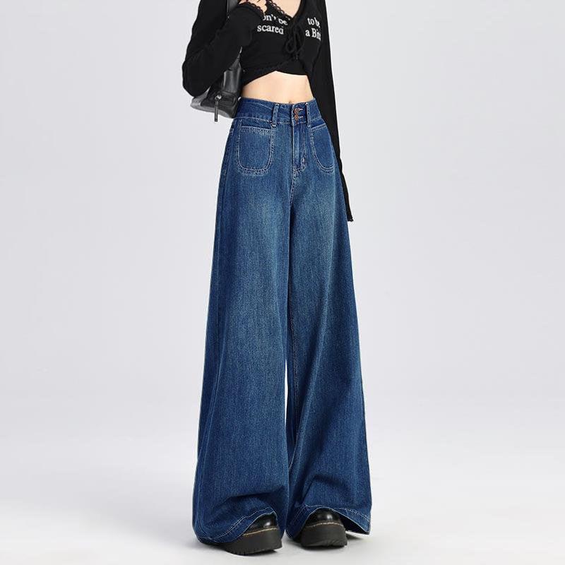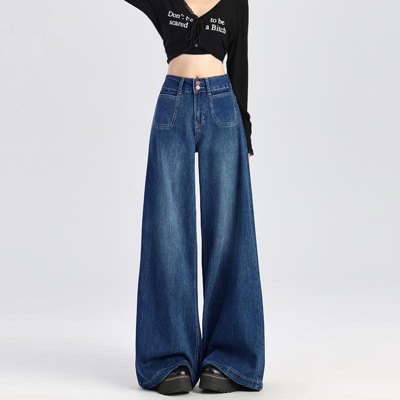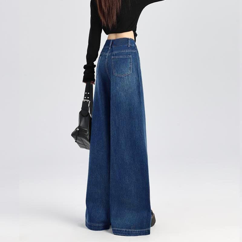 Pantalones anchos y holgados de pierna ancha, cómodos, nuevos, para mujer, diseño de calle, jeans ajustados, elásticos, primavera 2025
