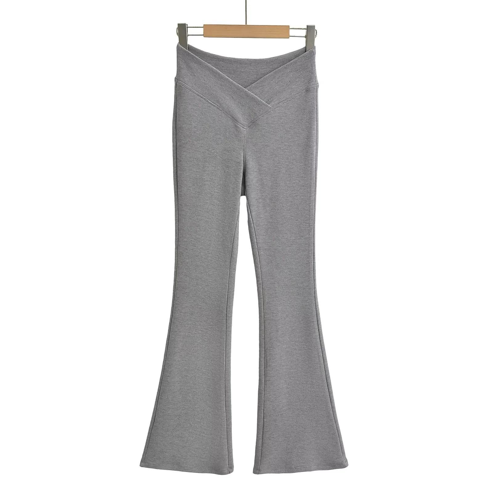 LULU Pantalones Acampanados Sexy estilo Americano de Felpa con Proteína Primavera 2025 Cintura Alta en V Elásticos Ajustados Adelgazantes Pantalones Casuales