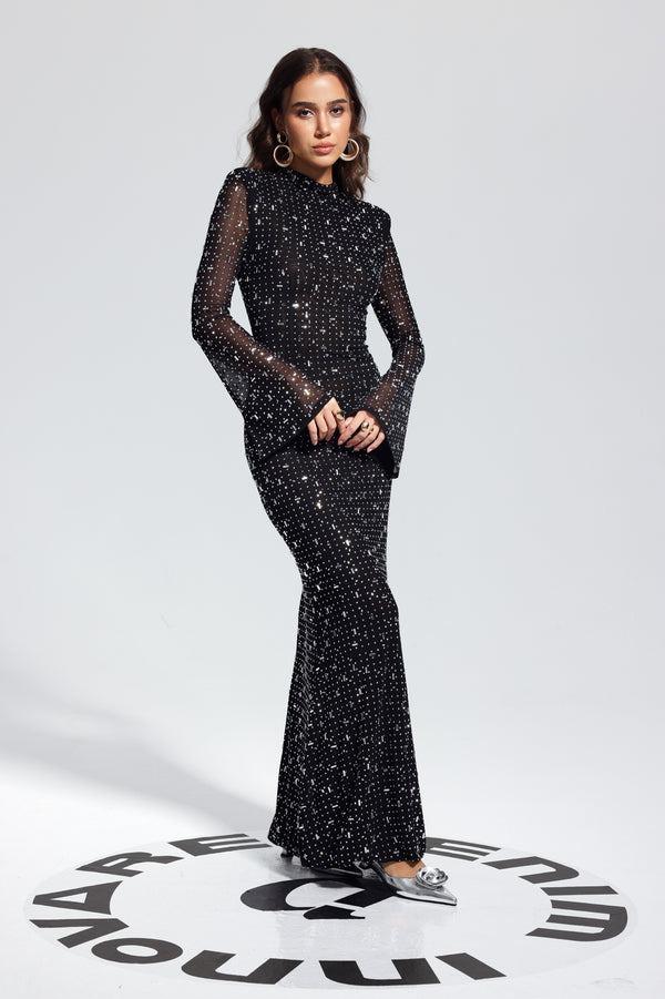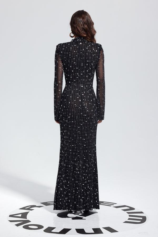 Vestido negro de moda, sexy, ajustado, con tirantes y diamantes de imitación, estilo europeo y americano, nuevo y popular.