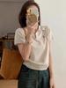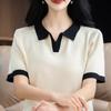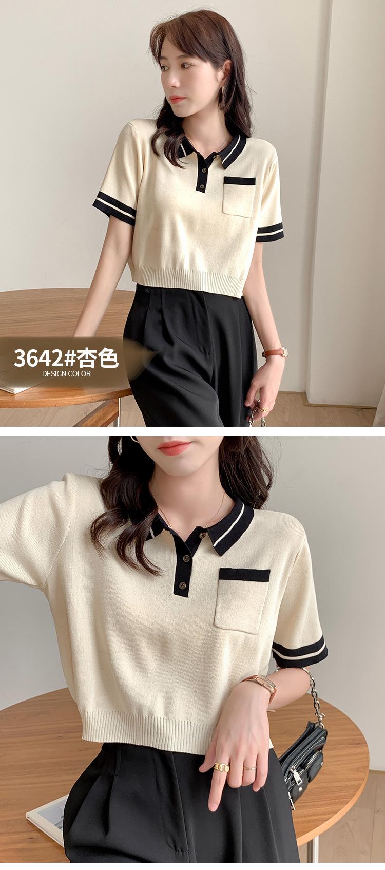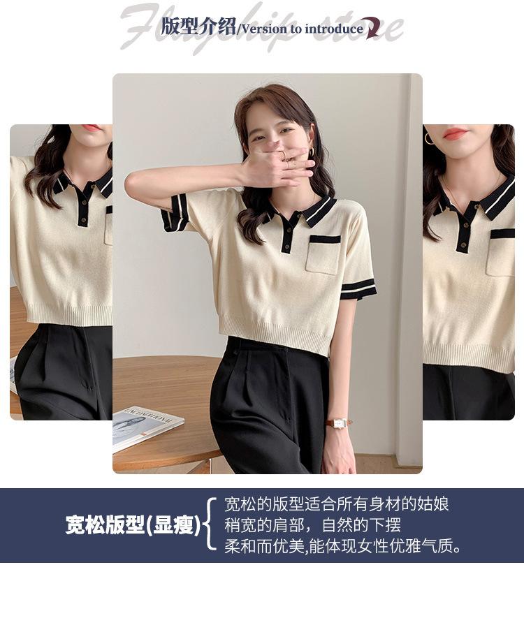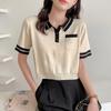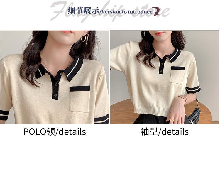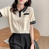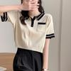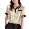 Playera de mujer de manga corta con cuello polo 2023 verano nuevo holgada delgada contraste top suéter corto moda de mujer