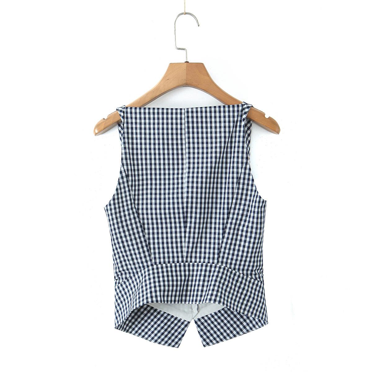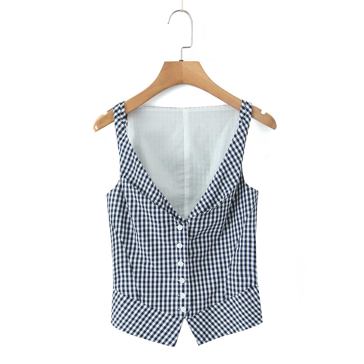7426-Estilo europeo y americano sexy ajustado sin mangas chaleco para mujer 2024 nuevo chicas calientes Joker a cuadros contraste top