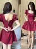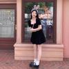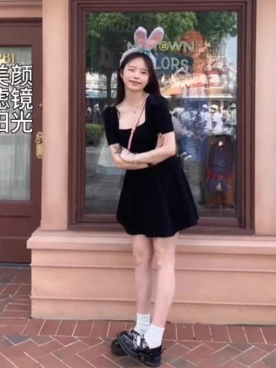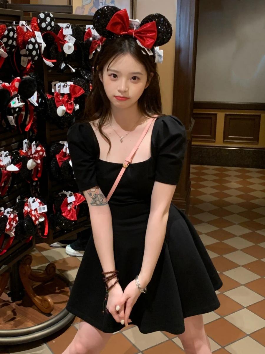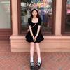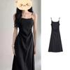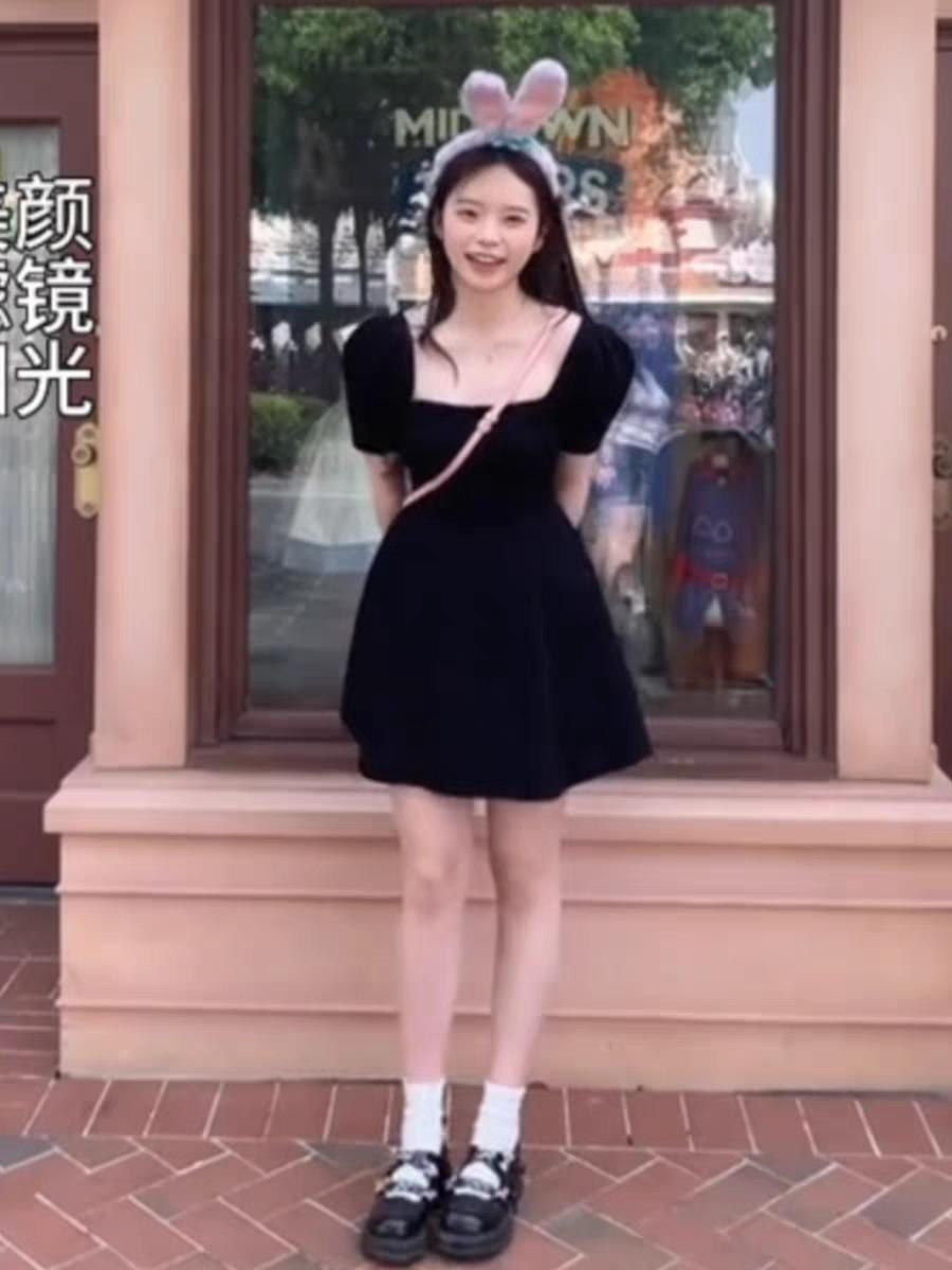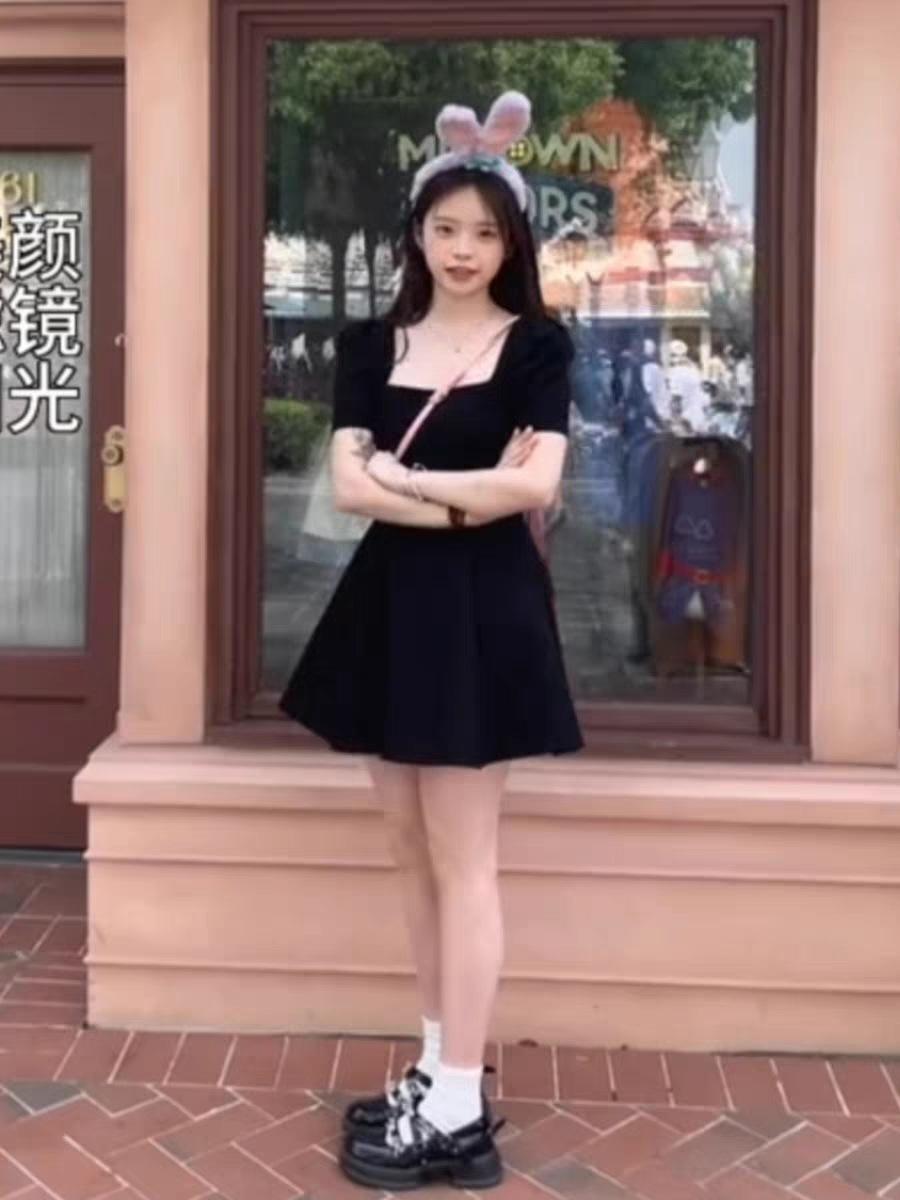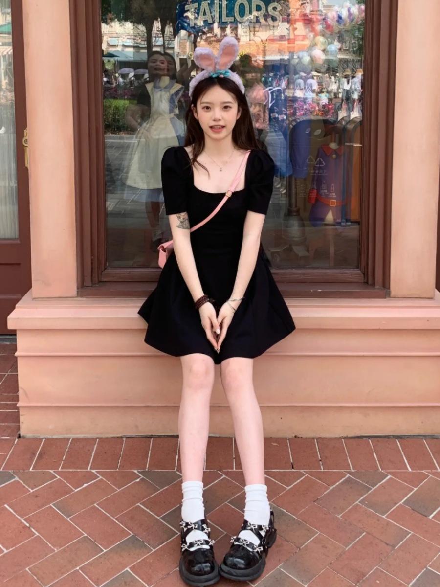 Vestido negro pequeño estilo Hepburn francés elegante con cuello cuadrado para mujer, verano 2025, nuevo, cintura adelgazante, corto A