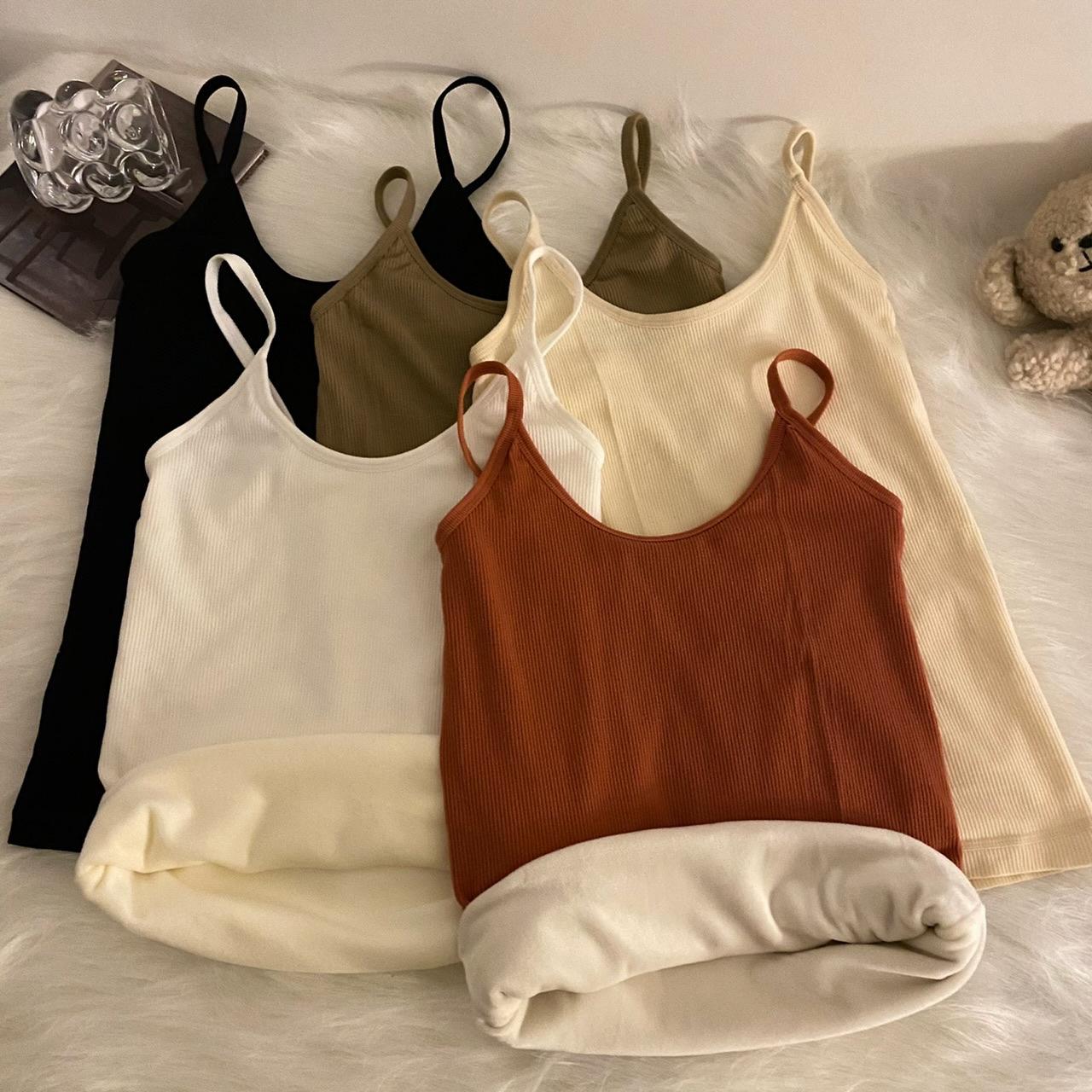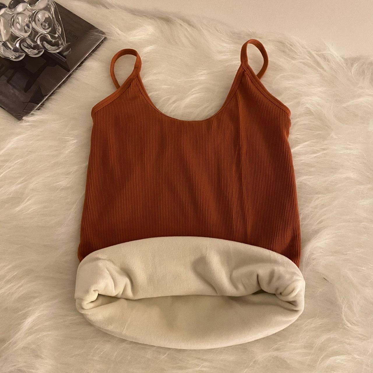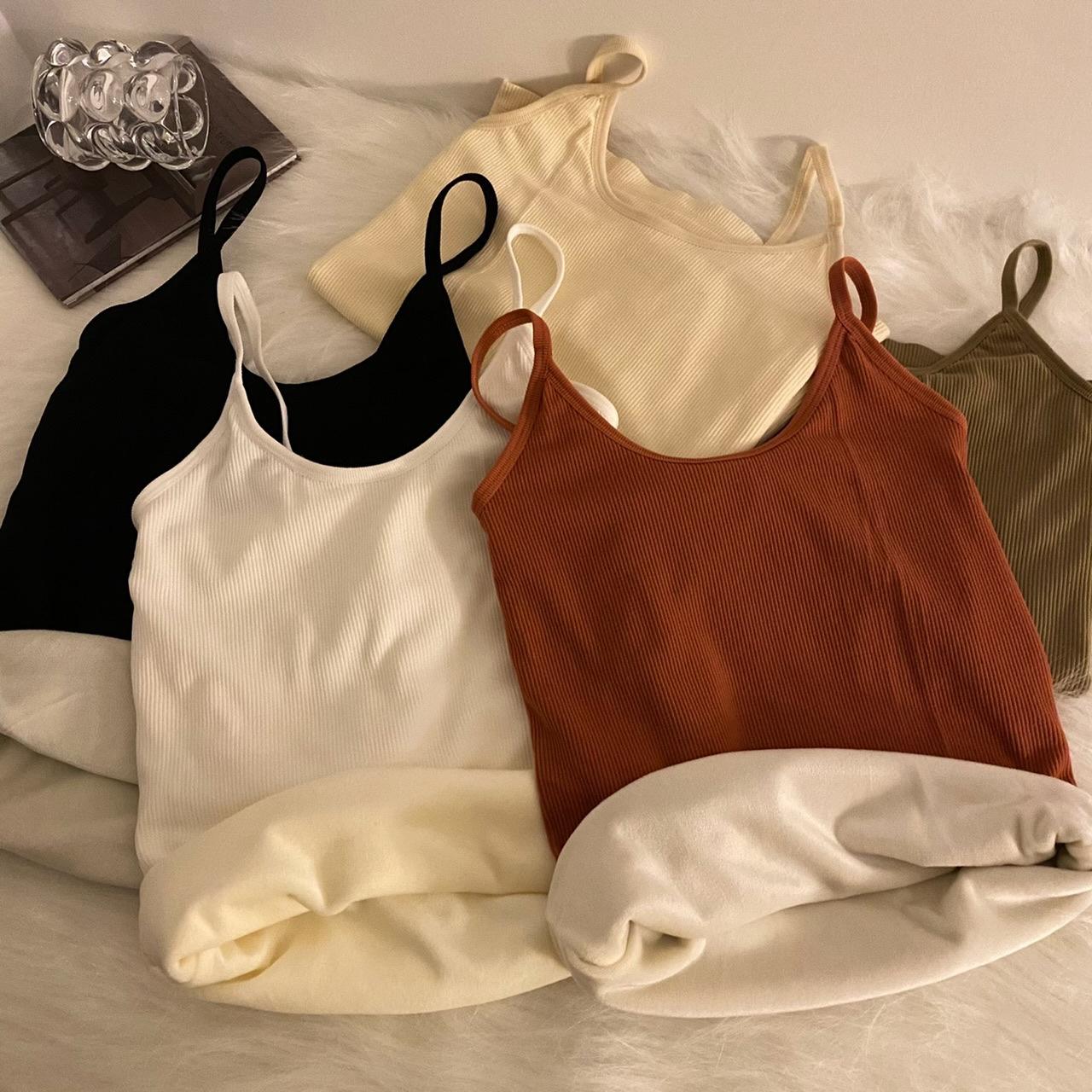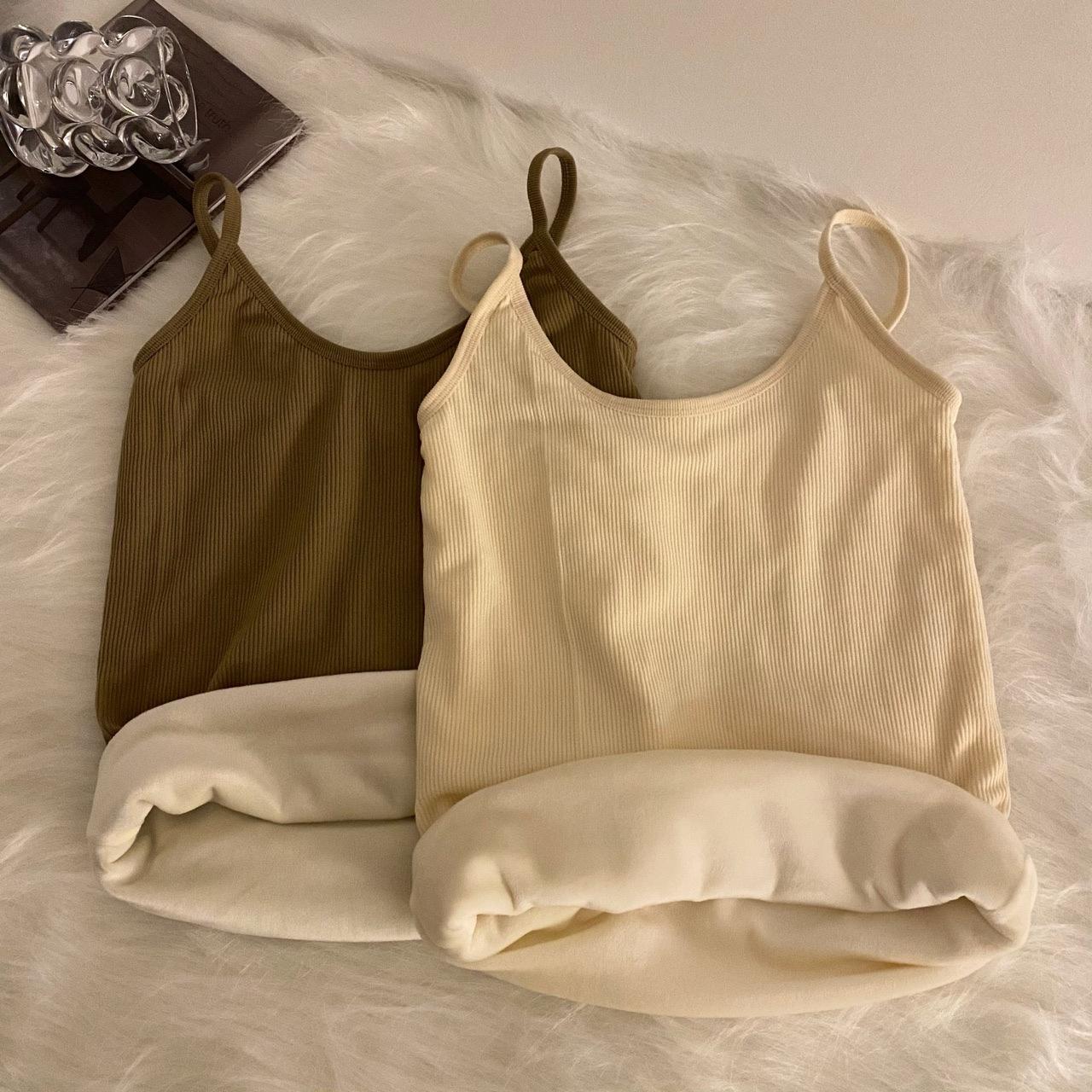 Principios de Otoño e Invierno Nuevo Camisón de Punto Grueso con Forro Polar para Mujer Ropa Interior y Exterior Base Primavera y Otoño Top Camisola Pequeña