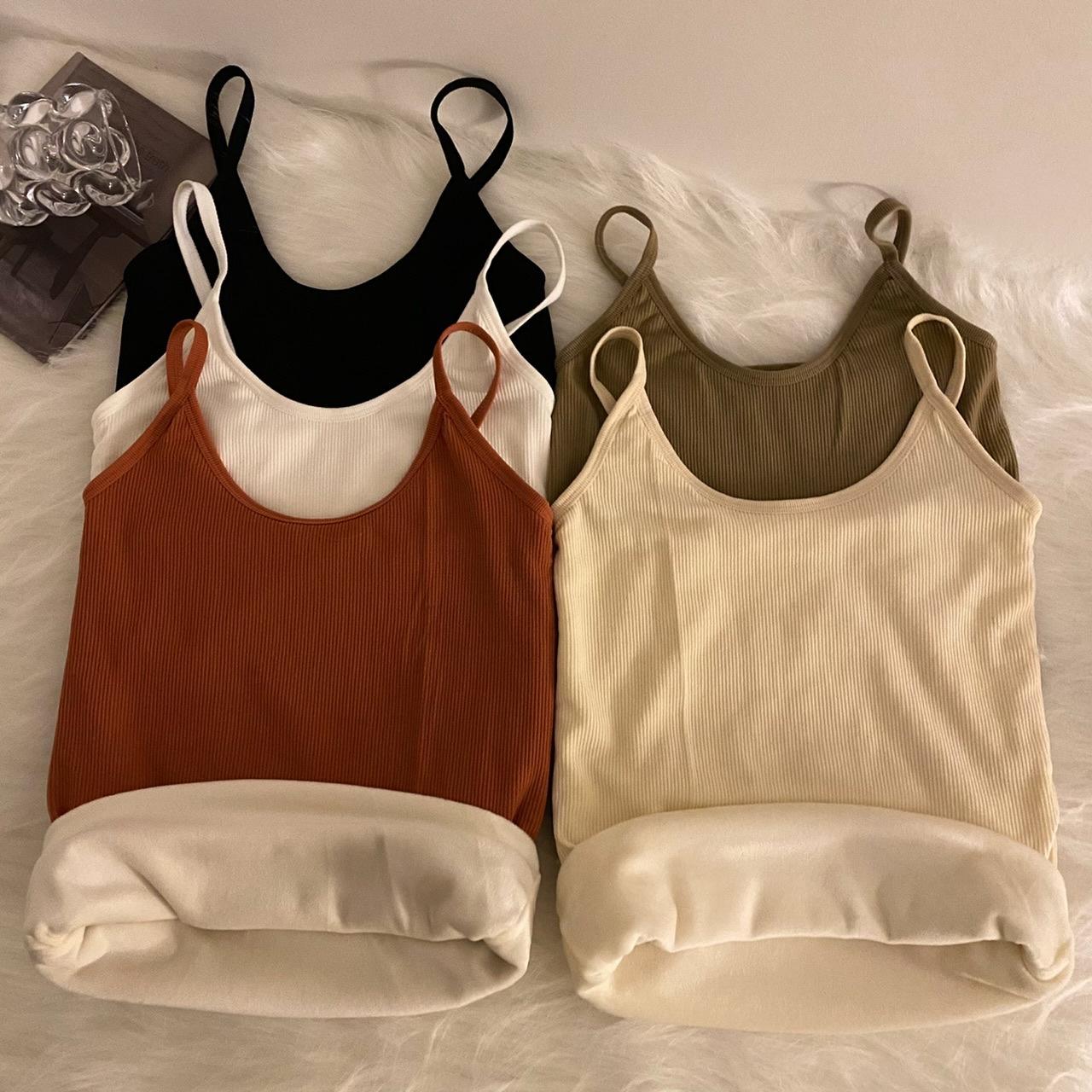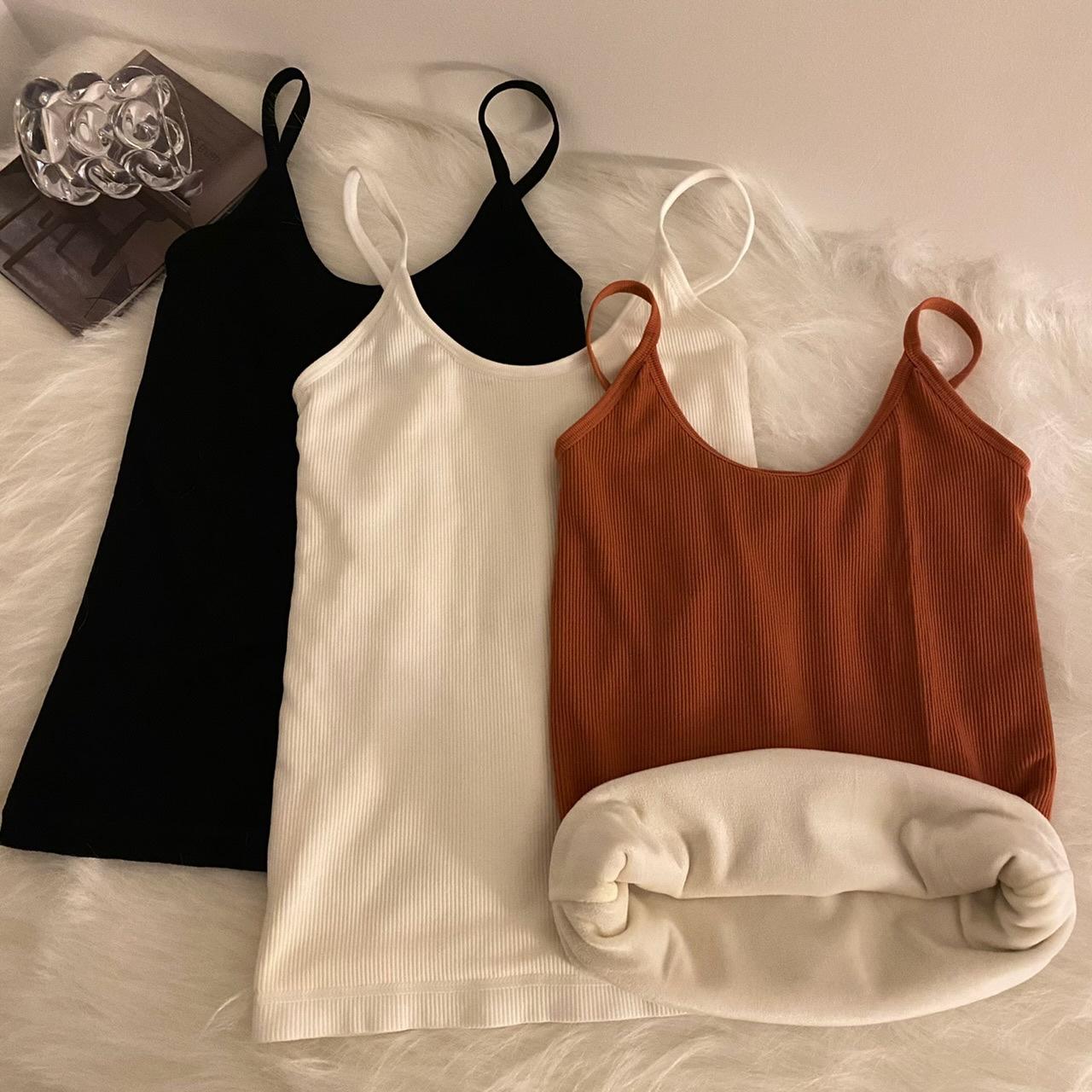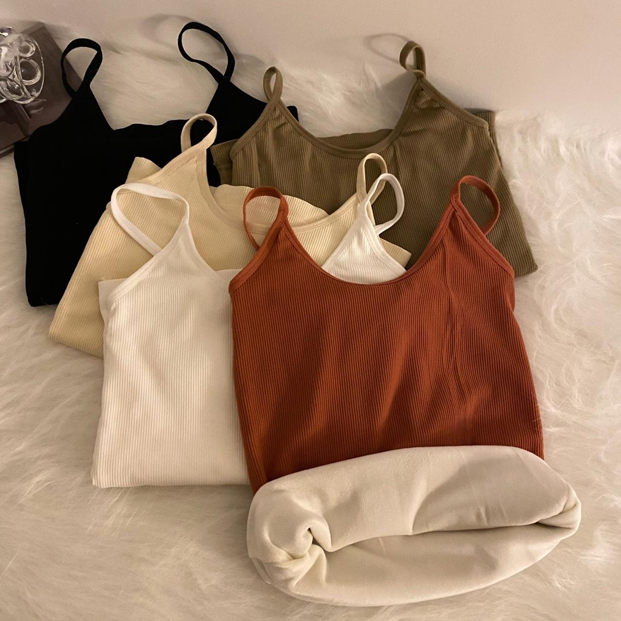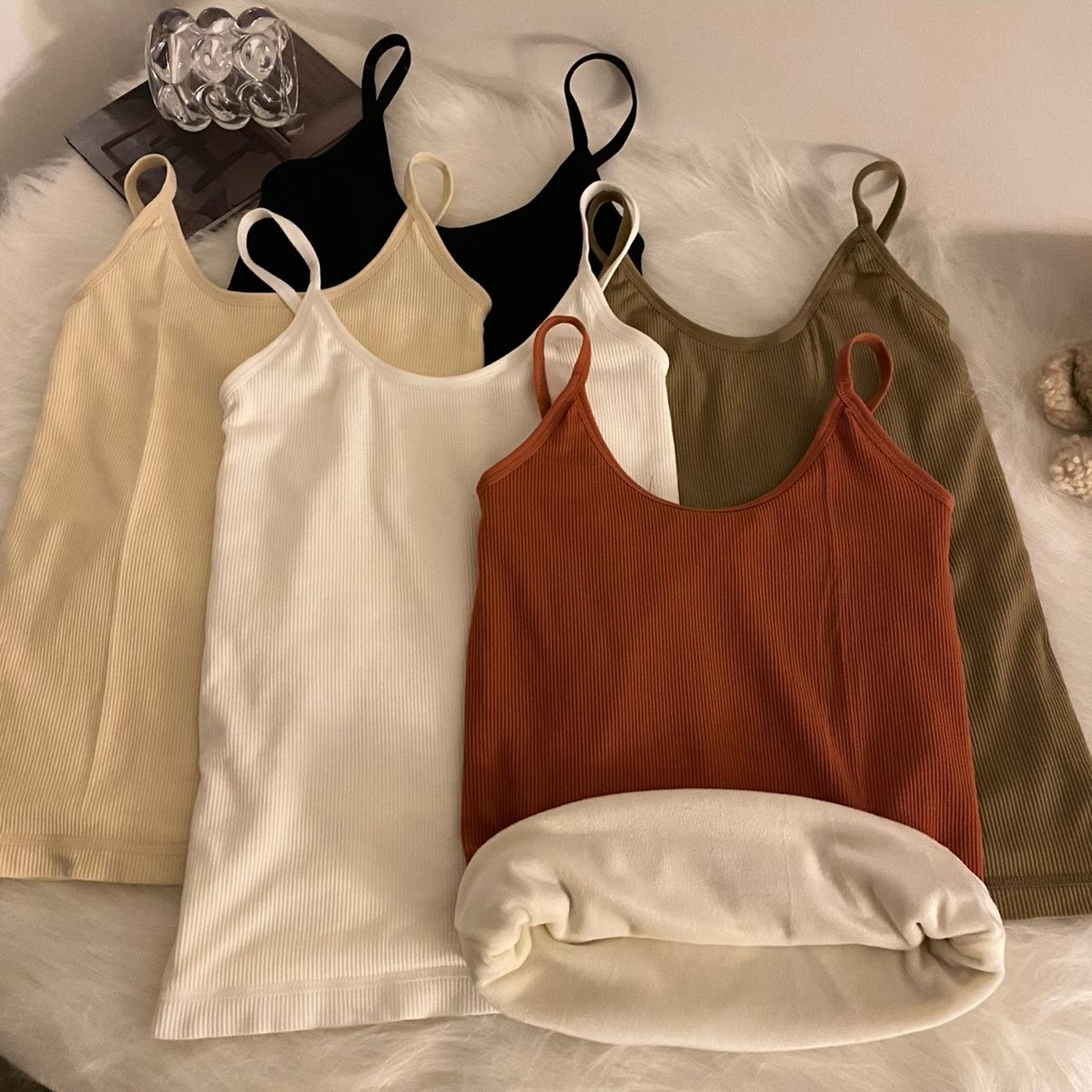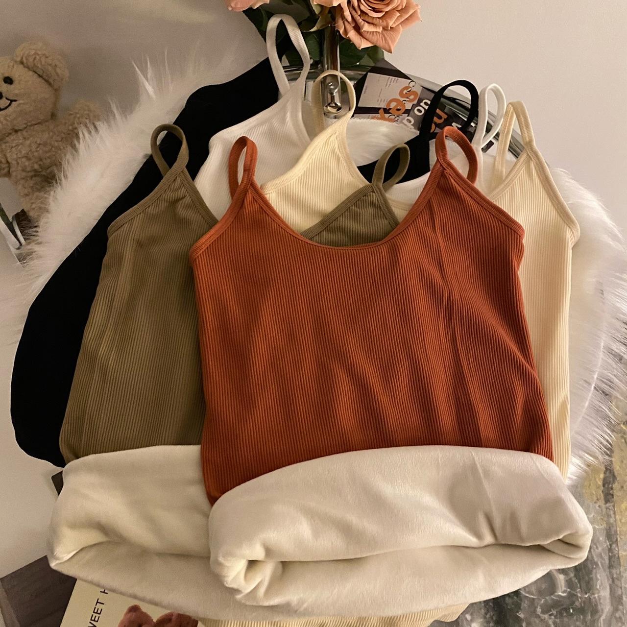 Principios de Otoño e Invierno Nuevo Camisón de Punto Grueso con Forro Polar para Mujer Ropa Interior y Exterior Base Primavera y Otoño Top Camisola Pequeña
