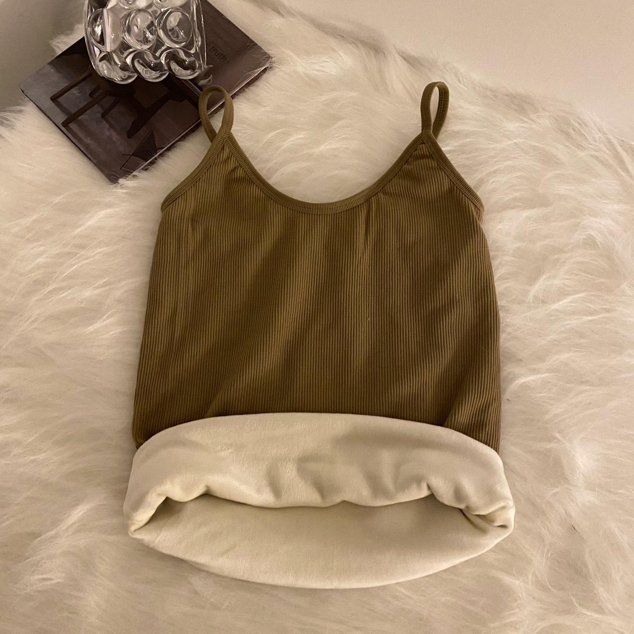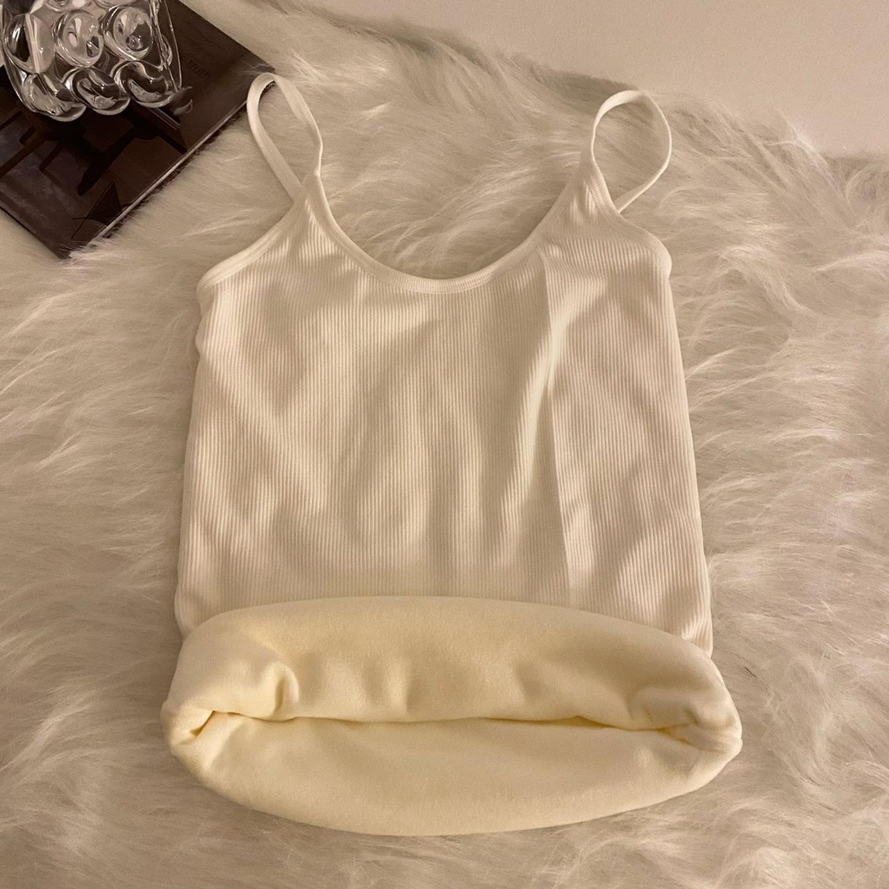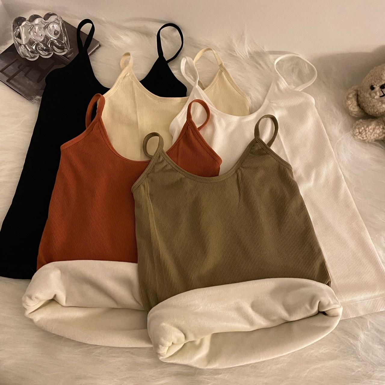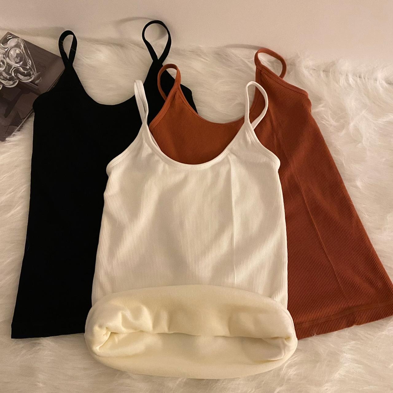Principios de Otoño e Invierno Nuevo Camisón de Punto Grueso con Forro Polar para Mujer Ropa Interior y Exterior Base Primavera y Otoño Top Camisola Pequeña