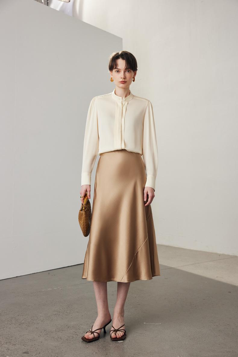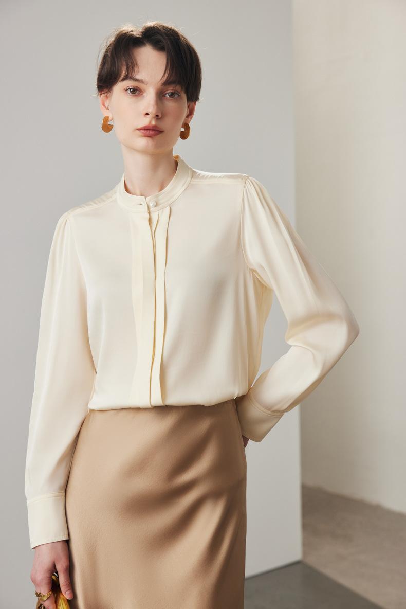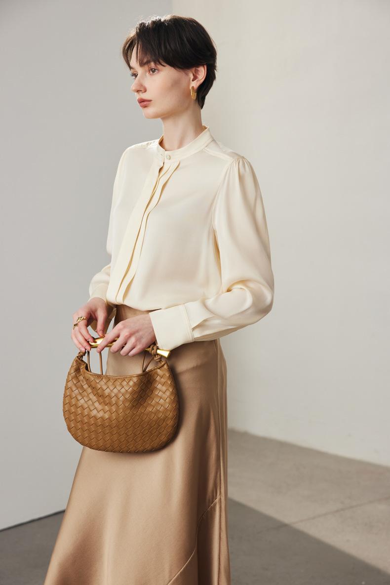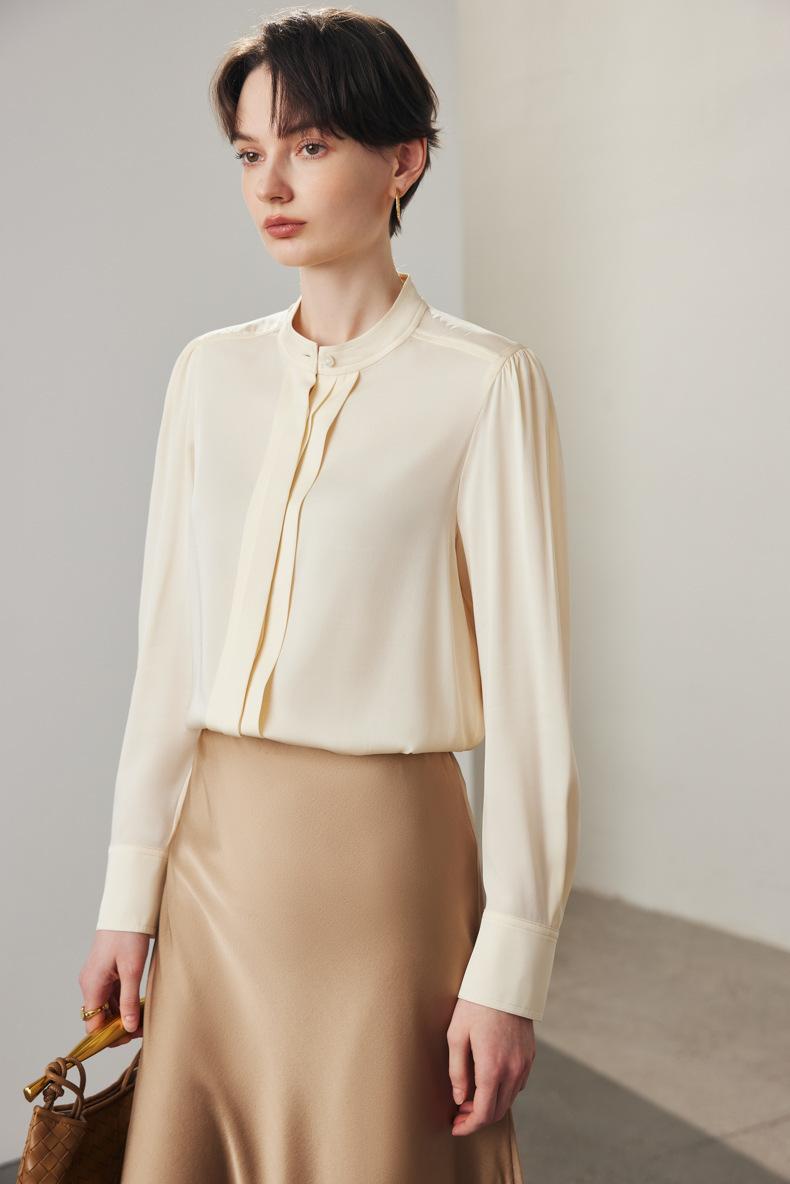 Camisa de Seda para Mujer 2025 Primavera y Verano Nueva Blanca Commuter Manga Larga 19 Mm Stretch Doble Joe Seda de Morera Camisa