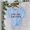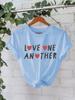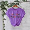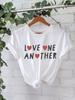 Camiseta casual europea y americana de algodón puro LOVE ONE ANOTHER, camiseta de verano con cuello redondo y manga corta en stock para mujer