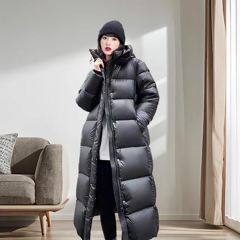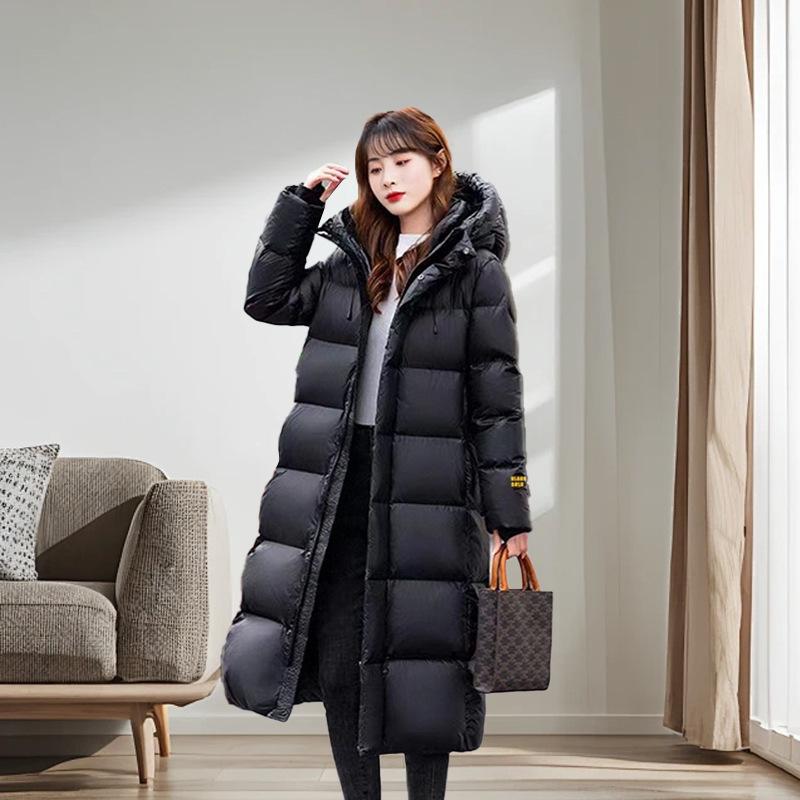 Chaqueta de plumón de ganso para mujer, Abrigo de invierno para mujer de alta gama en negro y dorado, Chaqueta de plumón Pinghu con capucha de estilo largo y nuevo Hd