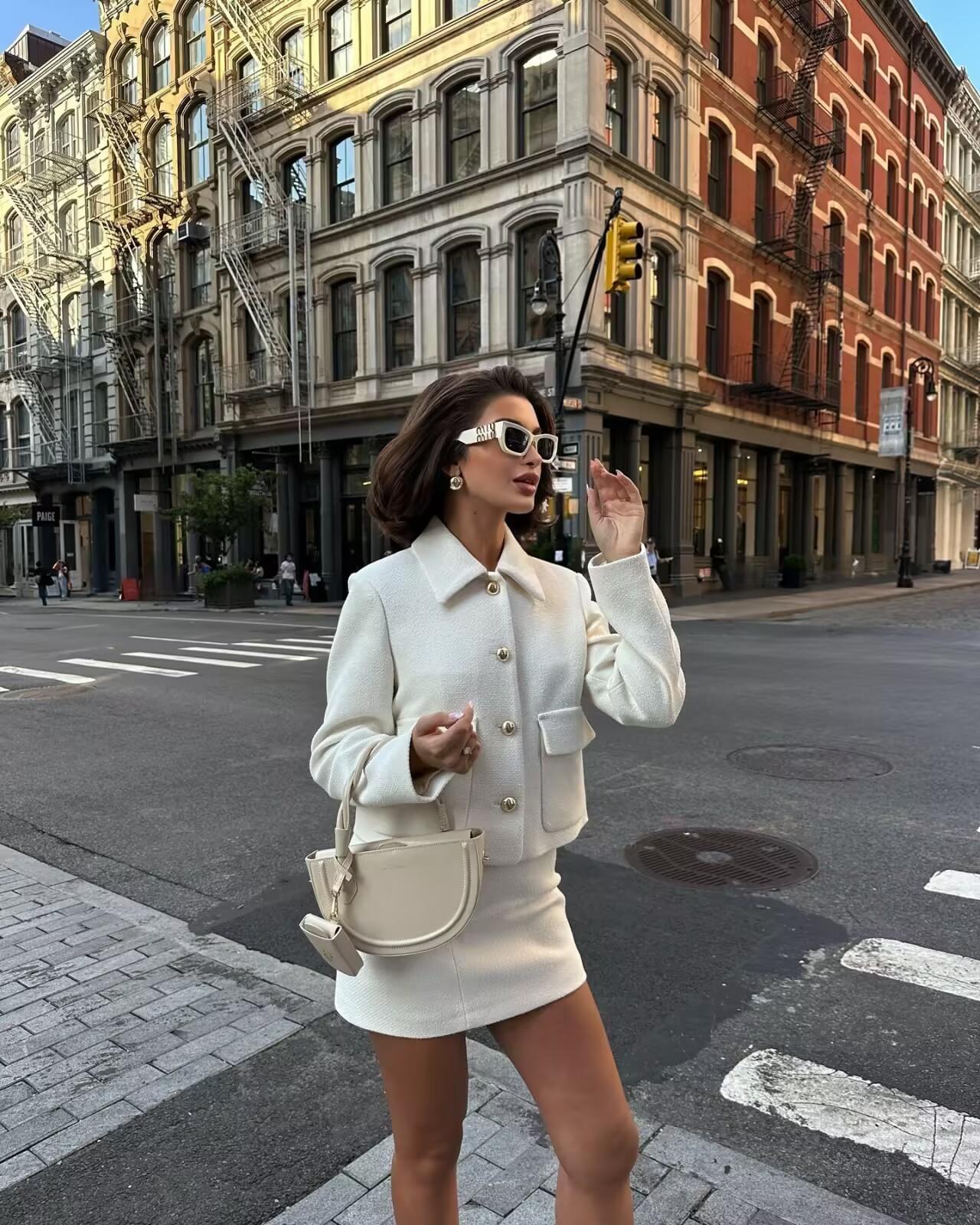 Chaqueta de manga larga de color liso de Chanel, de estilo transfronterizo europeo y americano, nueva primavera y otoño 2025, A14091