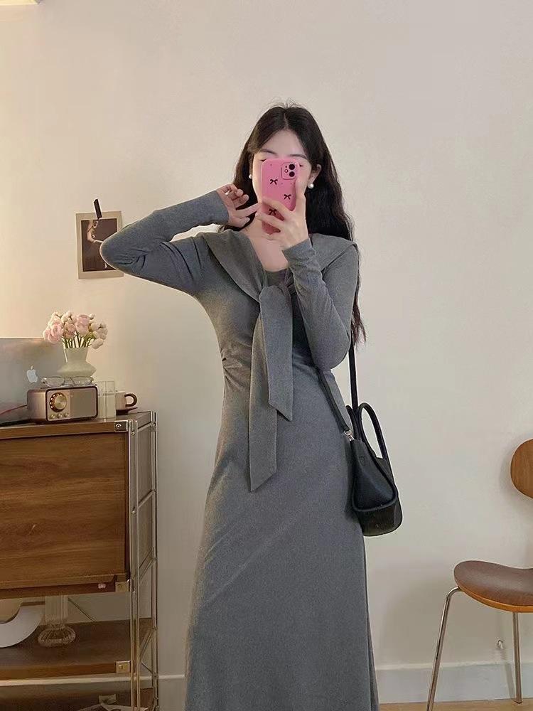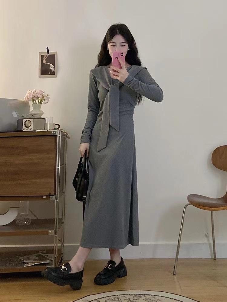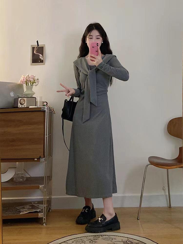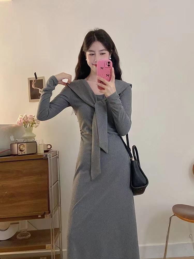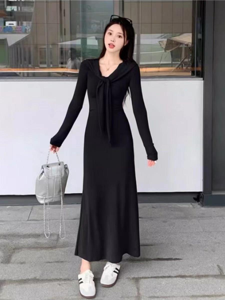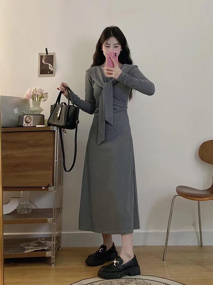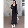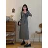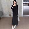 Vestido elegante de terciopelo francés de cintura alta y adelgazante con nuevo diseño de nicho de principios de otoño de 2024.
