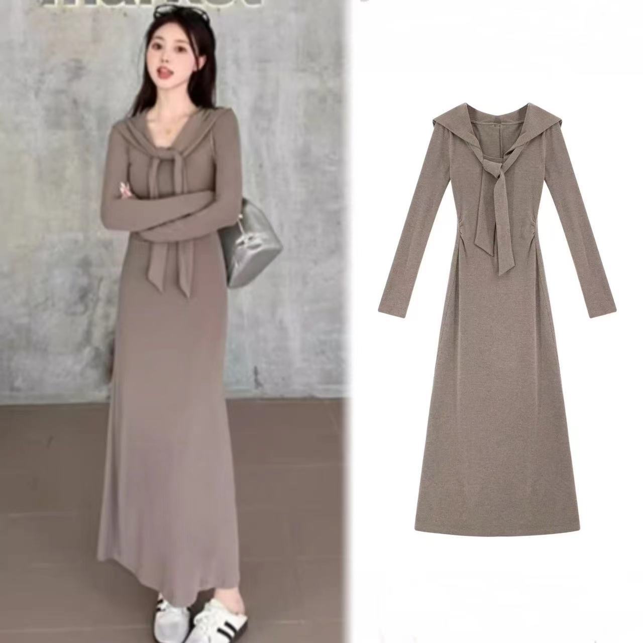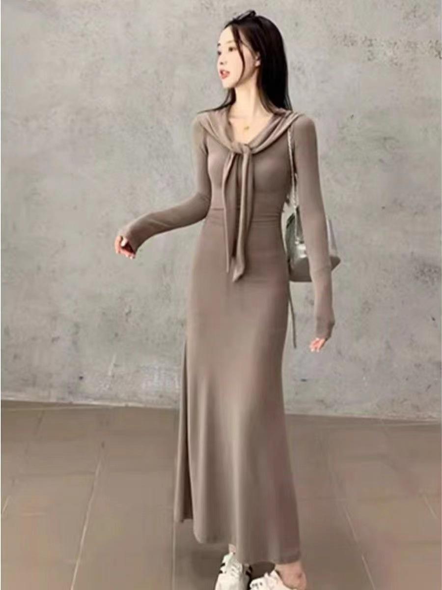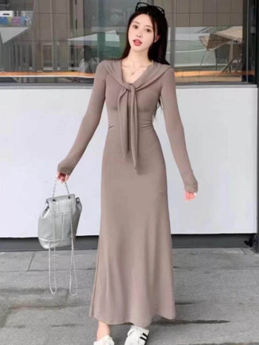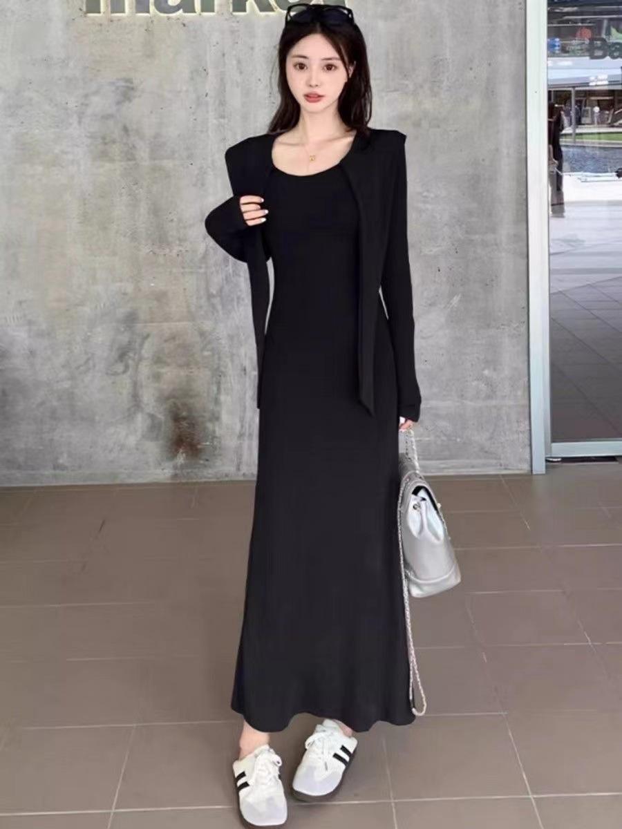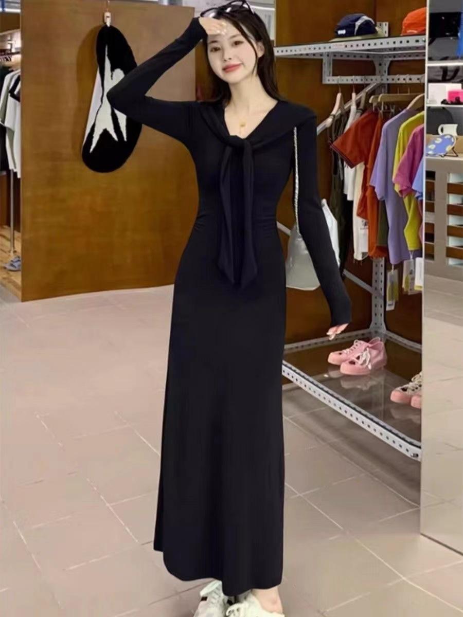Vestido elegante de terciopelo francés de cintura alta y adelgazante con nuevo diseño de nicho de principios de otoño de 2024.