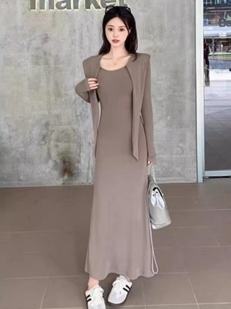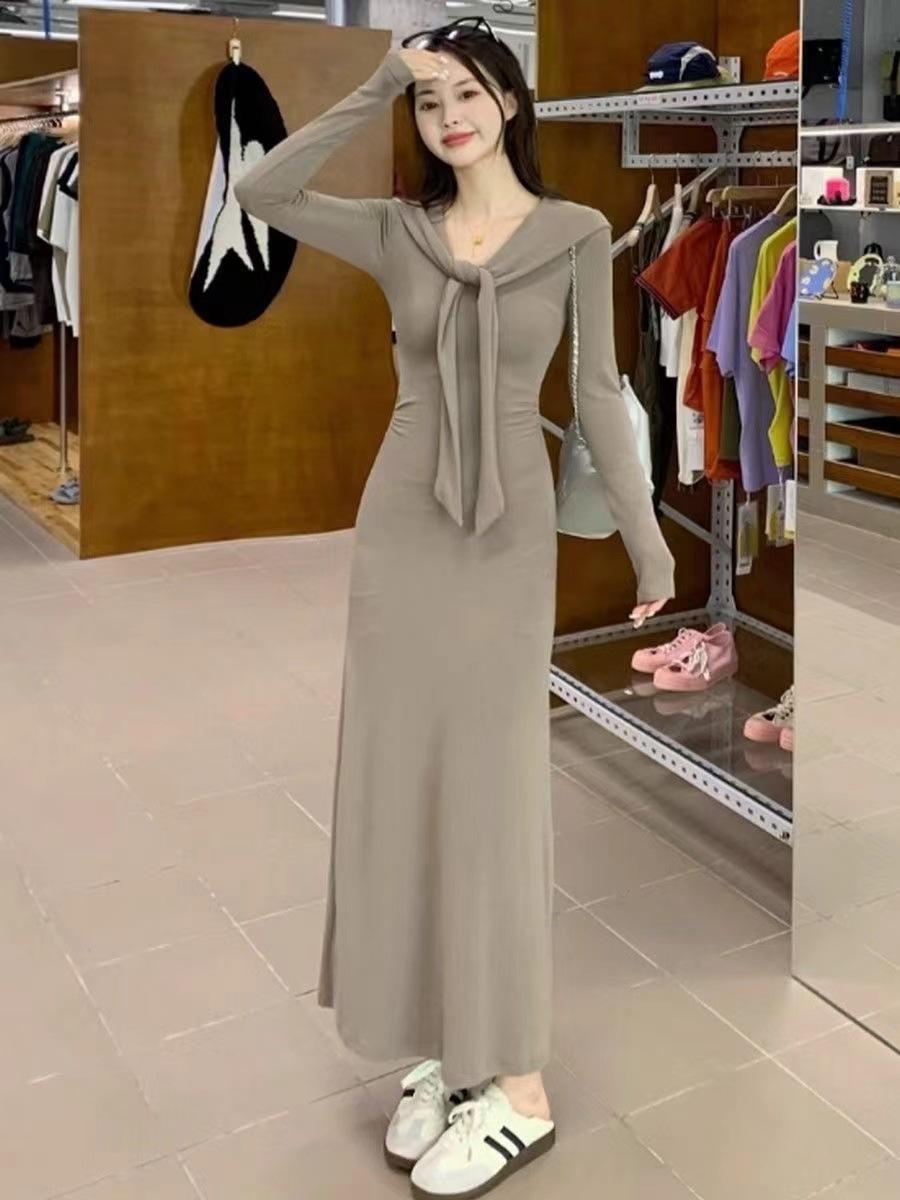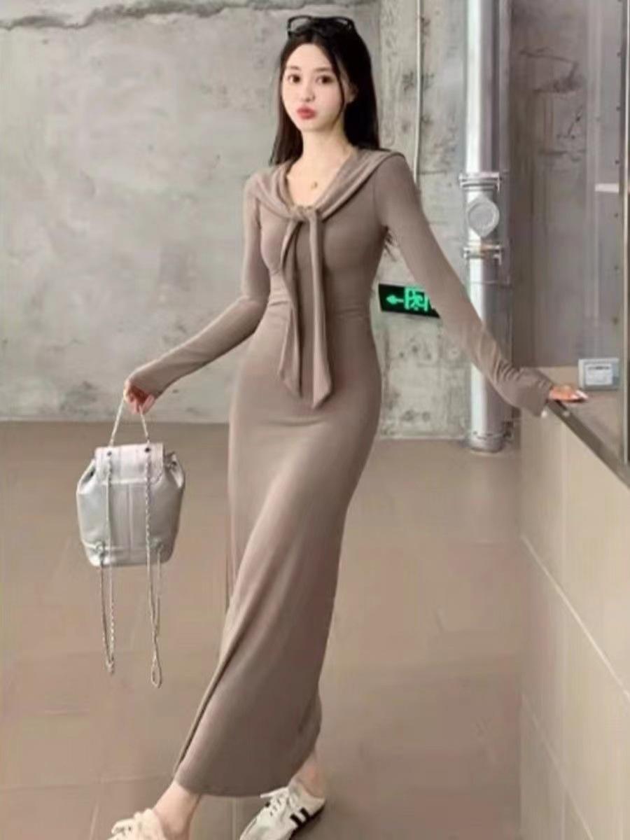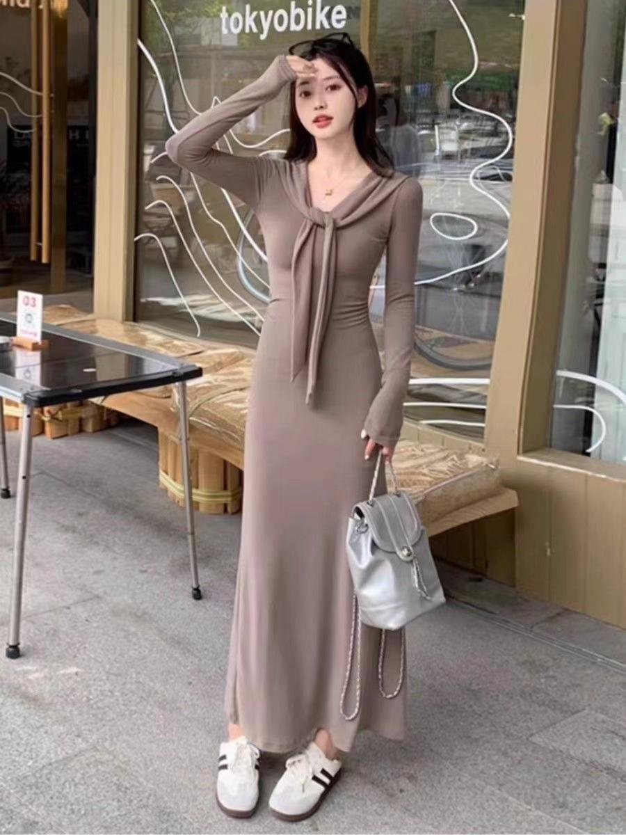 Vestido elegante de terciopelo francés de cintura alta y adelgazante con nuevo diseño de nicho de principios de otoño de 2024.