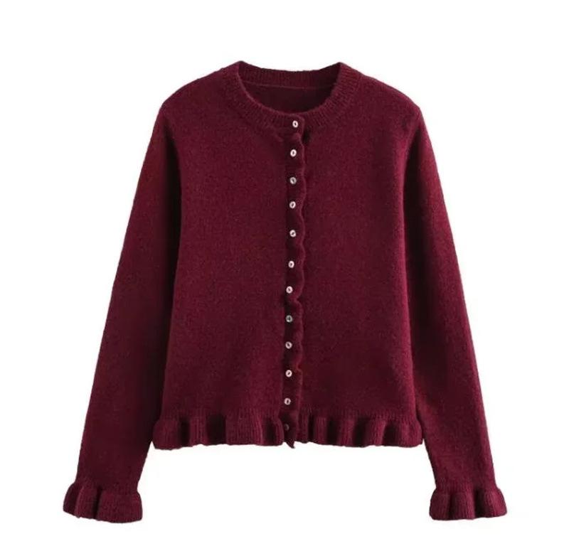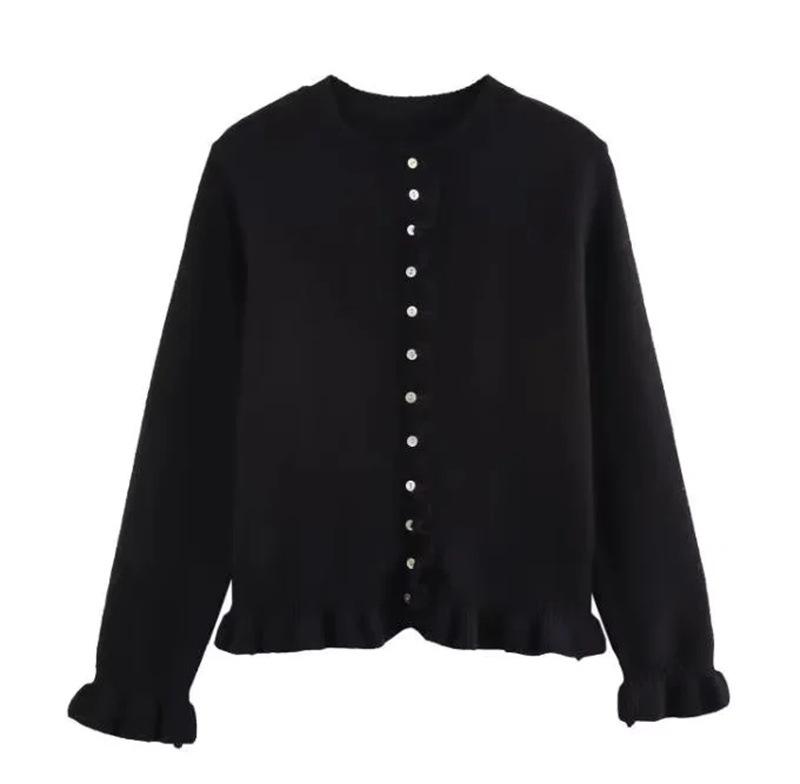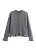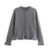 Chaqueta de punto decorativa laminada, sencilla, combinable, estilo europeo y americano, primavera 2025 (2756114)