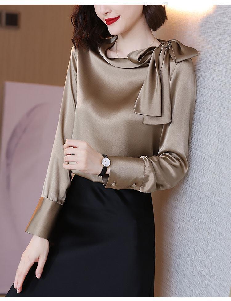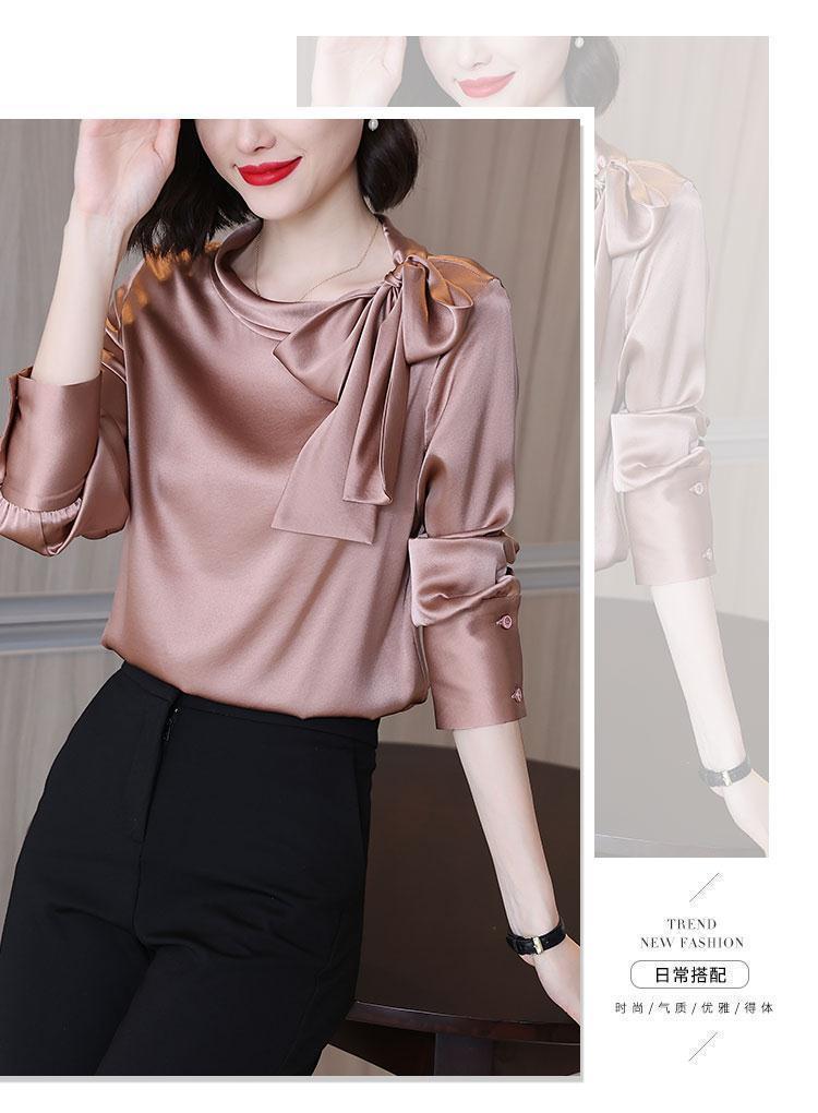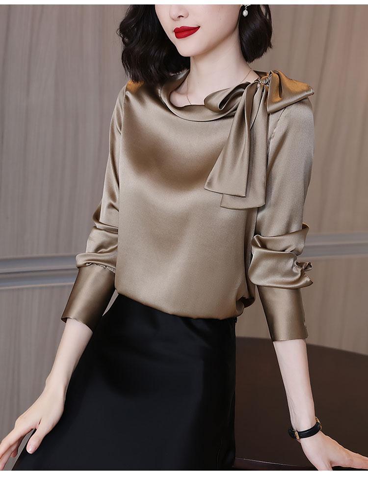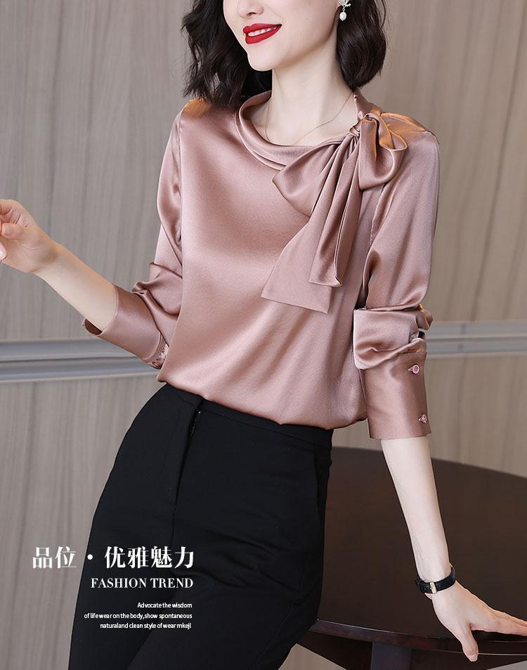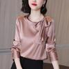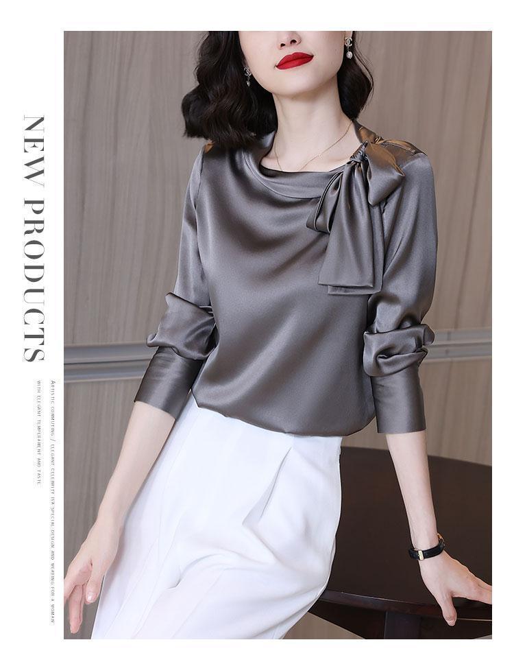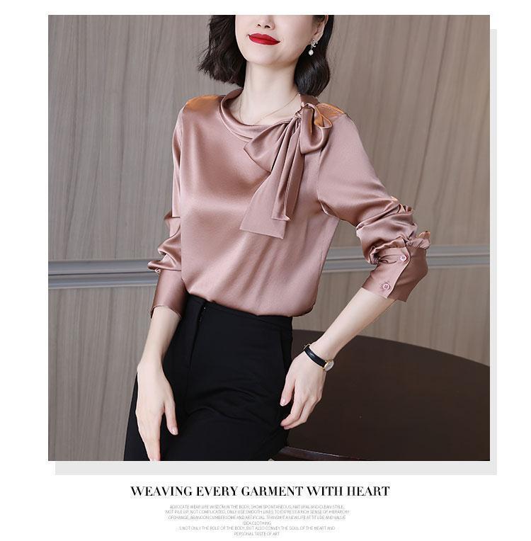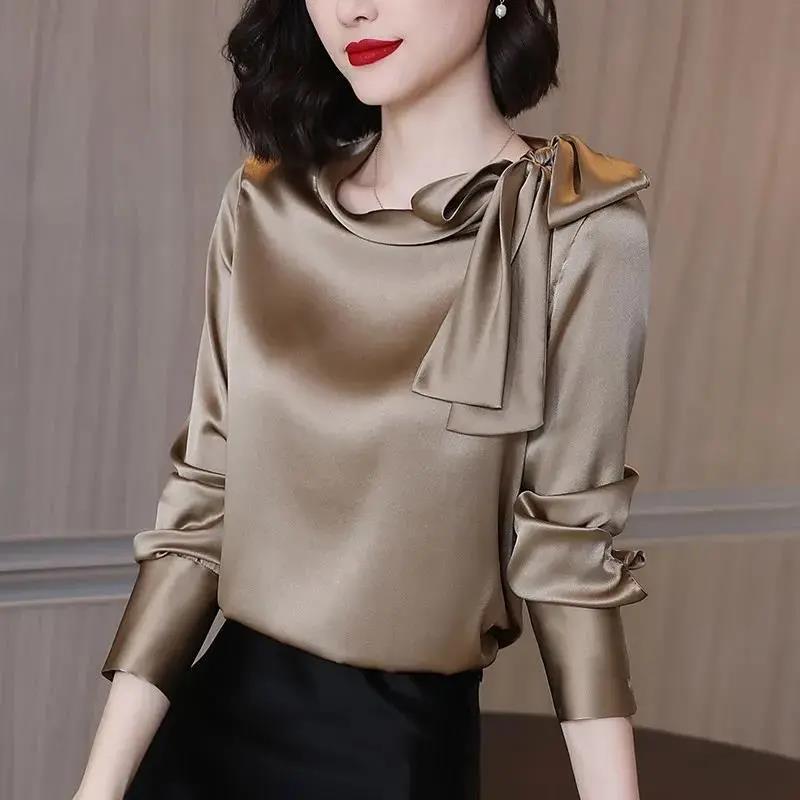 Camisa de satén de alta gama de otoño para mujer, diseño Sense Niche, blusa con lazo, camisa de manga larga para mujer, base