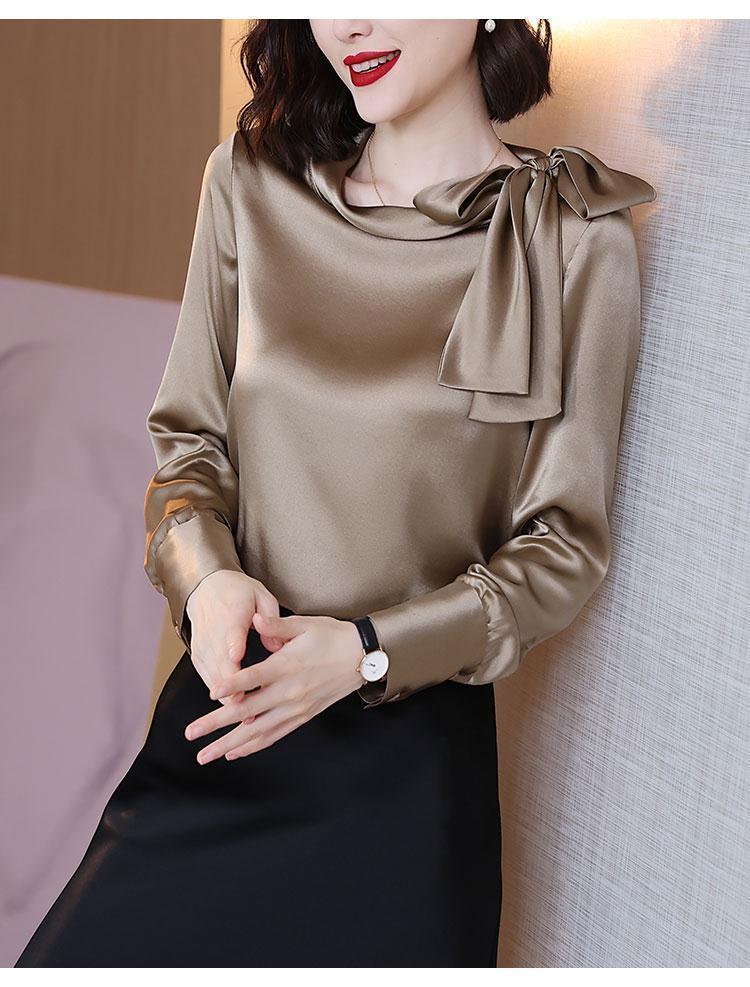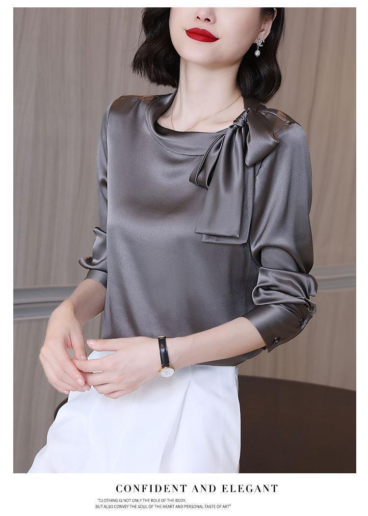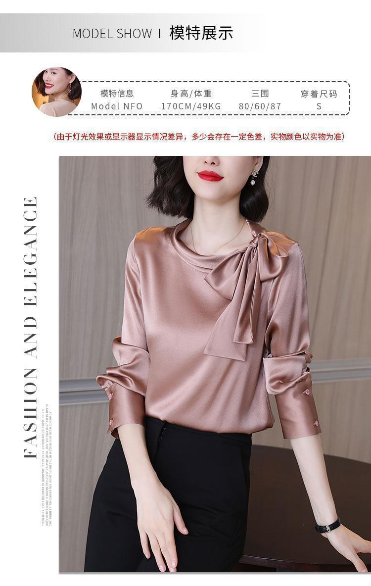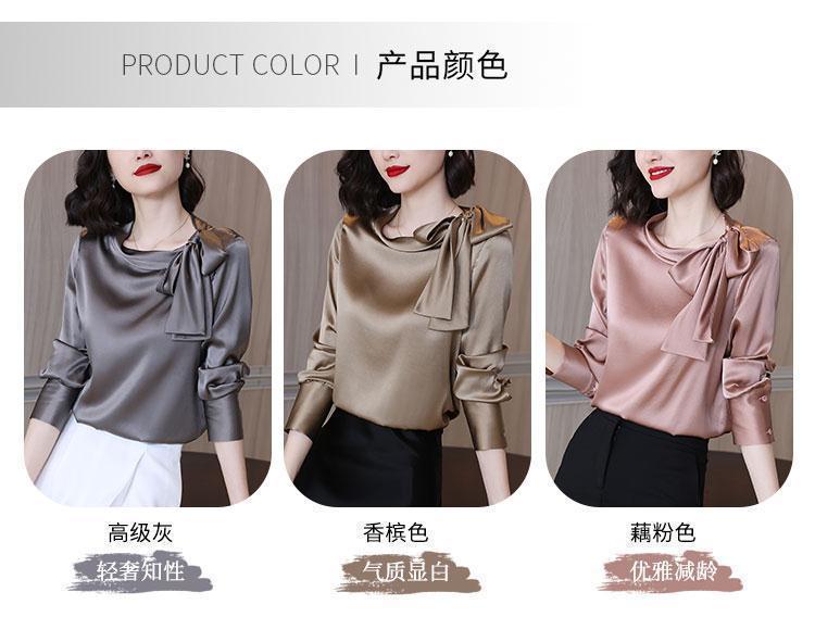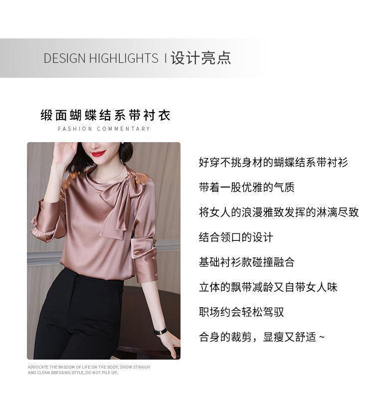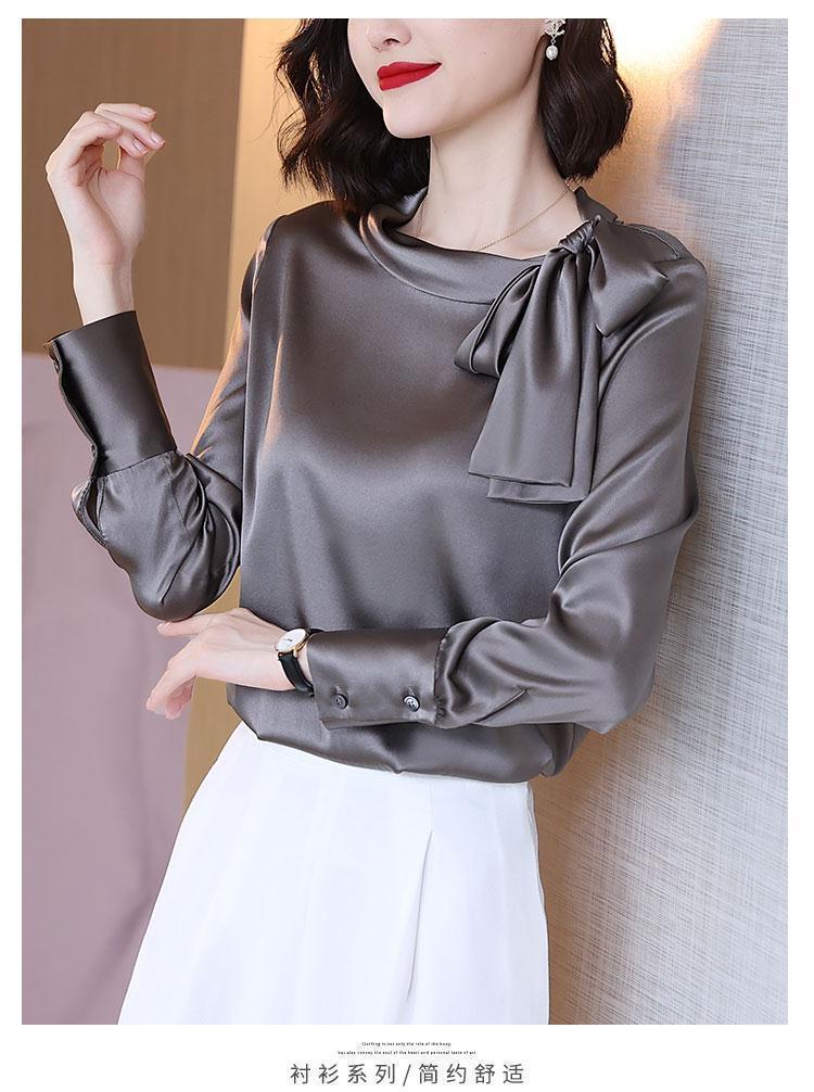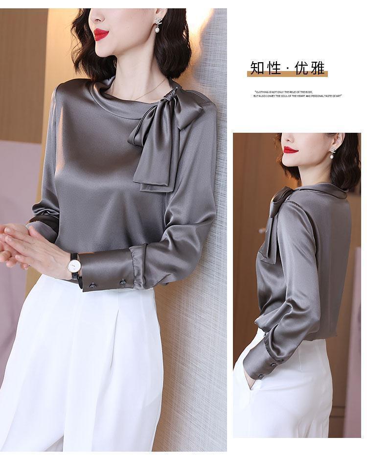Camisa de satén de alta gama de otoño para mujer, diseño Sense Niche, blusa con lazo, camisa de manga larga para mujer, base