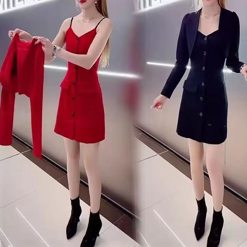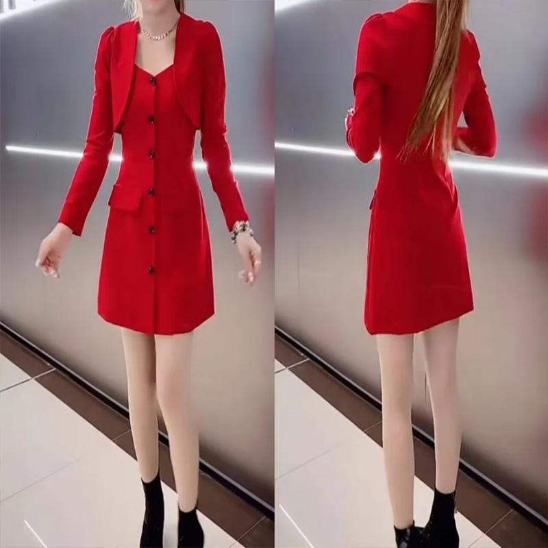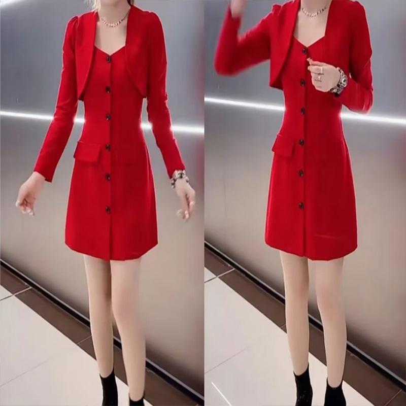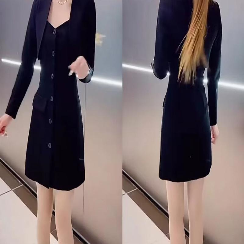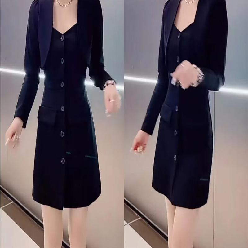 Nuevo abrigo corto de dos piezas estilo Chanel pequeño con falda lencero para niña pequeña, ajustado, adelgazante, de moda.