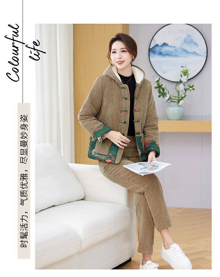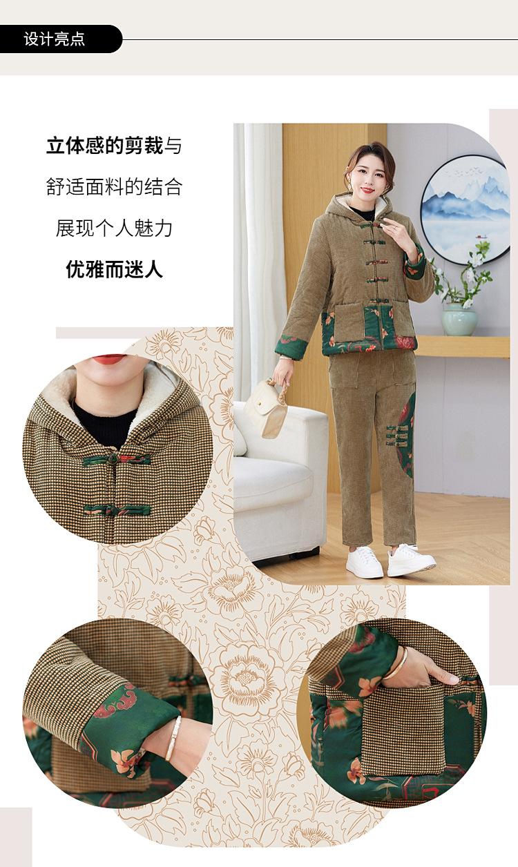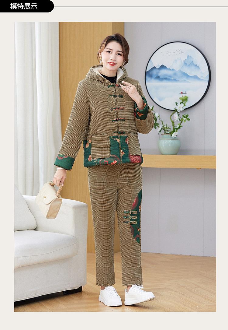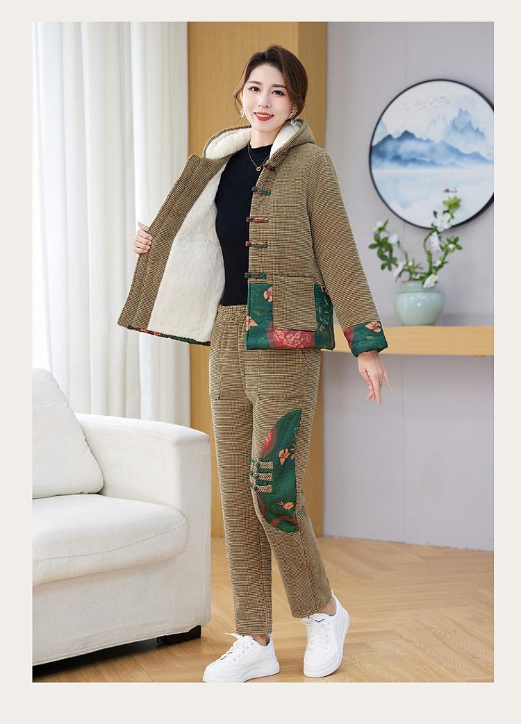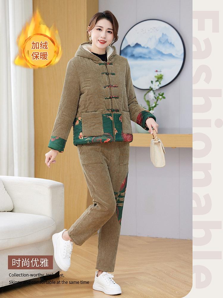 Chaqueta acolchada de algodón de invierno para madre de mediana edad, pantalones acolchados de algodón, traje de dos piezas con forro polar, chaqueta acolchada de algodón para mujer de mediana edad y anciana, chaqueta acolchada de algodón de otoño e invierno