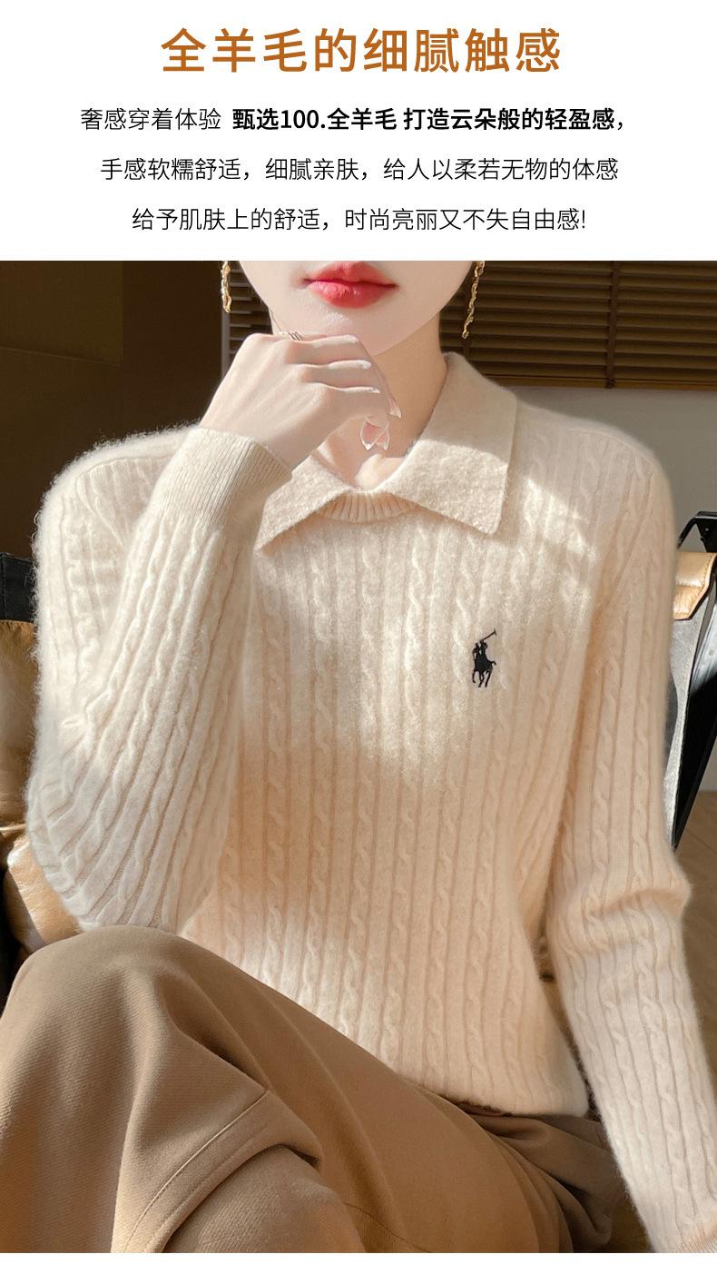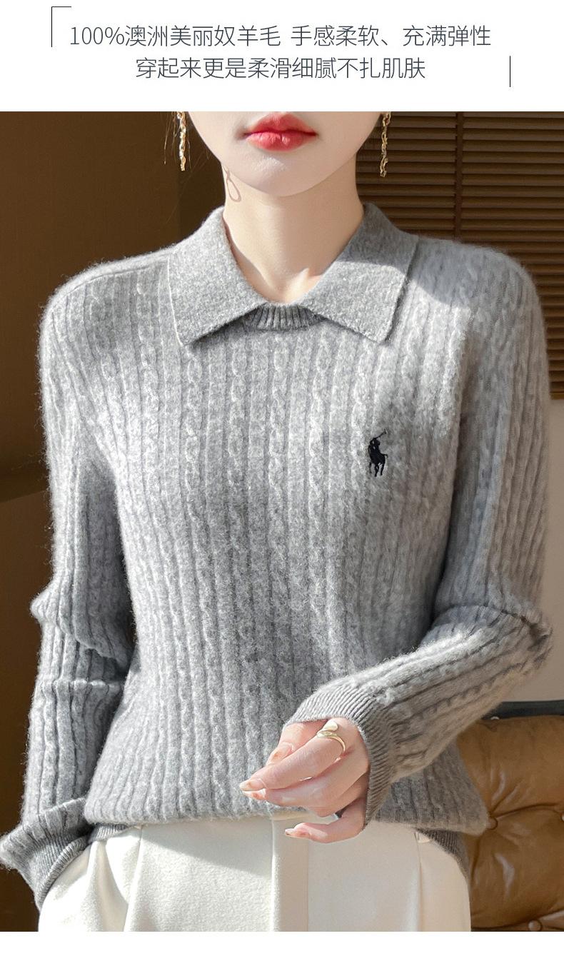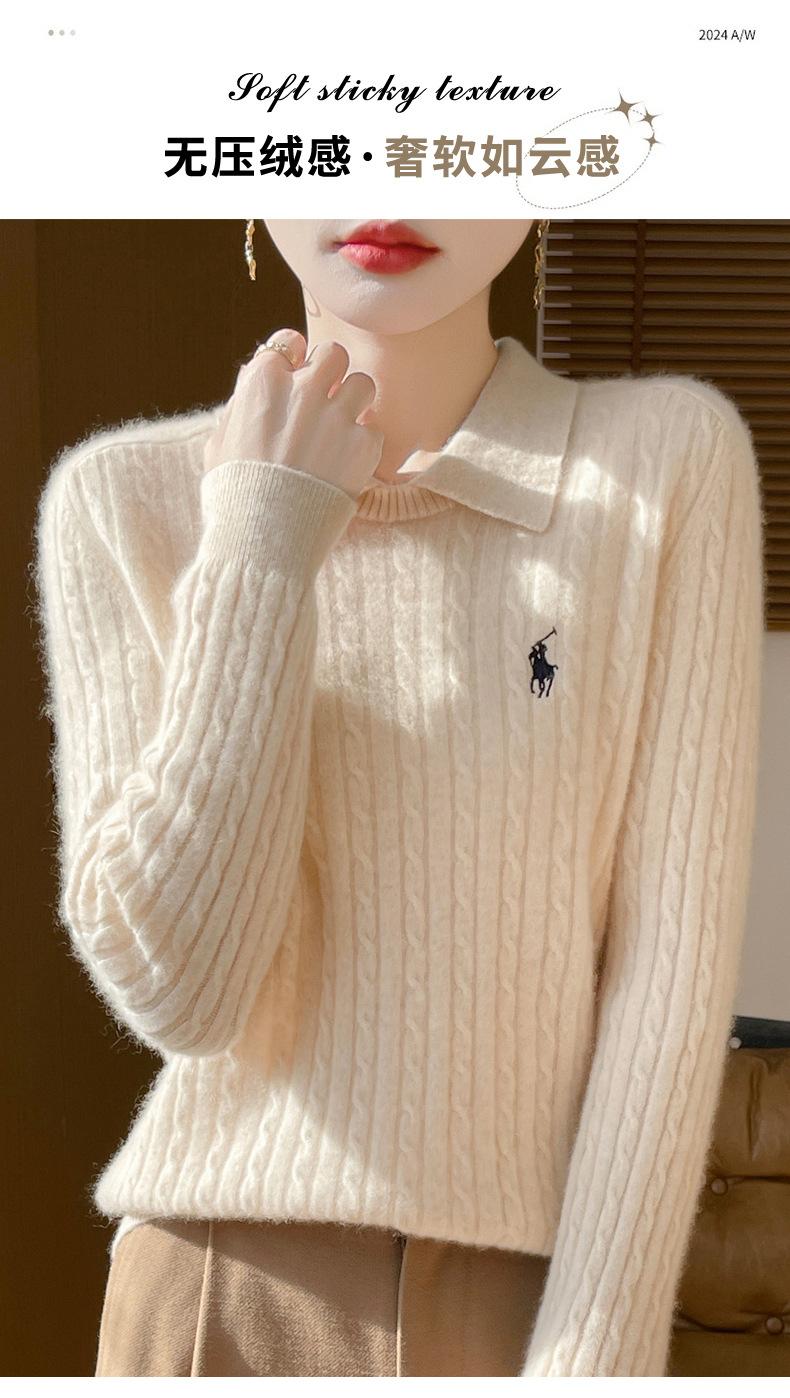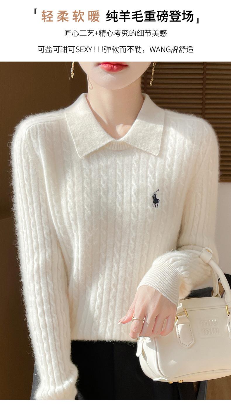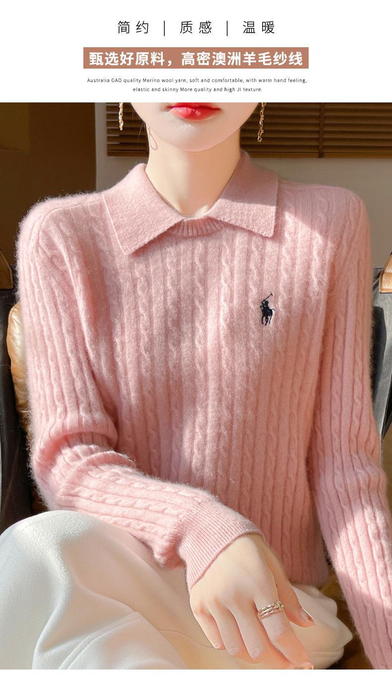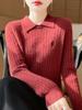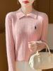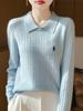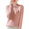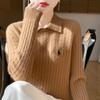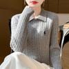 Suéter de punto suelto informal de dos piezas con cuello polo bordado de lana 100 % pura para mujer, primavera y otoño