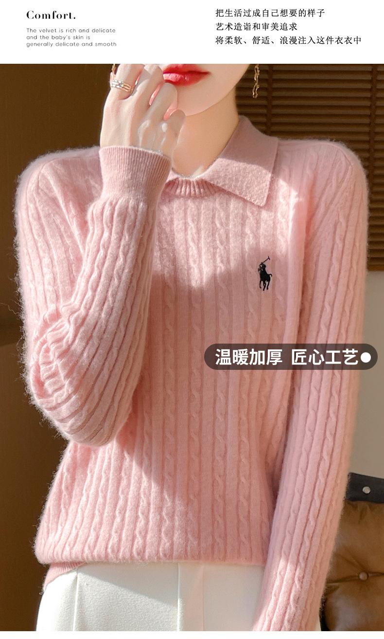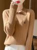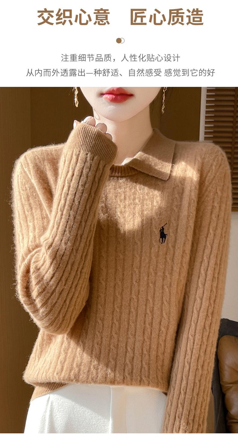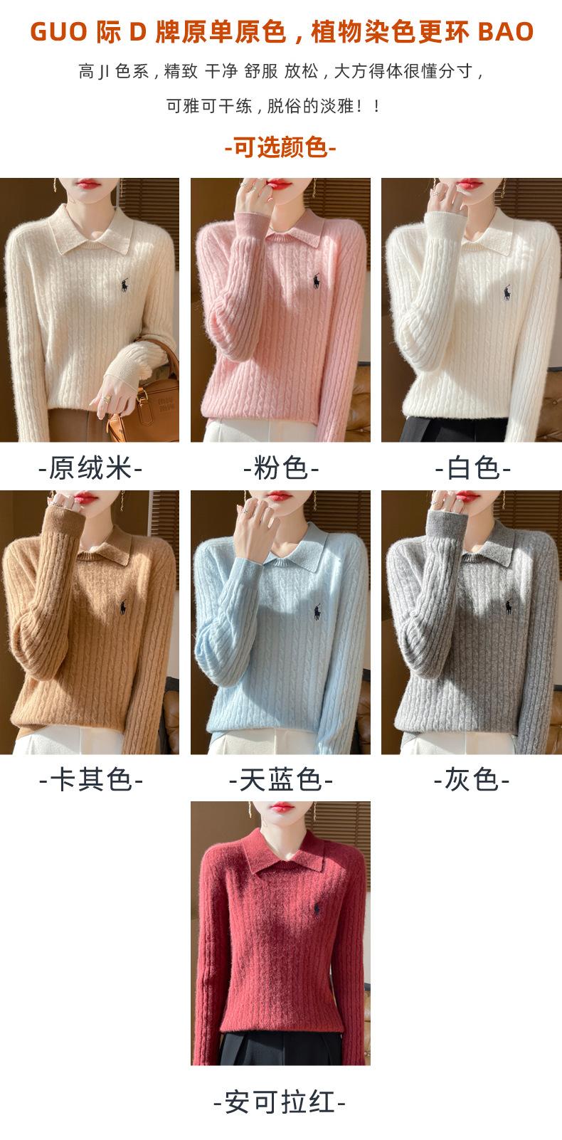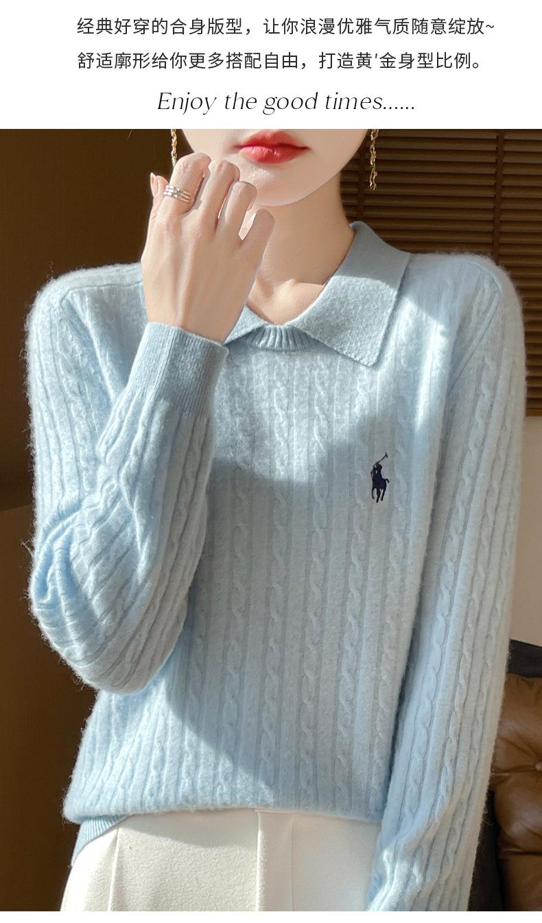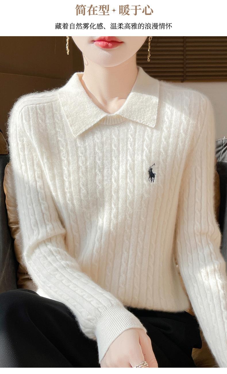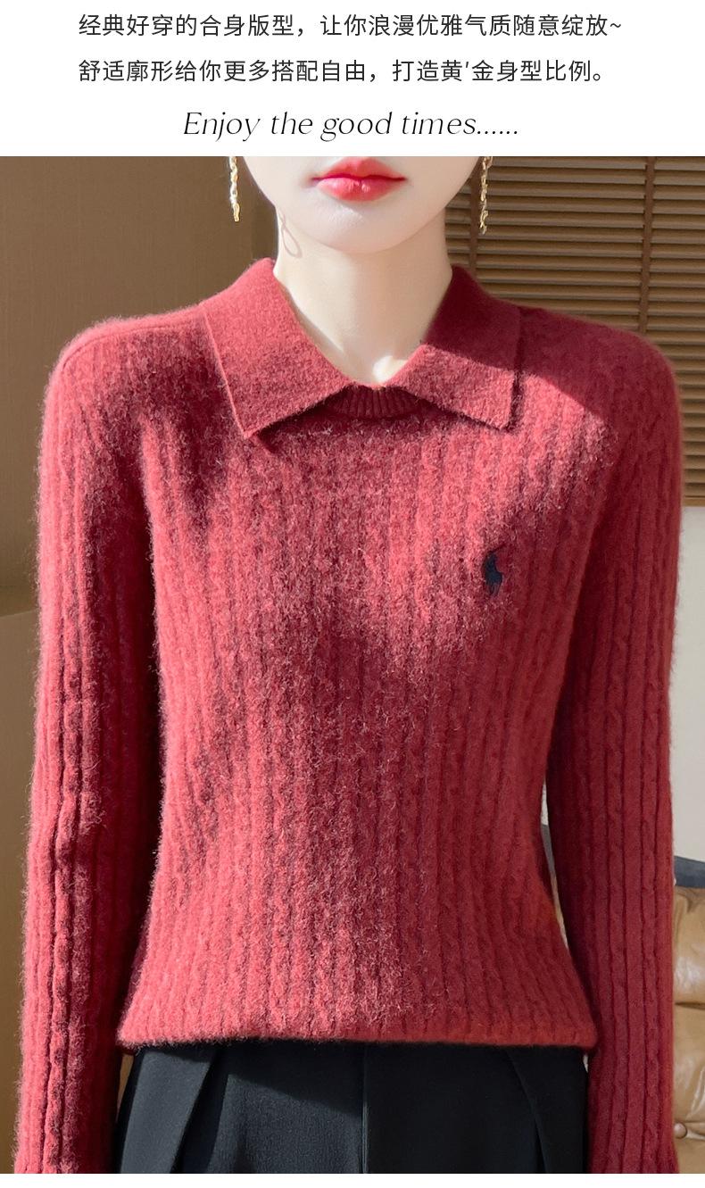 Suéter de punto suelto informal de dos piezas con cuello polo bordado de lana 100 % pura para mujer, primavera y otoño