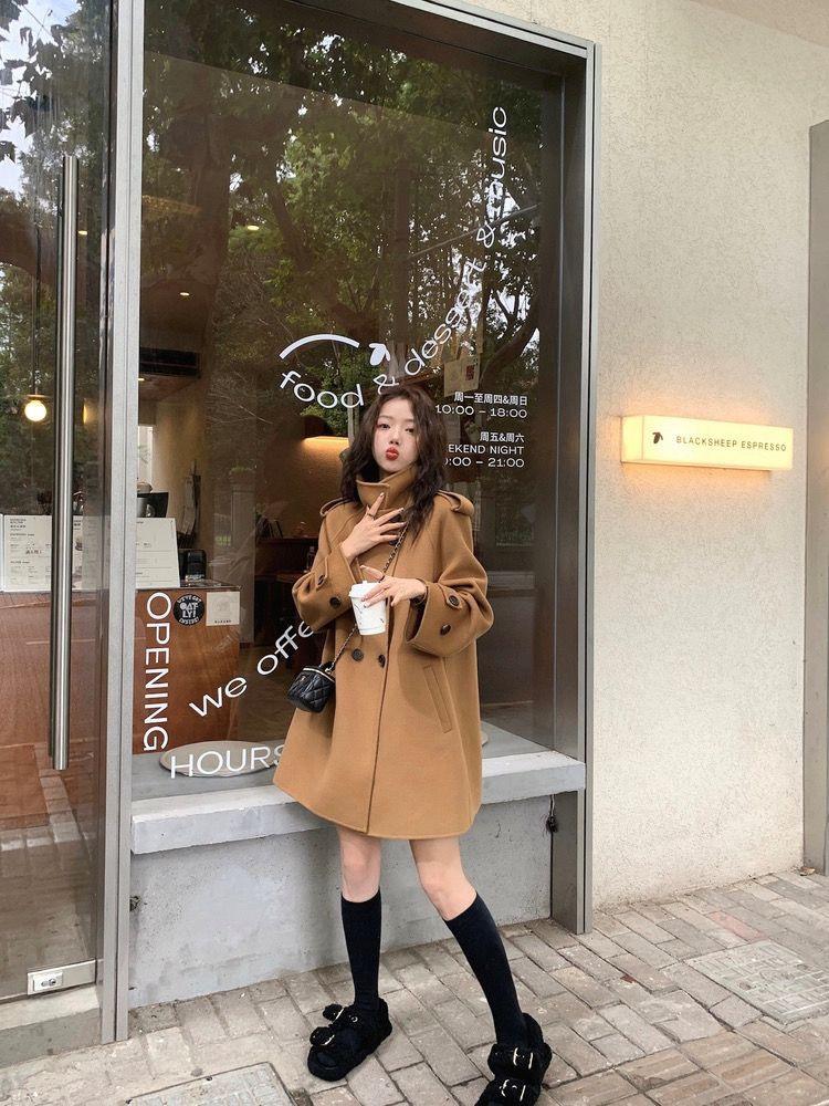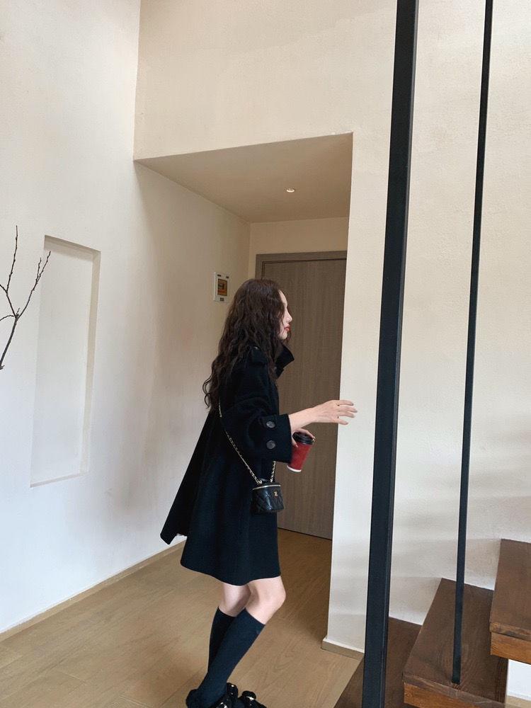 Abrigo de Lana tipo Capa para Mujer, Otoño e Invierno 2025, Petite, Estilo Hepburn Holgado, Estilo Coreano, Abrigo de Lana Grueso, Trendy