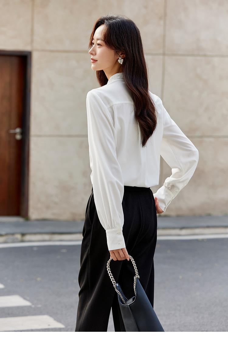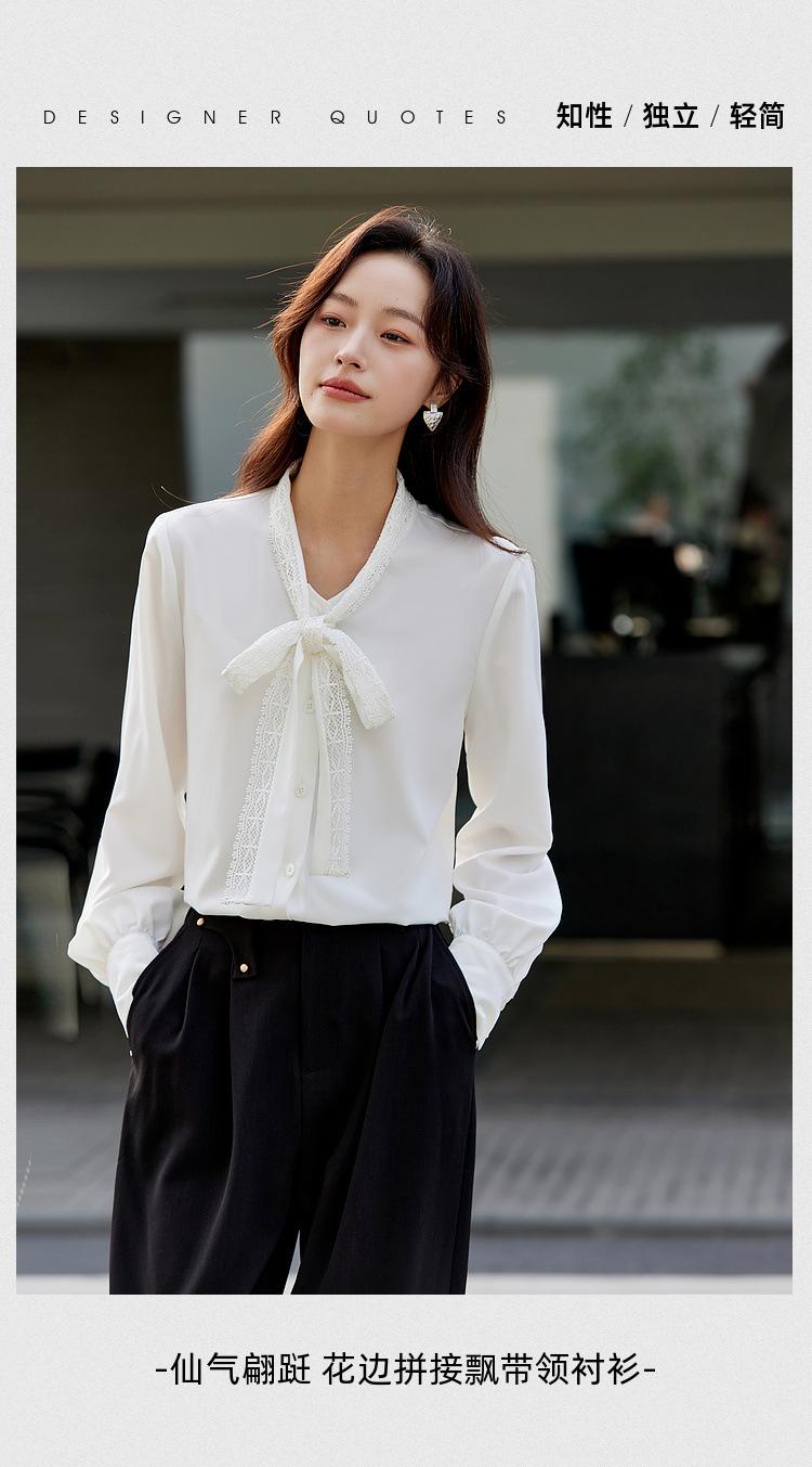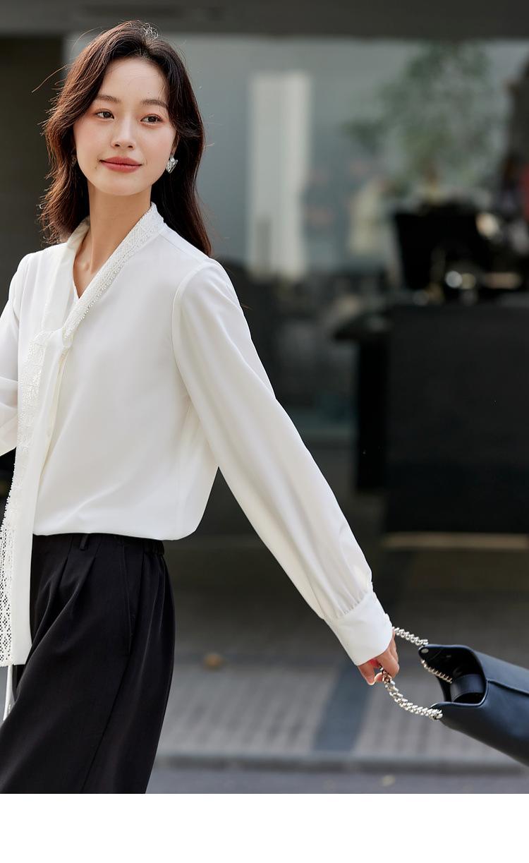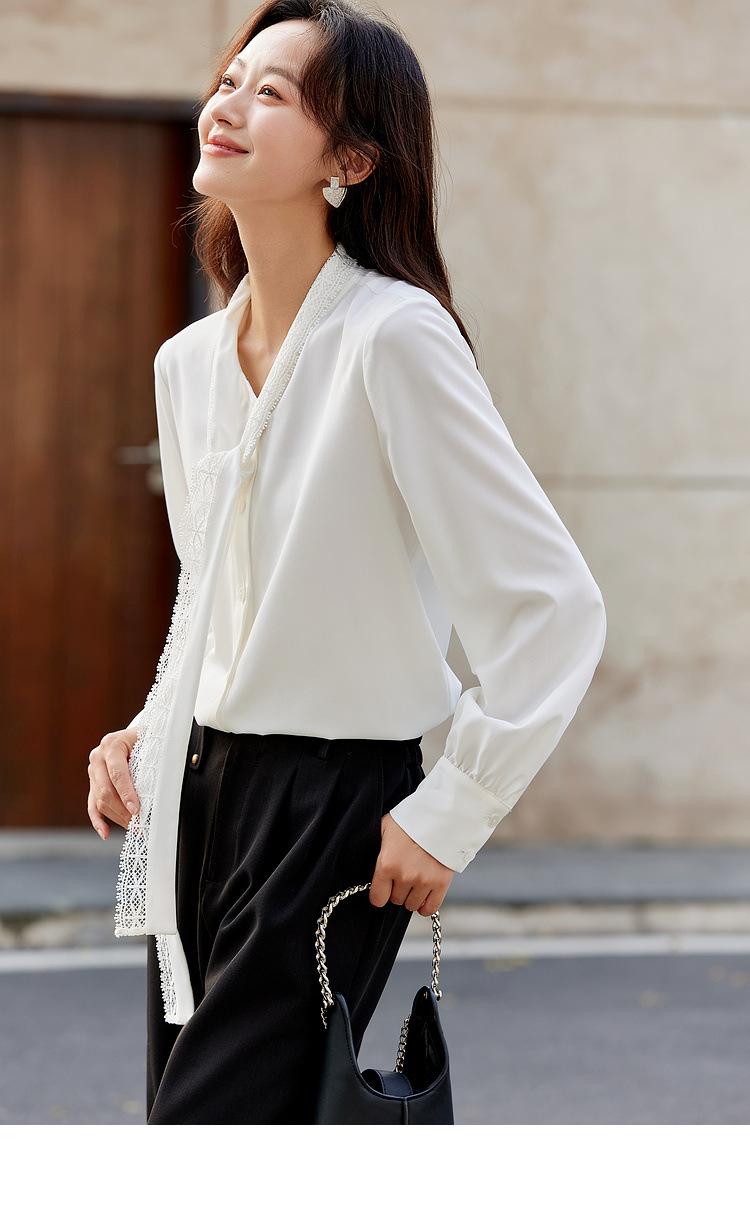 Zhen Xi - Camisa flotante de manga larga con encaje para mujer, estilo informal, recta, a la moda, SQ529