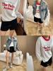 Sinan Principios de Otoño Nuevo Americano Estilo Perezoso Estilo Callejero Camiseta de Cuello Redondo con Letras Contrastantes Camiseta Básica Sn7027