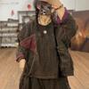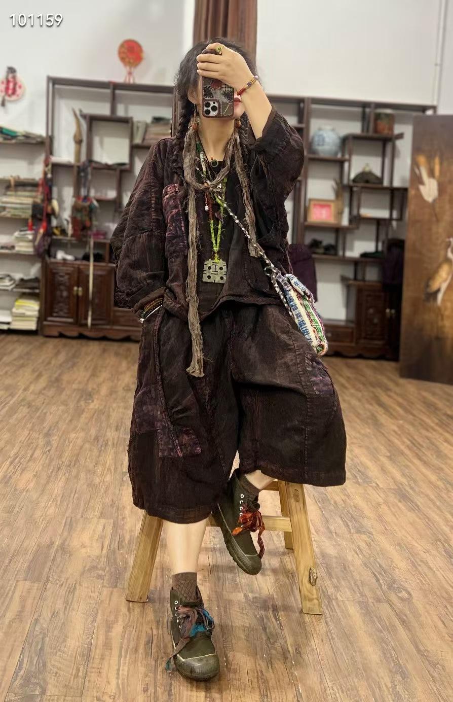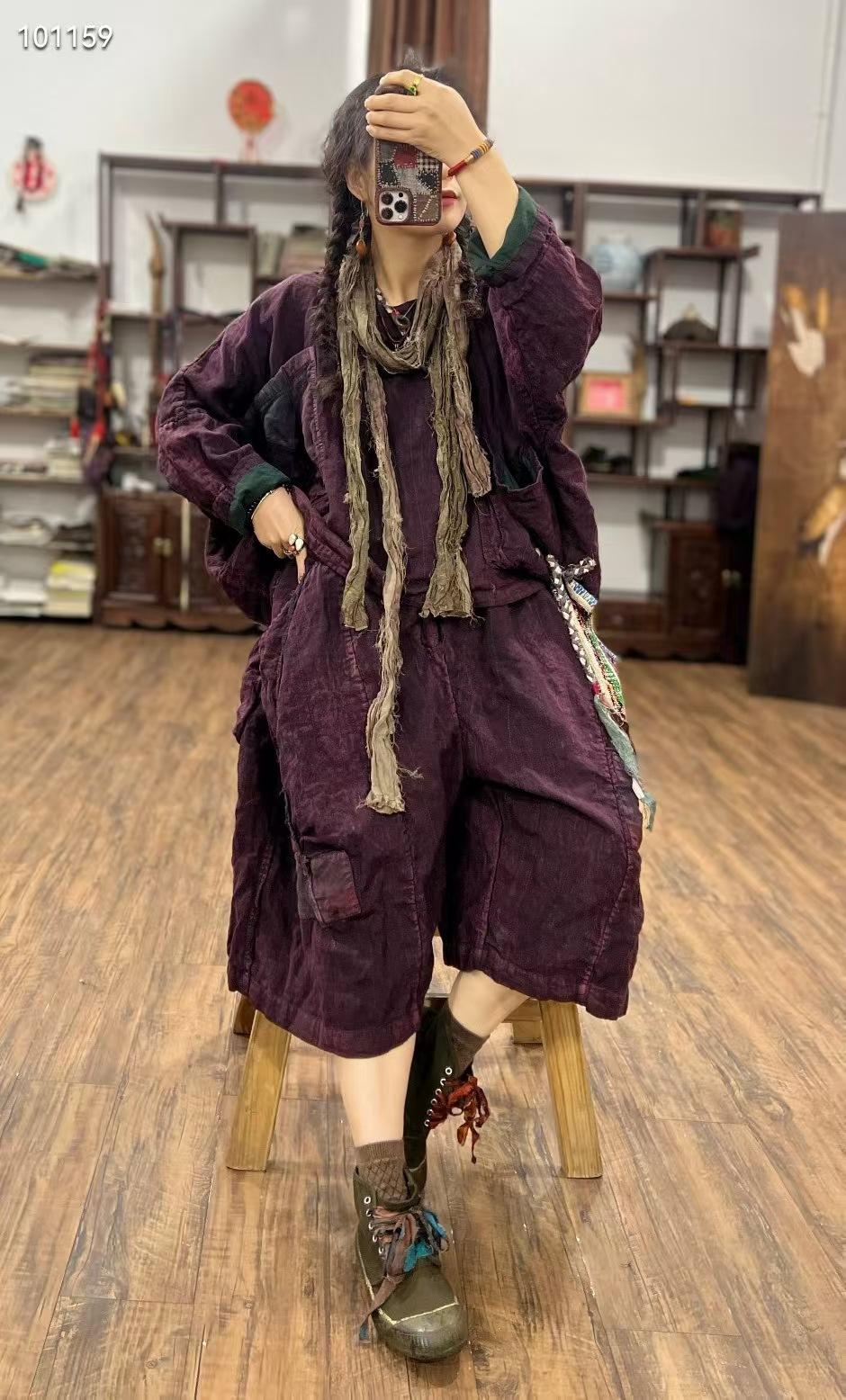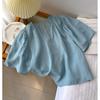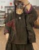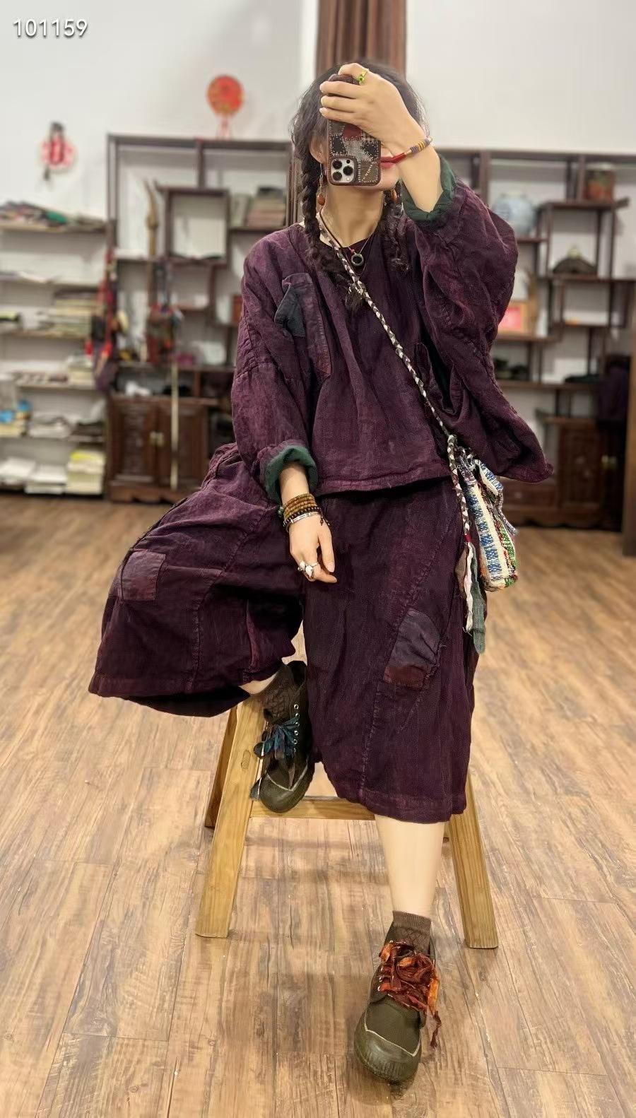 Jersey de cuello redondo de estilo retro de primavera 25, camisa pequeña de lino de doble capa con diseño artístico de nicho y parche.