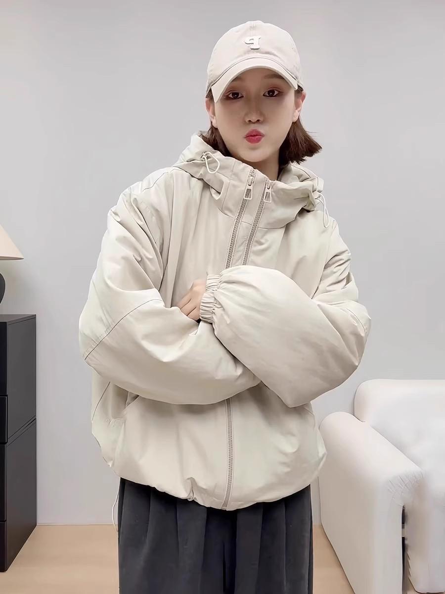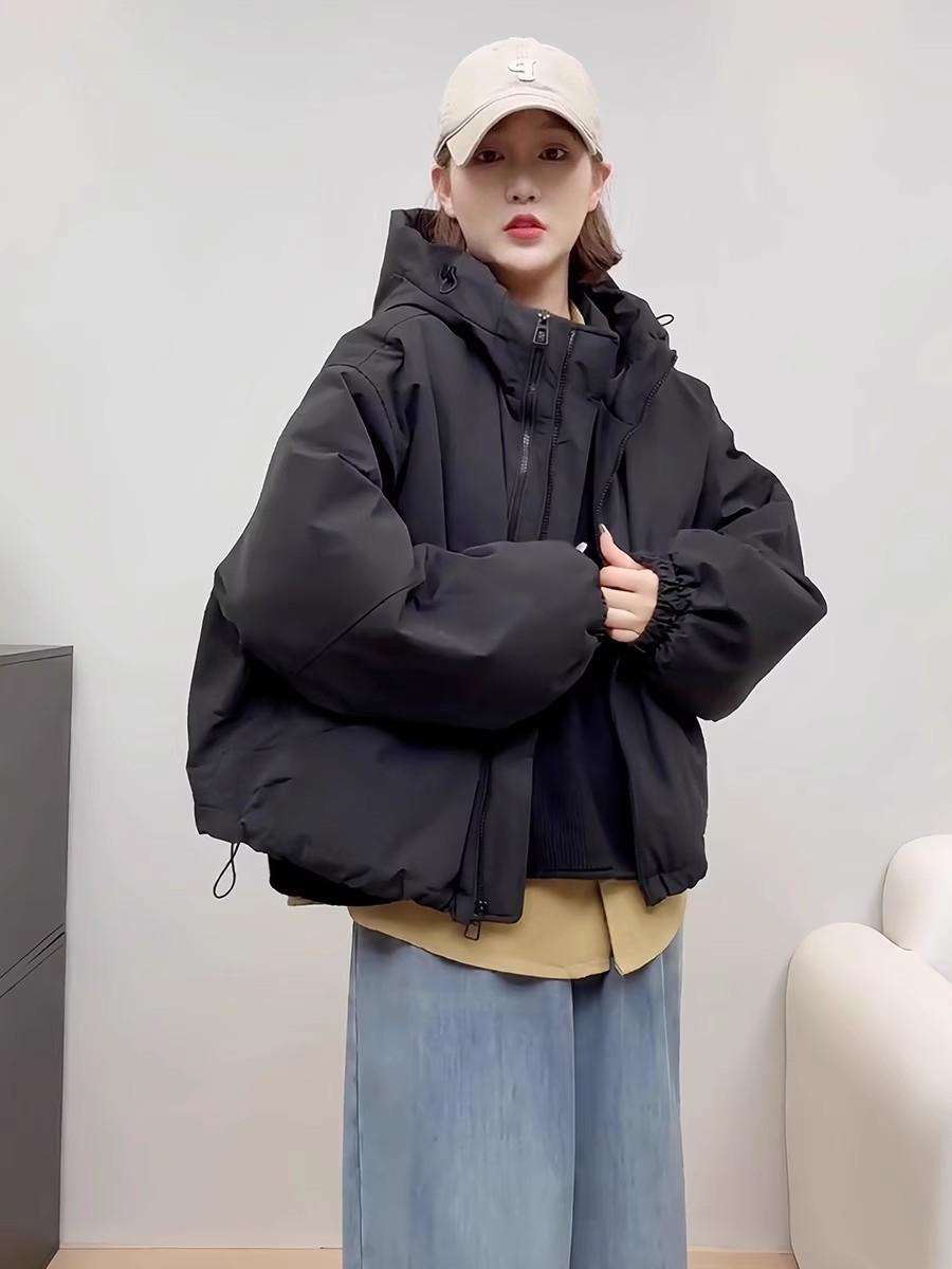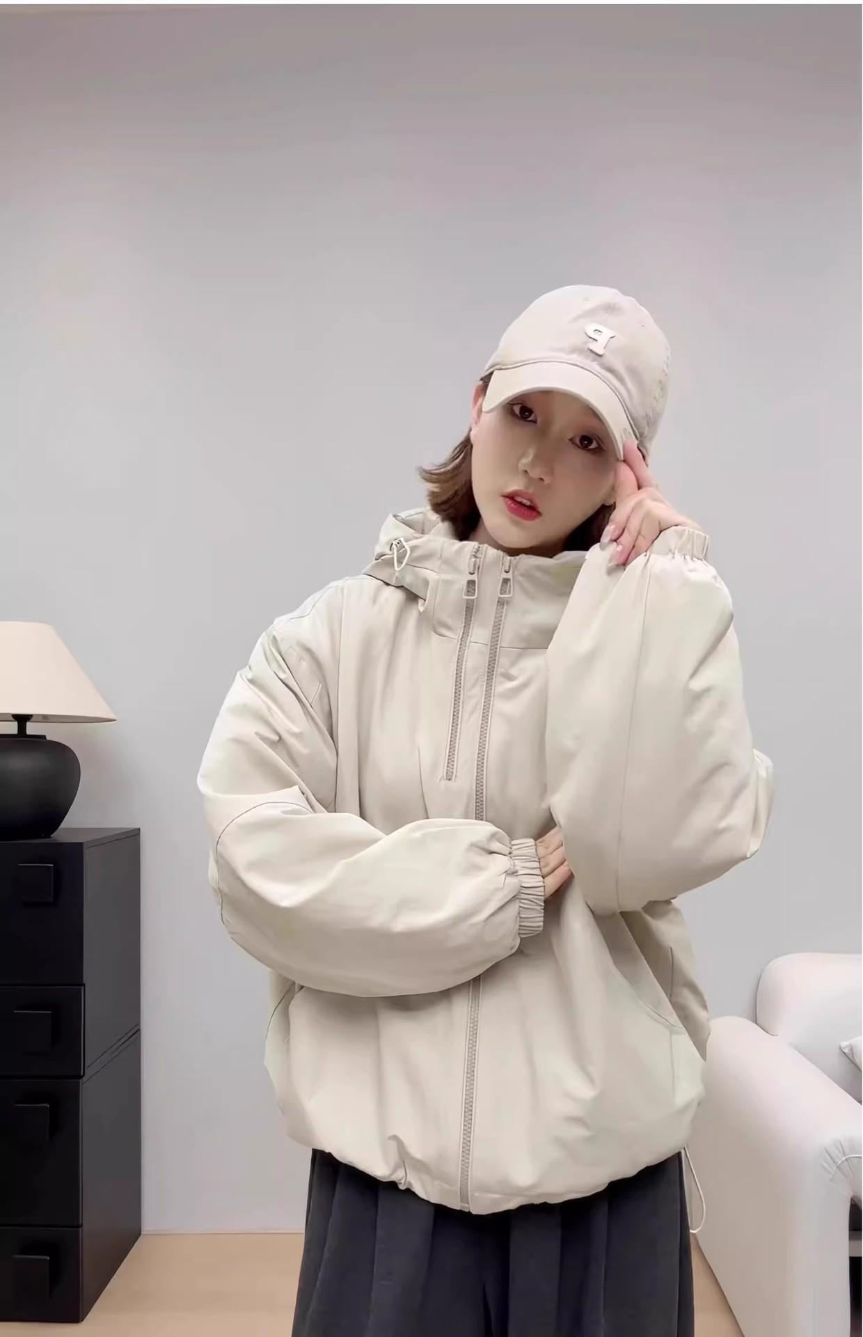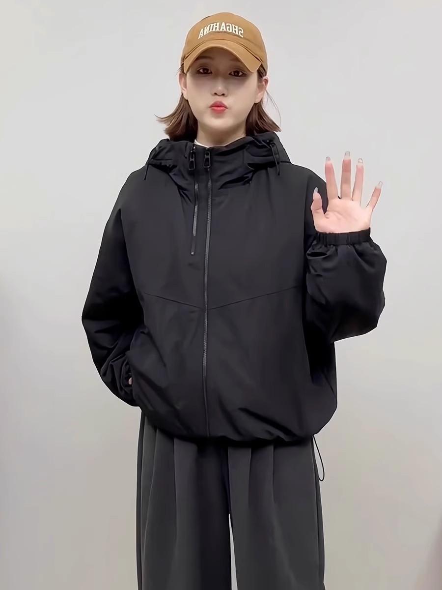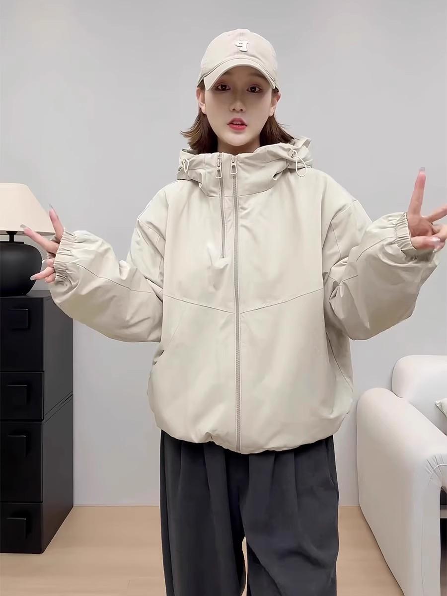 Chaqueta Corta con Capucha para Mujer Primavera y Otoño Nueva 2025 Coreana Holgada Pequeña Gruesa Top